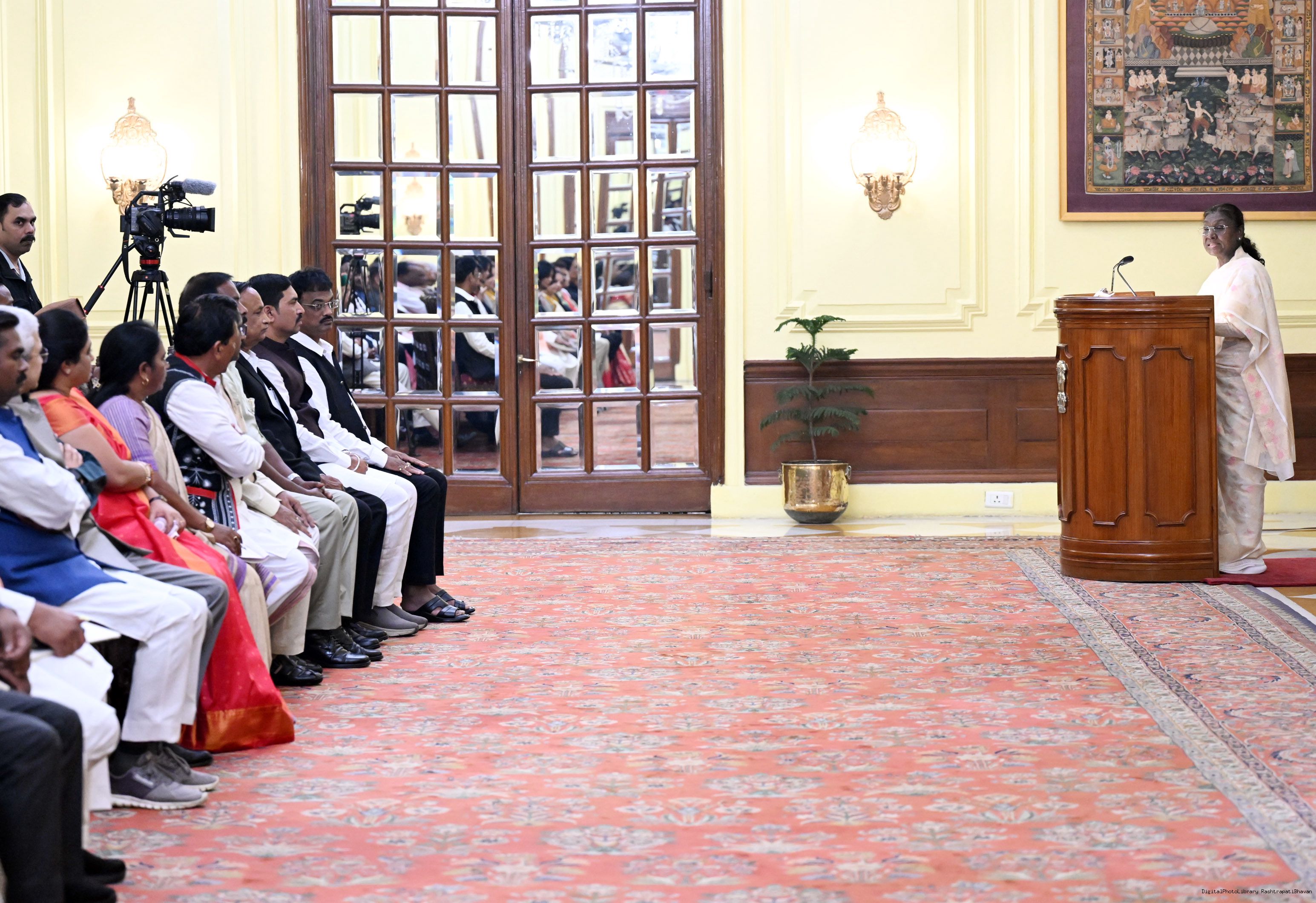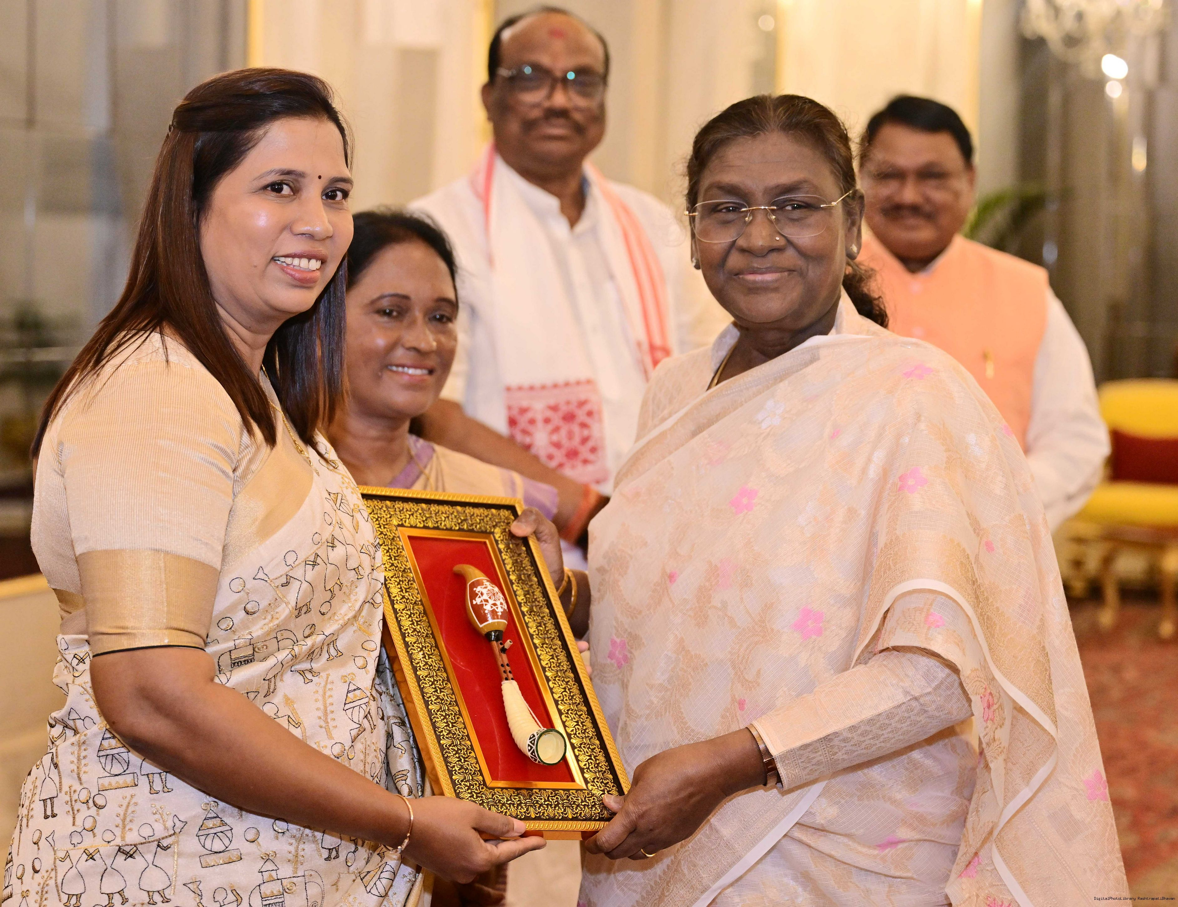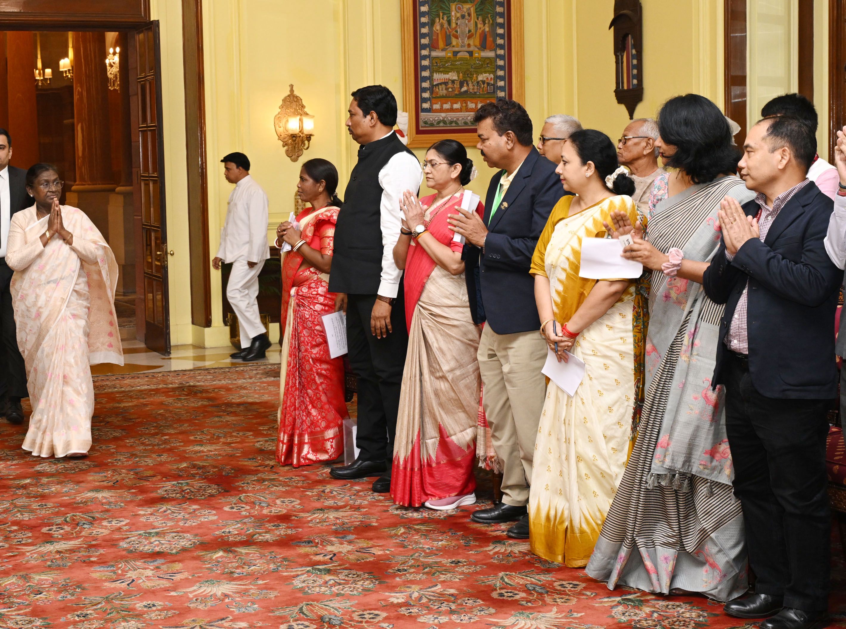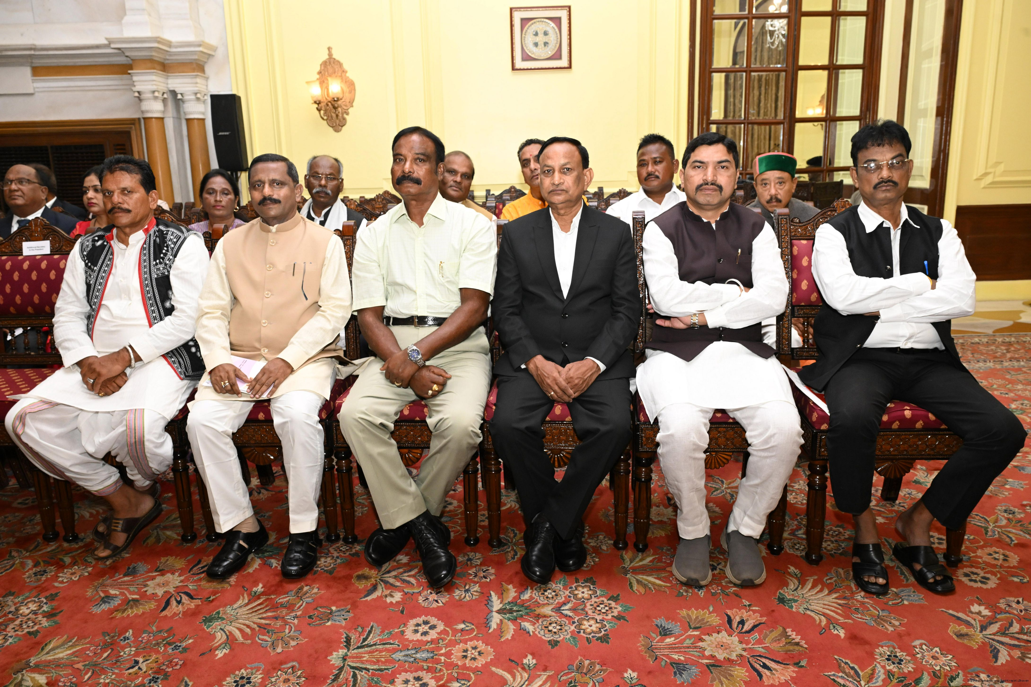 | Caption: | The President of India, Smt Droupadi Murmu met and posing a group photographs with Tribal Leaders Accompained by Ministers and Officials of Tribal Affairs followed by lunch at Rashtrapati Bhavan on July 21, 2025. |