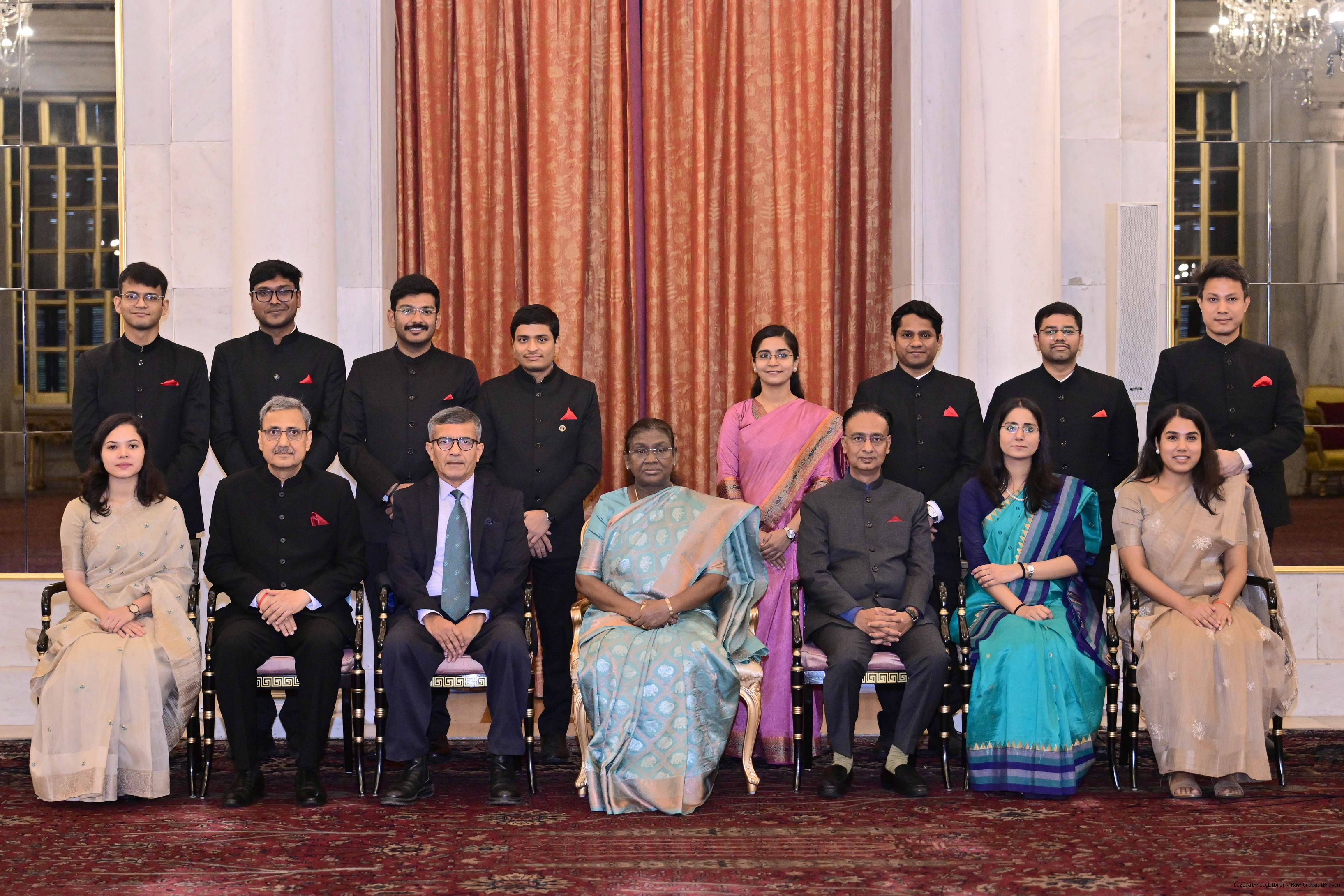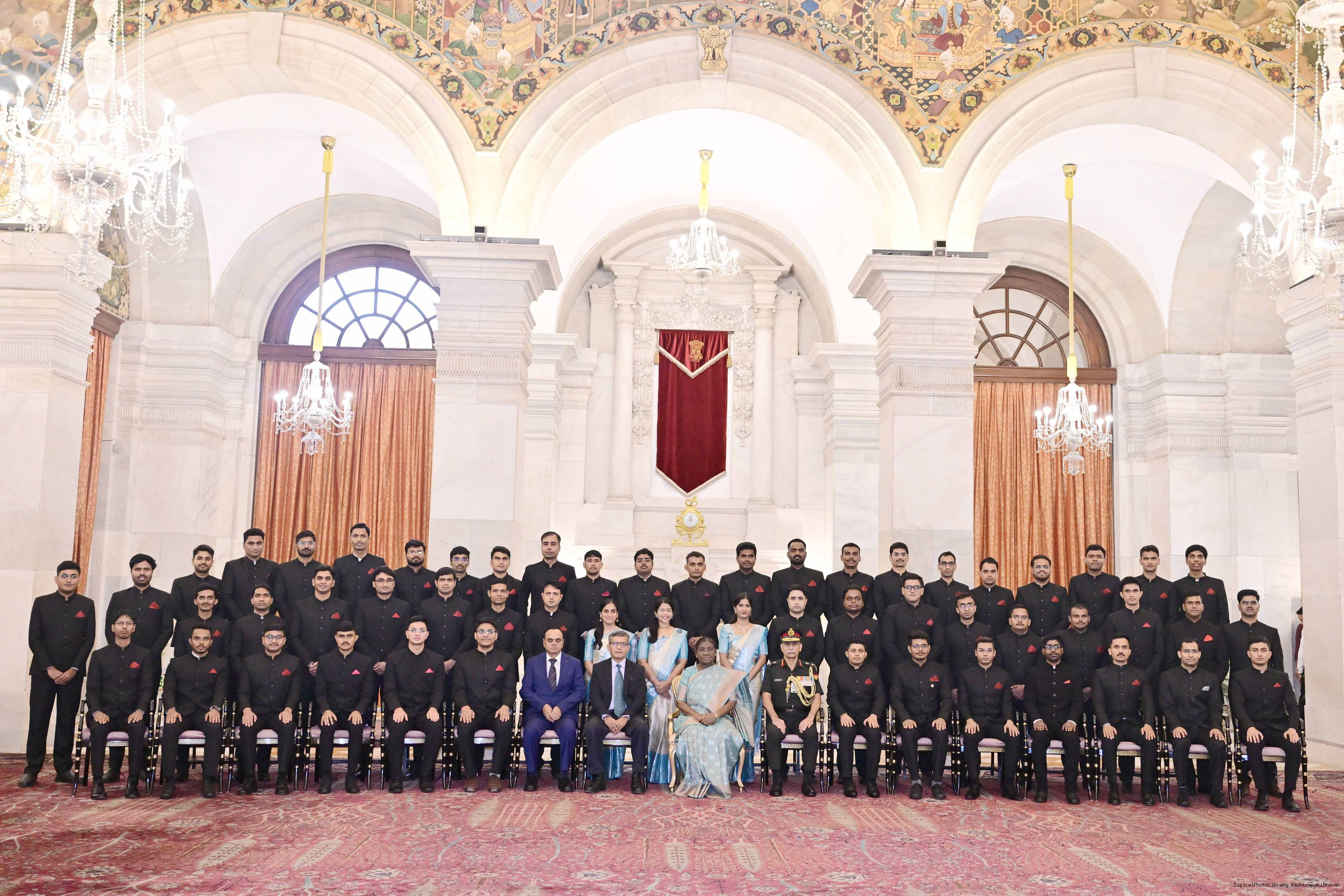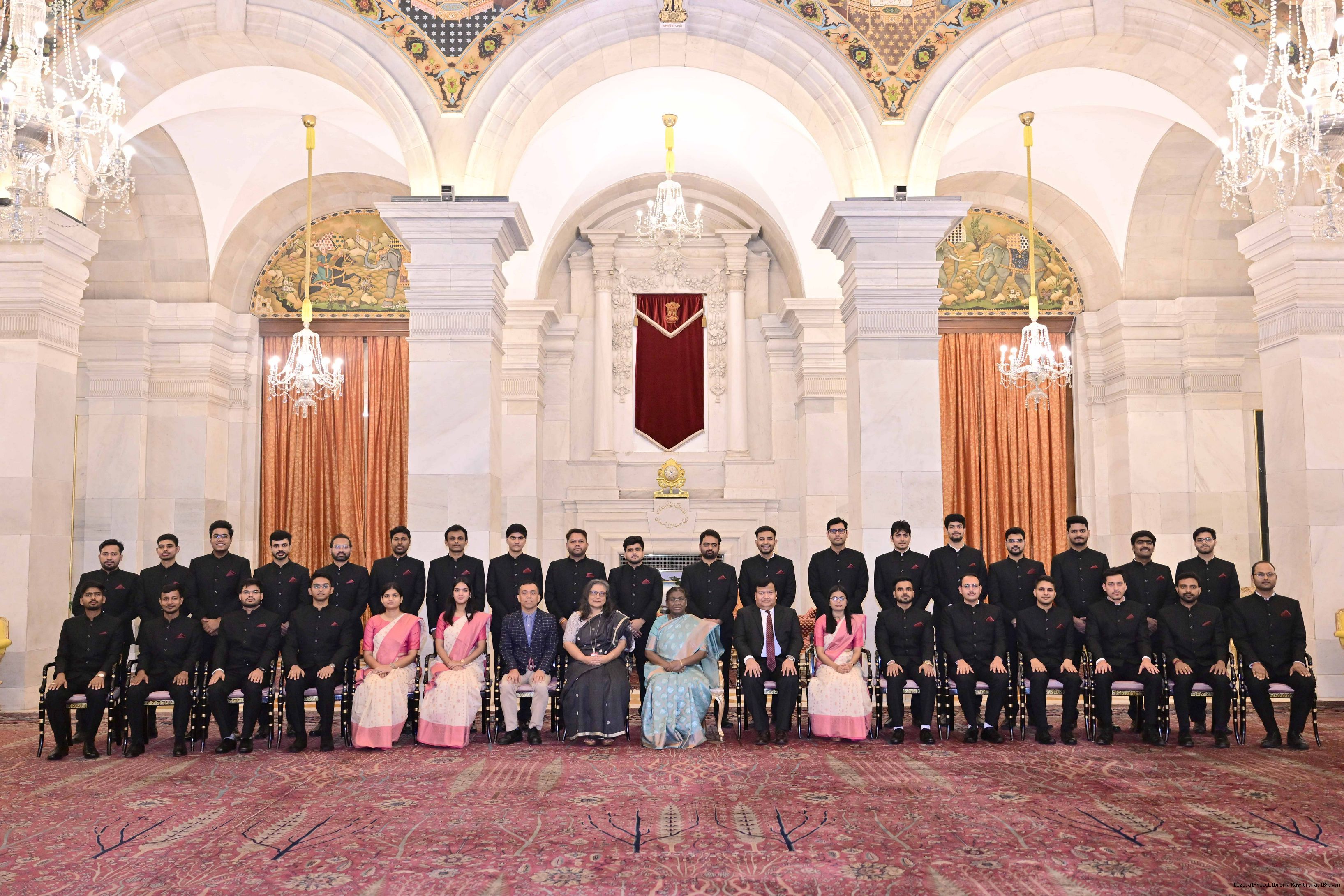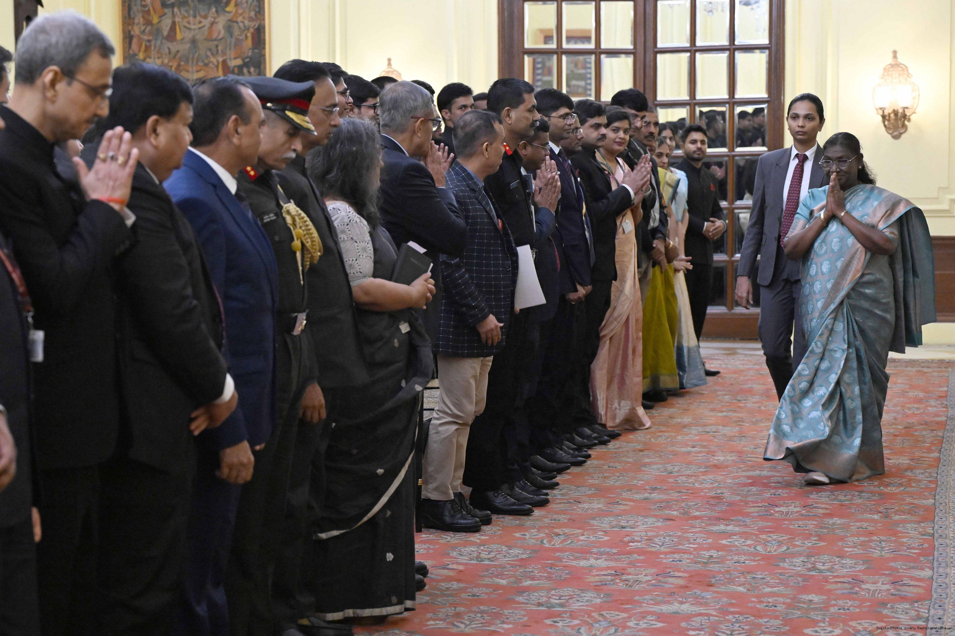 | Caption: | The probationers of the Indian Defence Estates Service, Military Engineer Services and Central Water Engineering Service called on the President of India, Smt Droupadi Murmu at Rashtrapati Bhavan on July 23, 2025. |