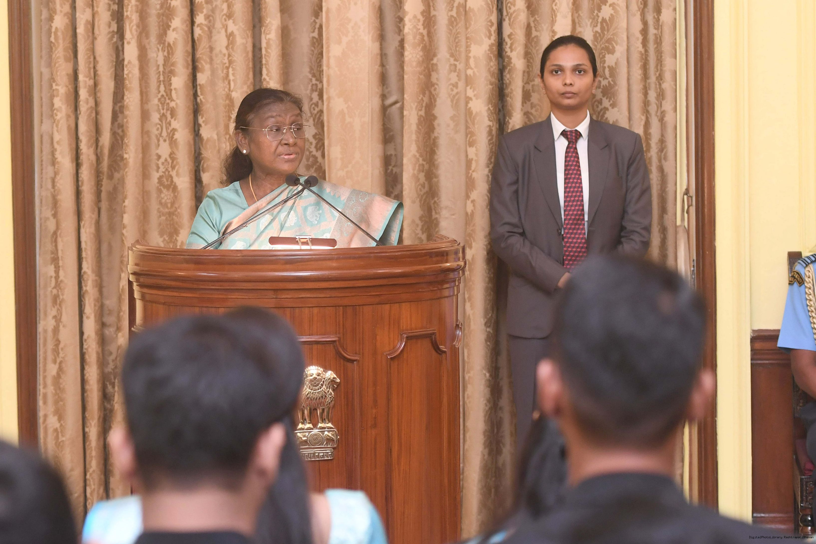 | Category: | The President met and interacted Indian Defence Estates Service, Military Engineer Services and Central Water Engineering Service on July 23, 2025. |