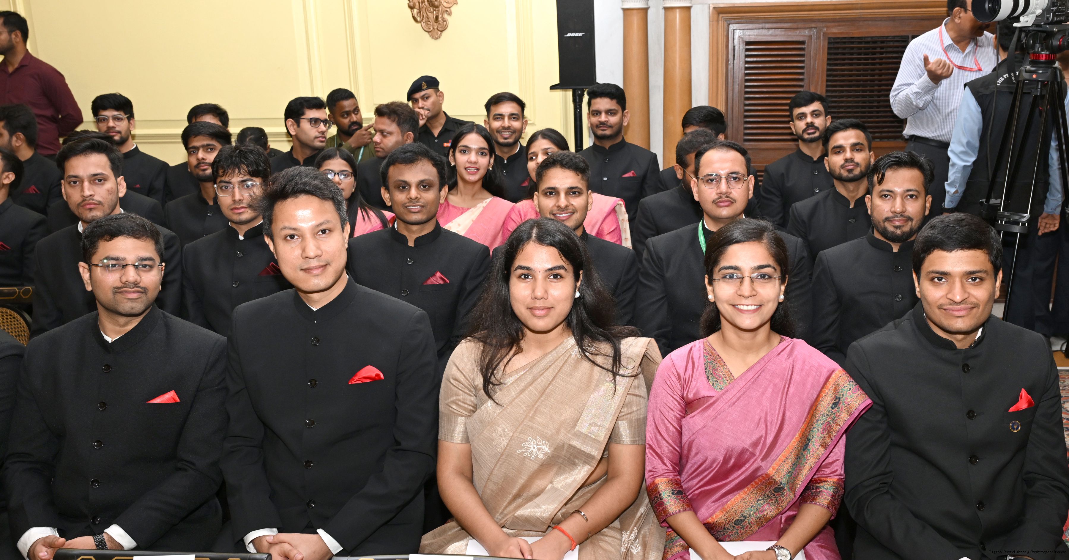 | Caption: | The probationers of the Indian Defence Estates Service, Military Engineer Services and Central Water Engineering Service called on the President of India, Smt Droupadi Murmu at Rashtrapati Bhavan on July 23, 2025. |