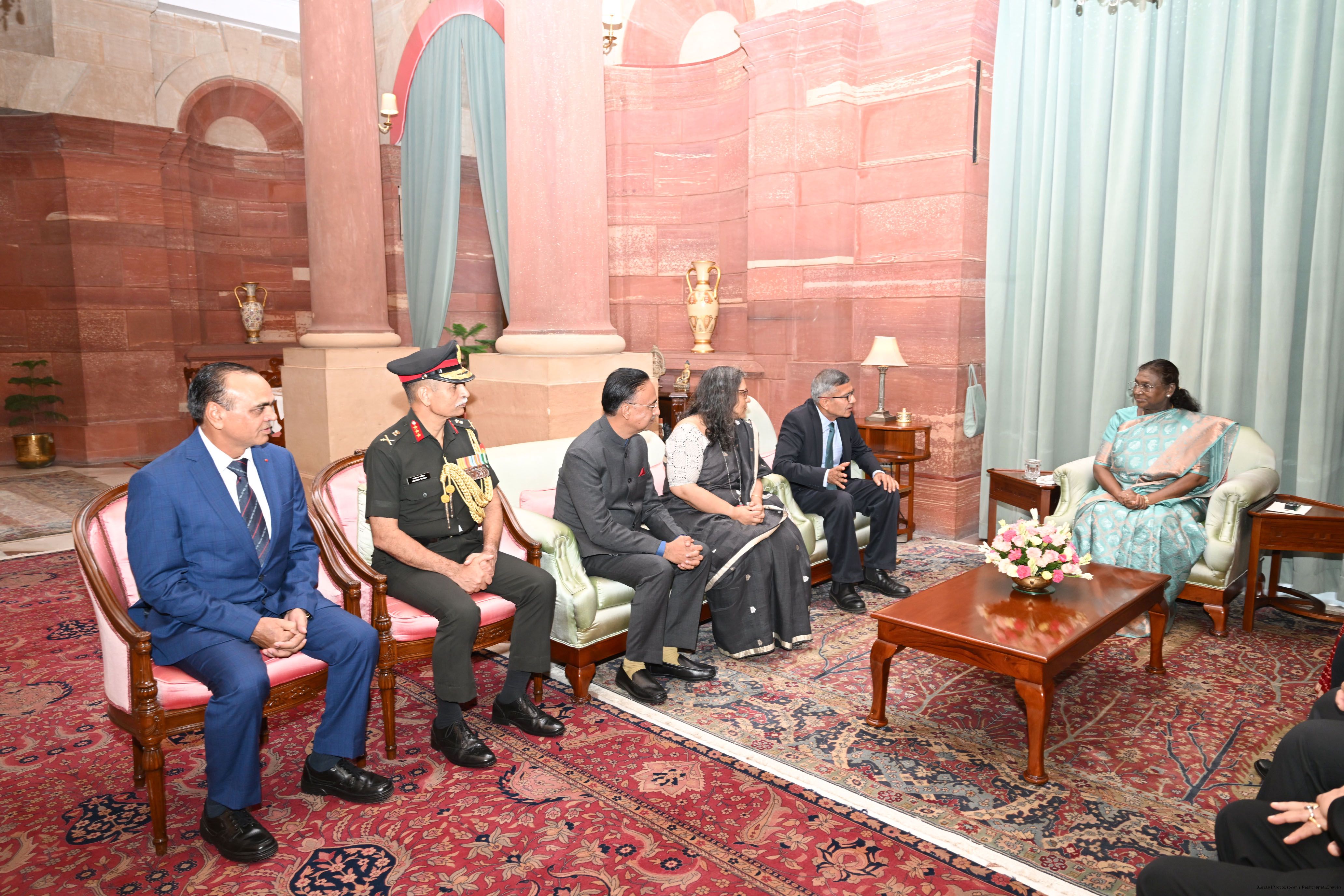 | Category: | The President met and interacted Indian Defence Estates Service, Military Engineer Services and Central Water Engineering Service on July 23, 2025. |