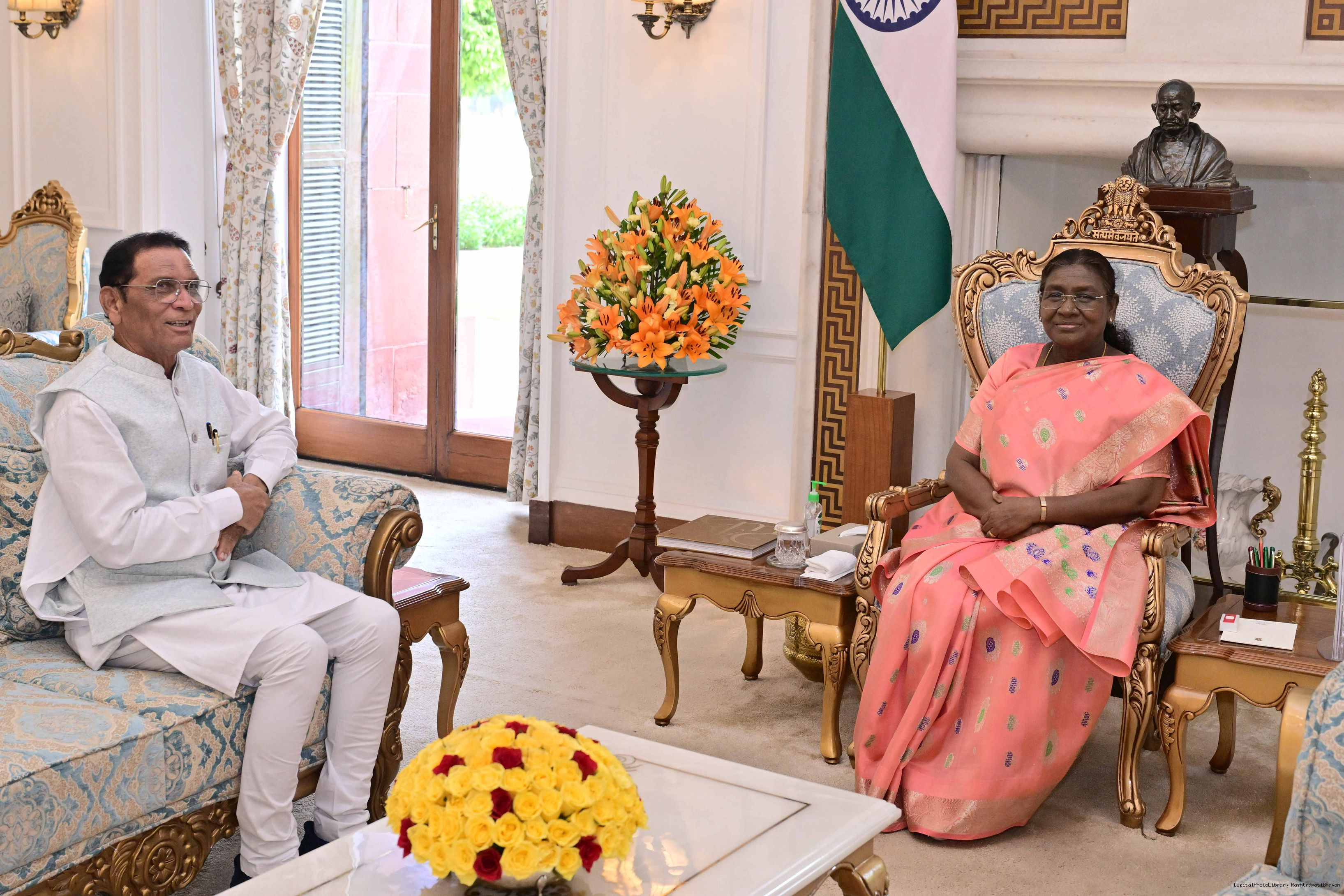 | Caption: | Shri Naba Charan Majhi, MP (Lok Sabha) from Mayurbhanj Odisha meeting with the President of India, Smt Droupadi Murmu at Rashtrapati Bhavan on July 24, 2025. |