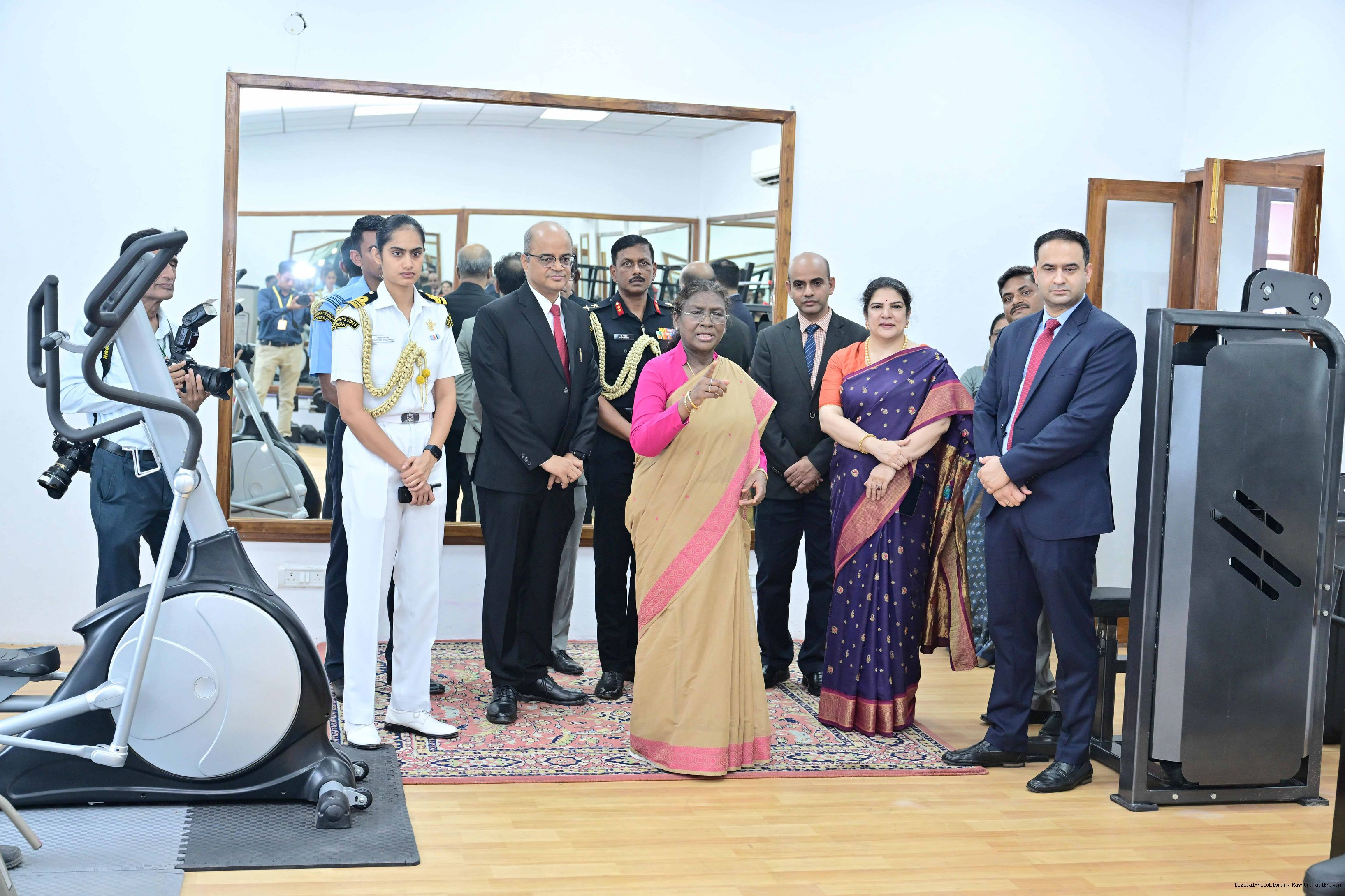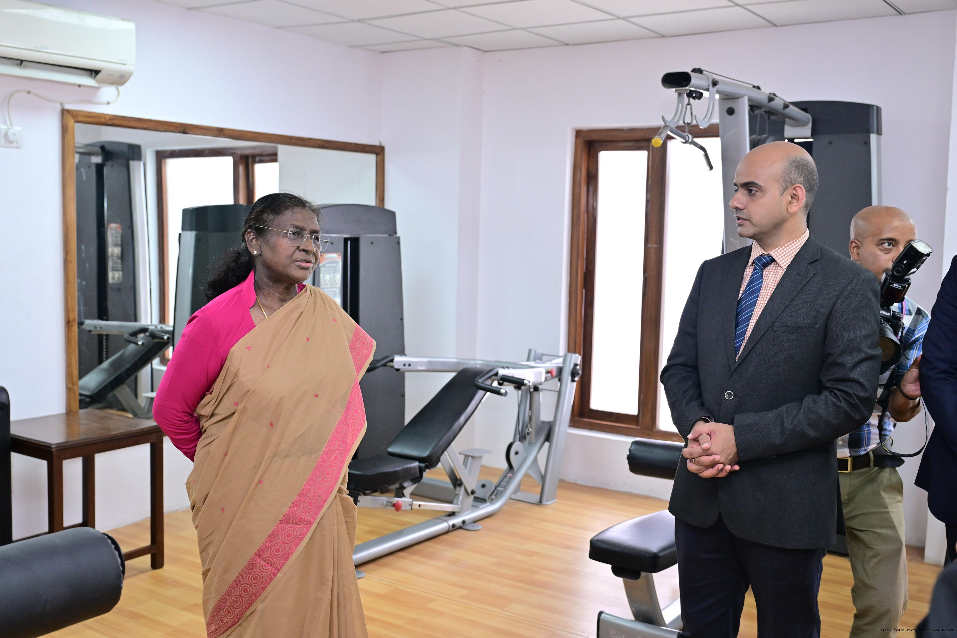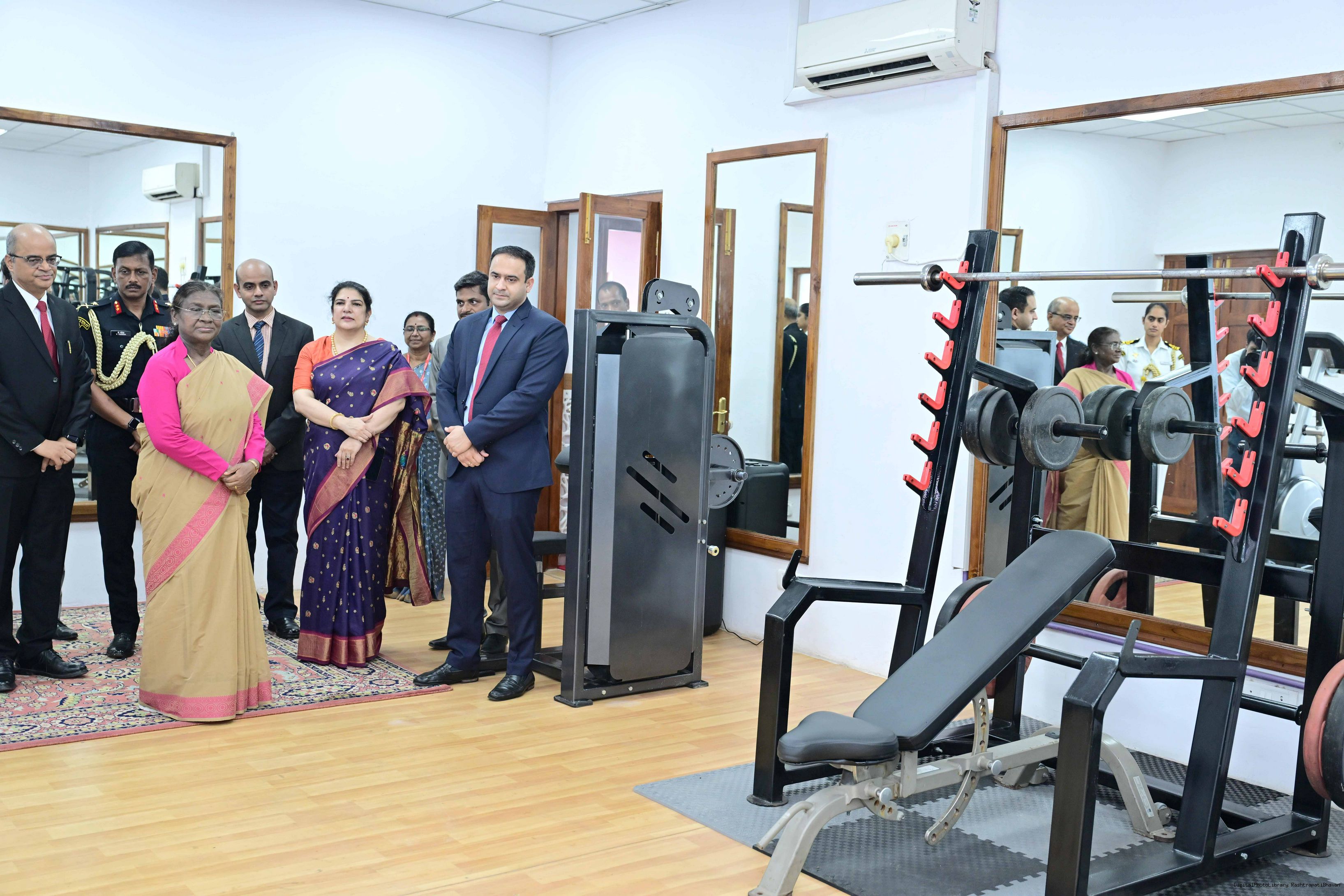 Caption: The President of India, Smt Droupadi Murmu inaugurated on completion of Three years of Presidency of Gym at Rashtrapati Bhavan on July 25, 2025.