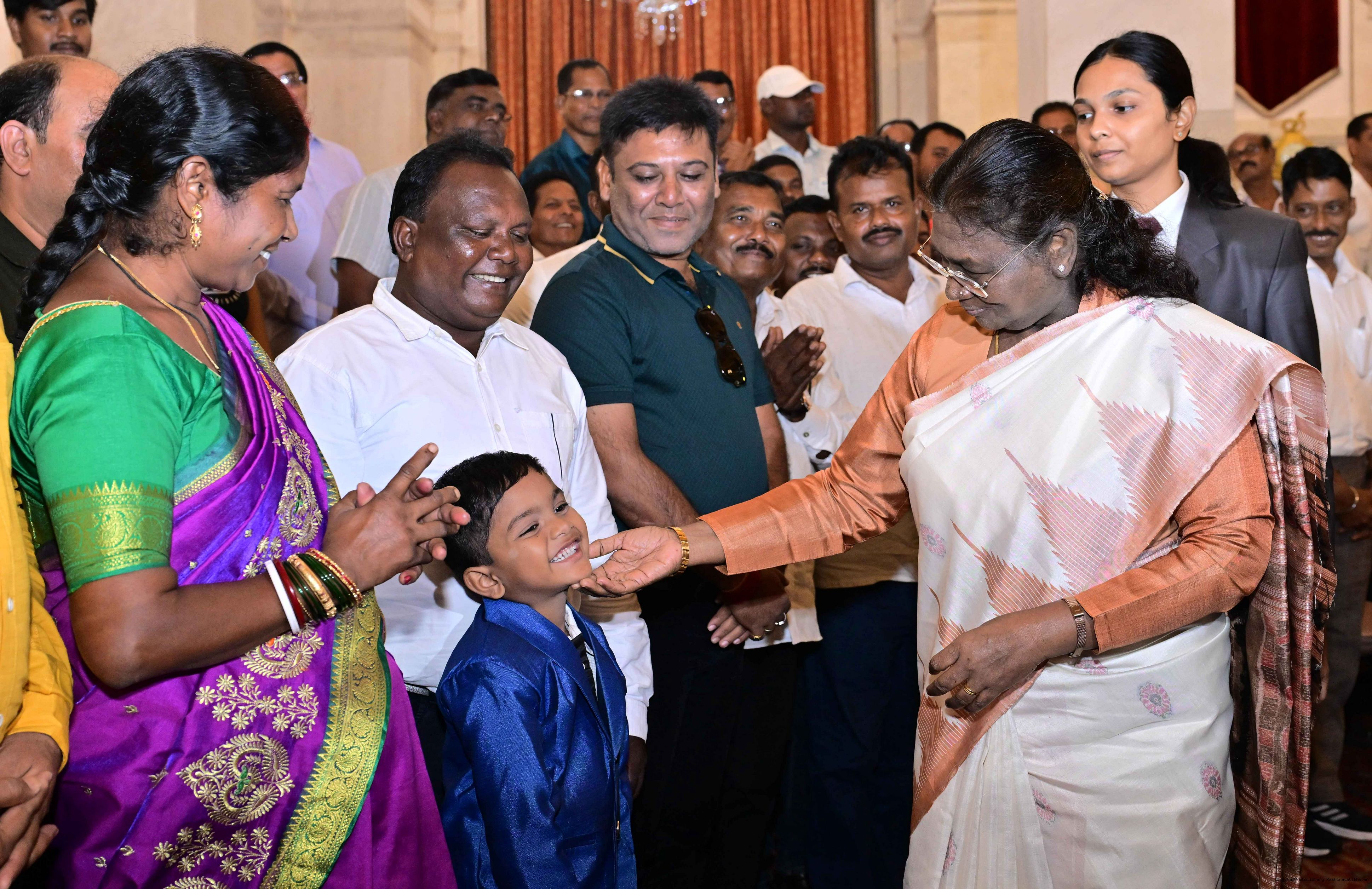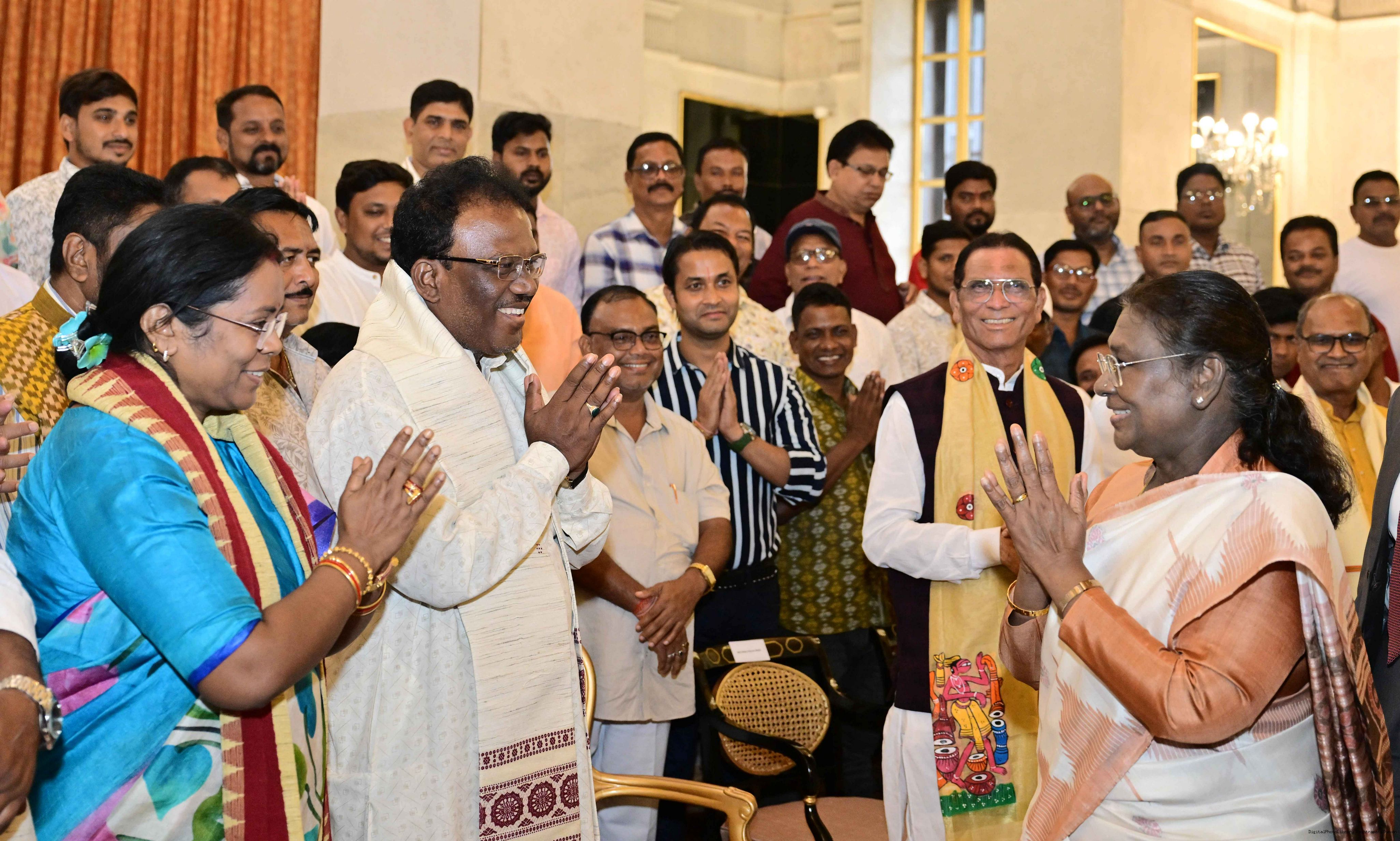 | Category: | The President met and interacted a group of persons from Mayurbhanj Odisha including Shri Naba Charan Majhi on July 29, 2025. |