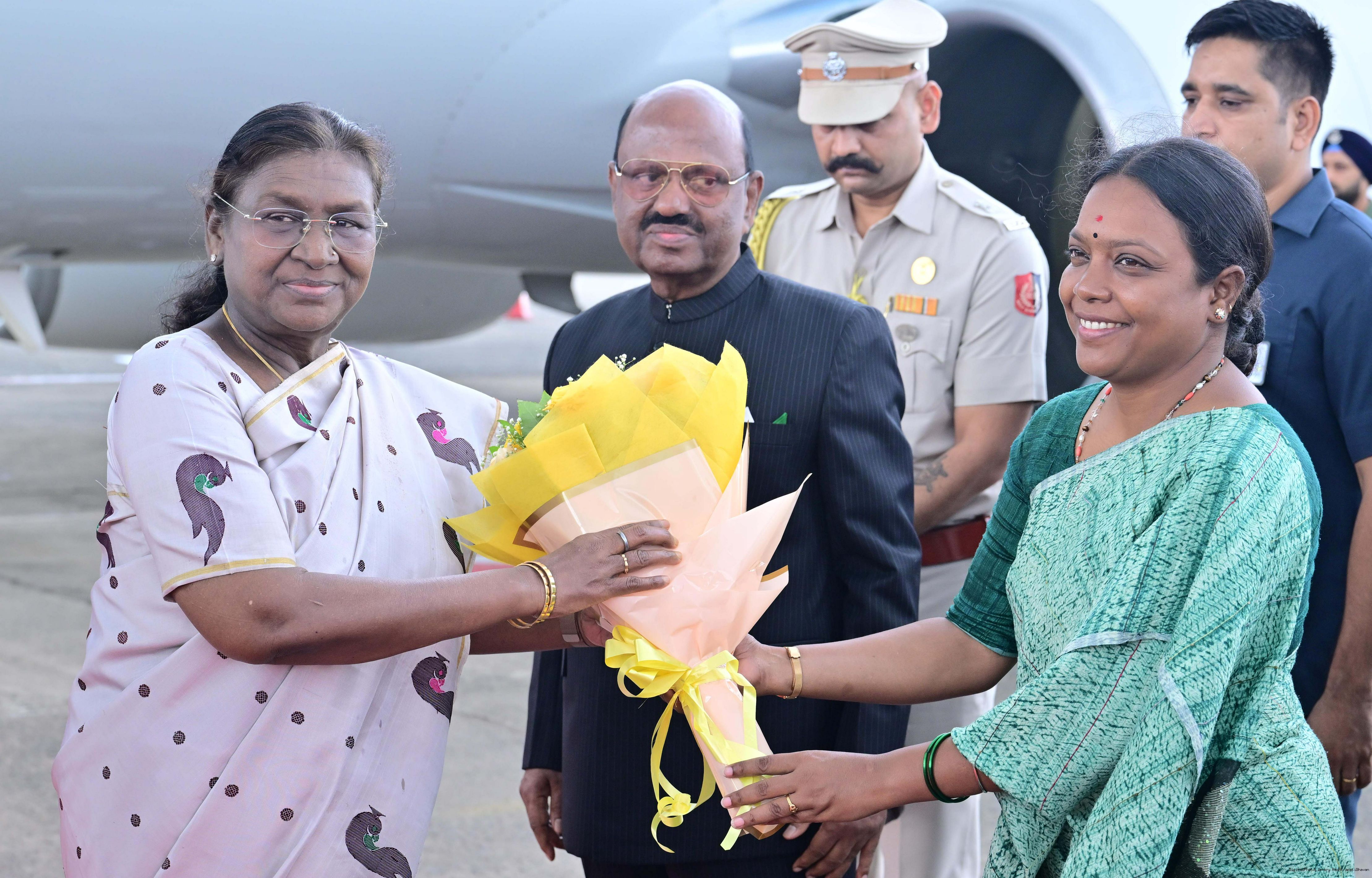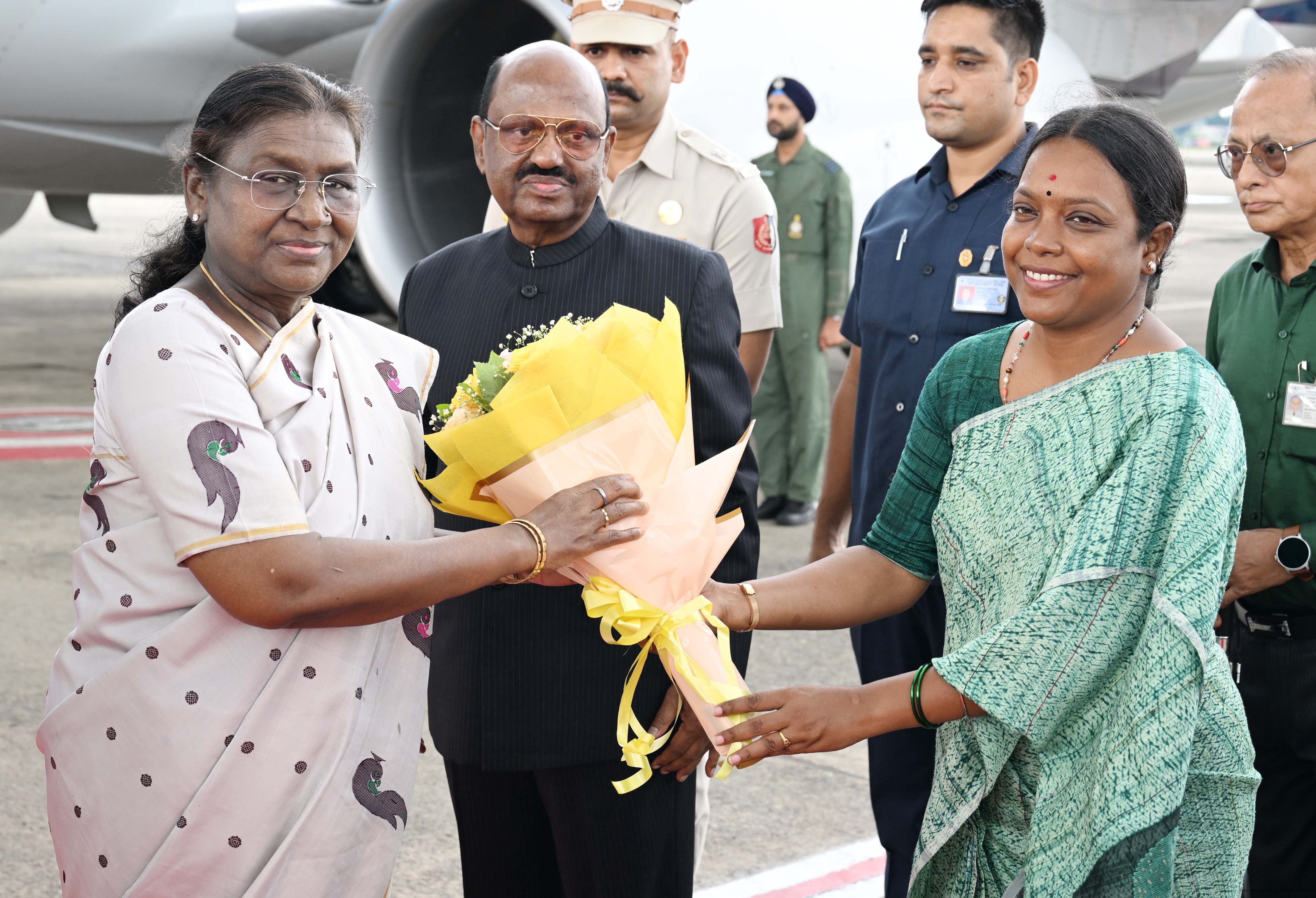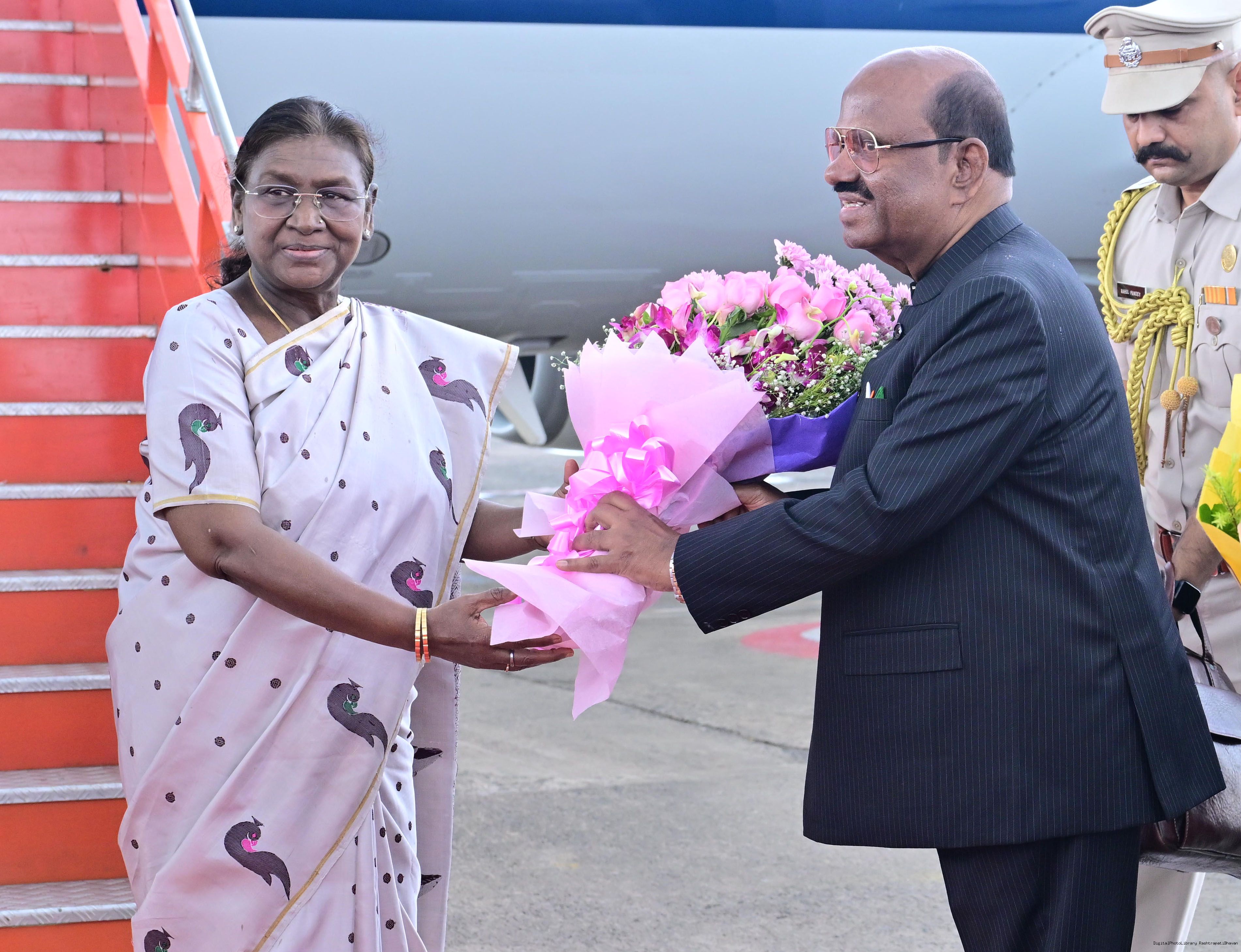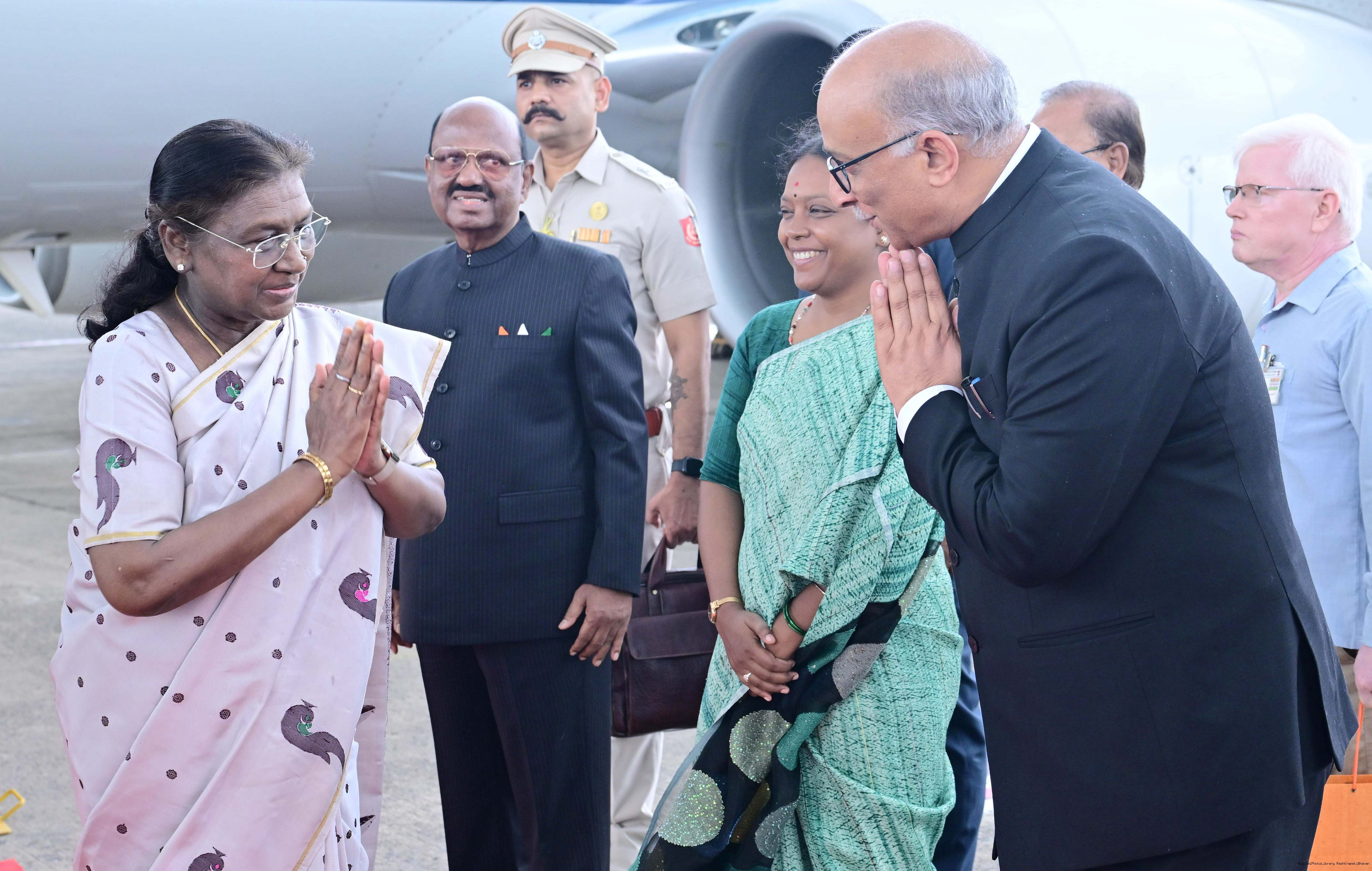 | Caption: | The Governor of West Bengal, Dr. C.V. Ananda Bose received the President of India, Smt. Droupadi Murmu on her arrival at Kolkata Airport on July 30, 2025. |