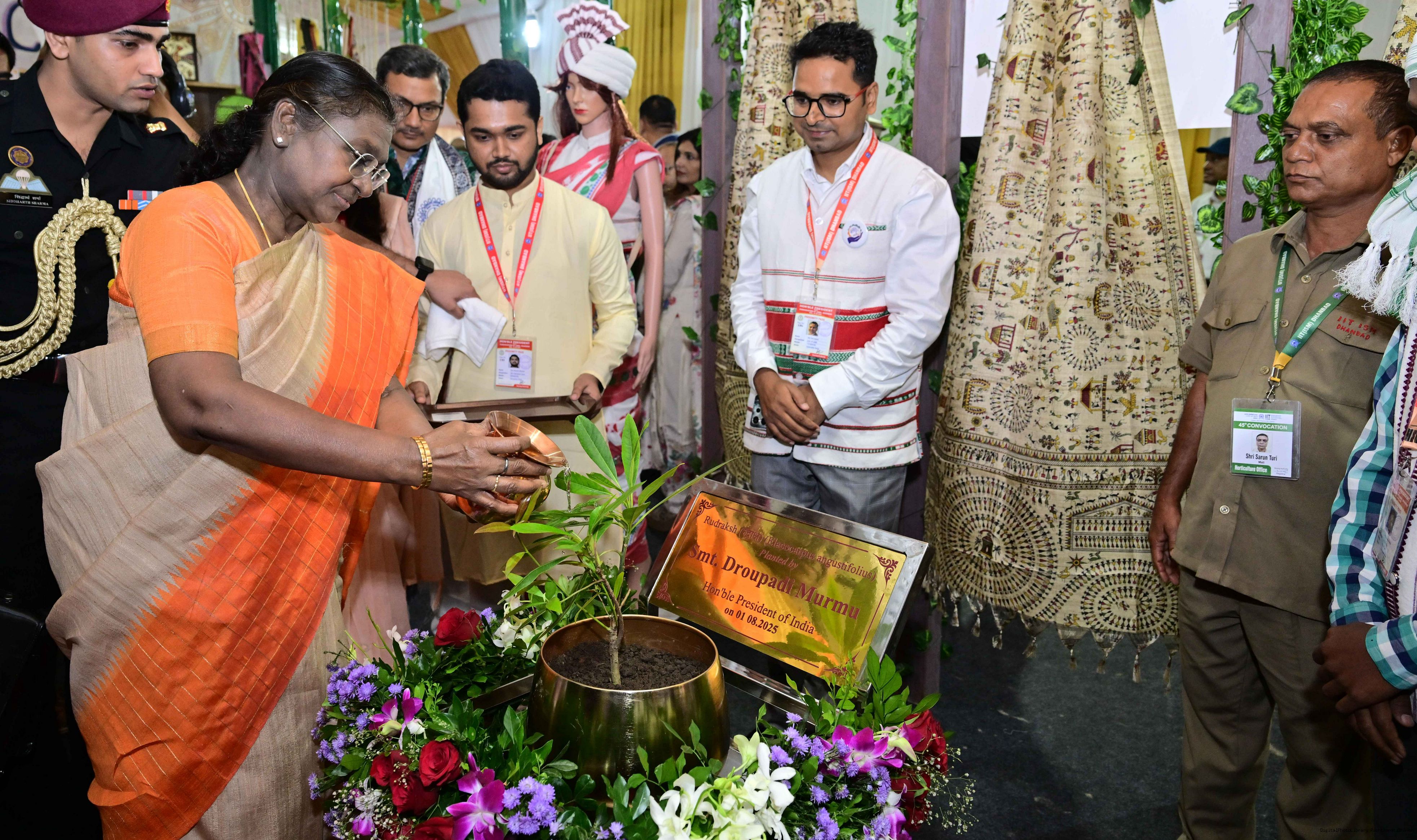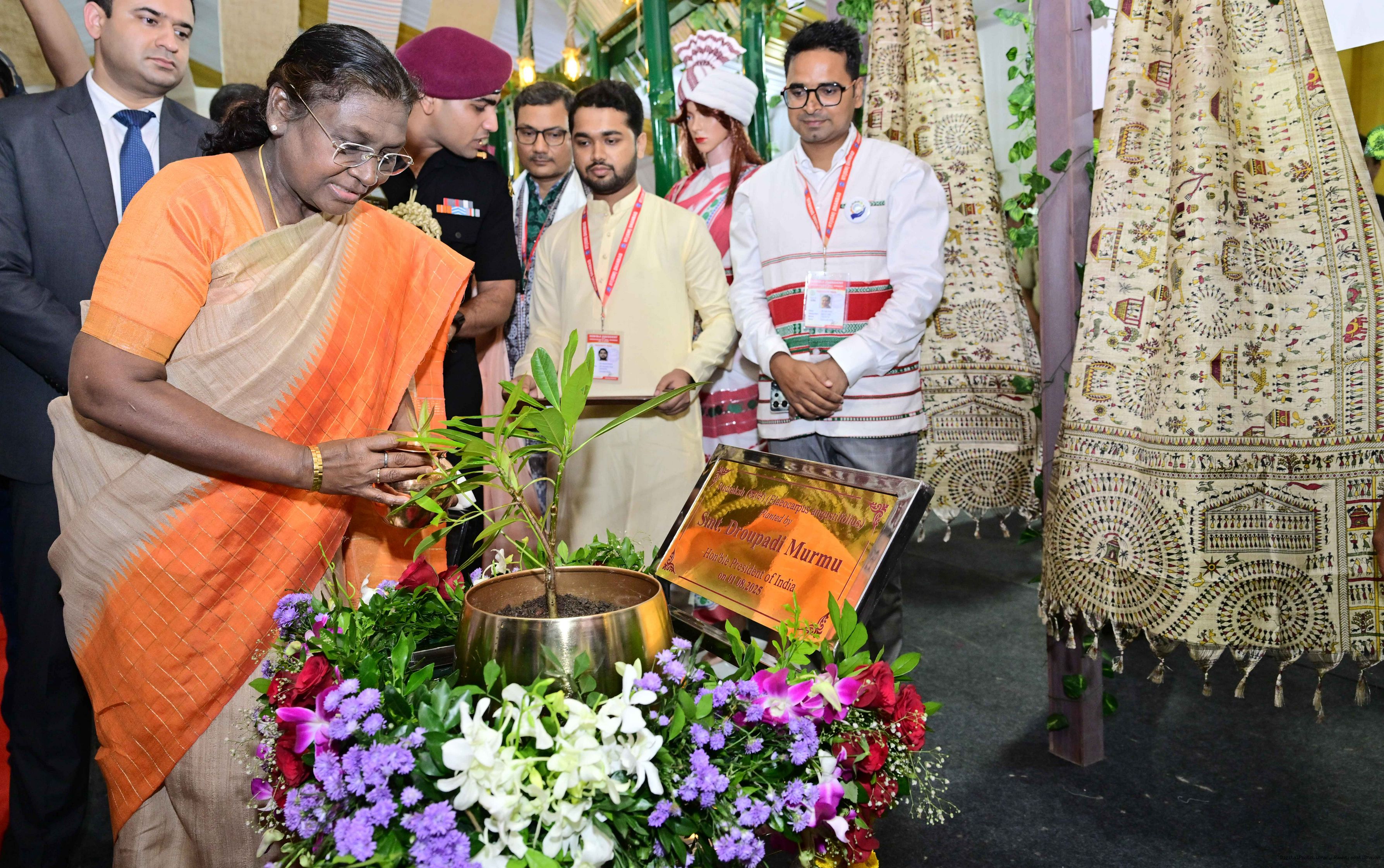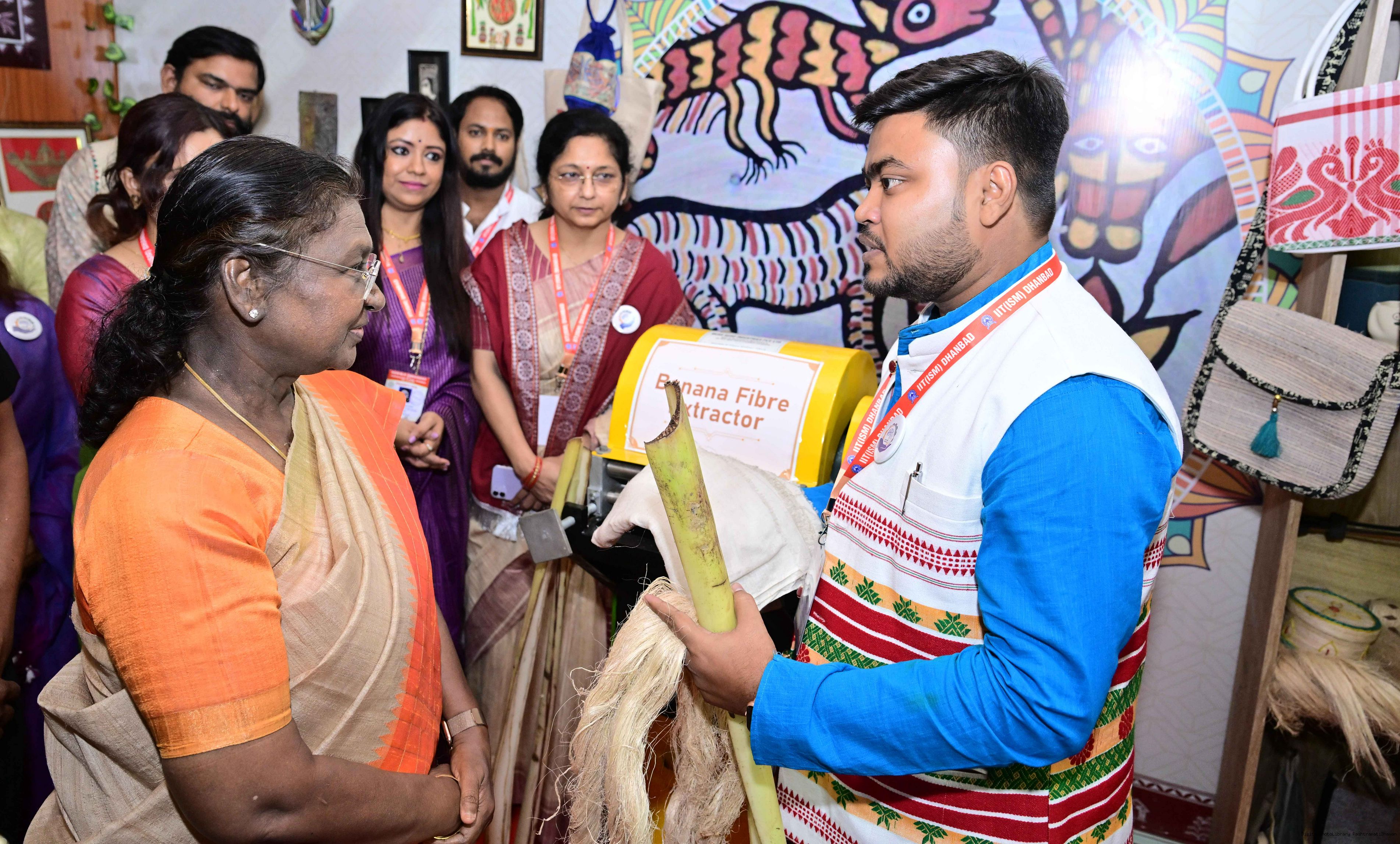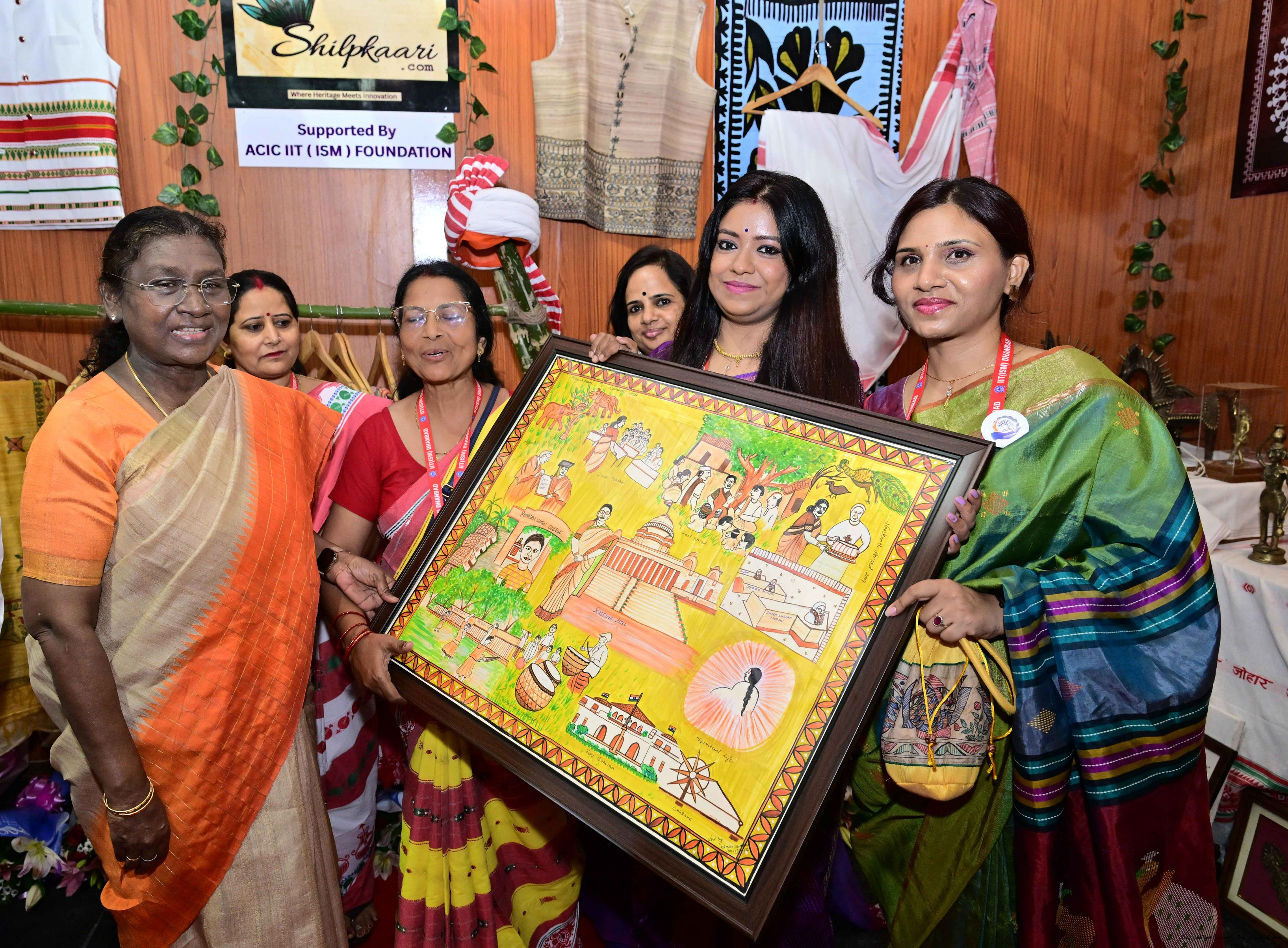 | Caption: | The President of India, Smt Droupadi Murmu visited Exhibition on Community Innovation by the tribul Women Working Under Atal Commmunity Innovation Centre IIT (ISM) at Dhanbad, Jharkhand on August 01, 2025. |
