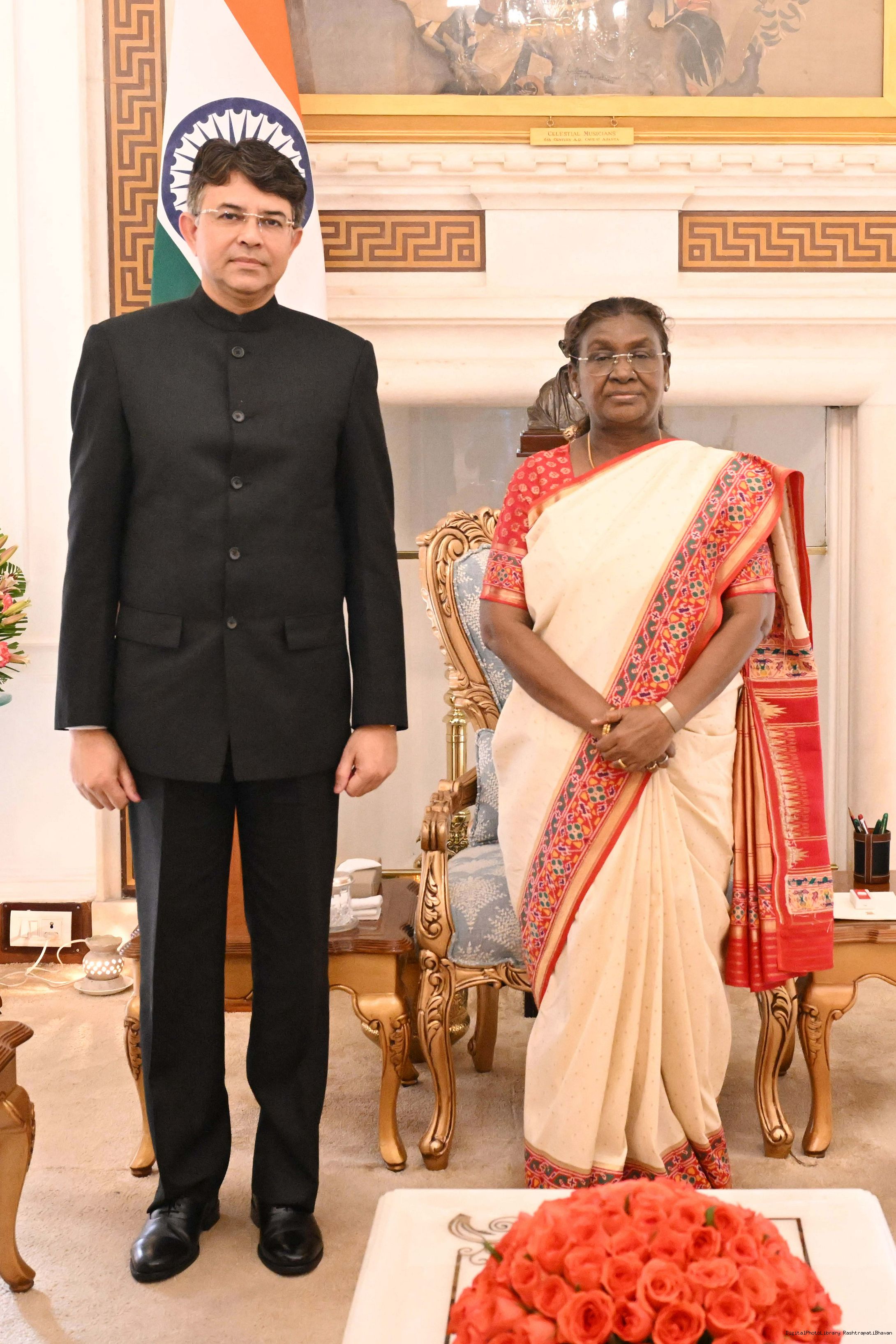| Caption: | The Ambassador-designate of India to Denmark, Shri Manish Prabhat meeting with the President of India, Smt. Droupadi Murmu at Rashtrapati Bhavan on August 4, 2025. |
