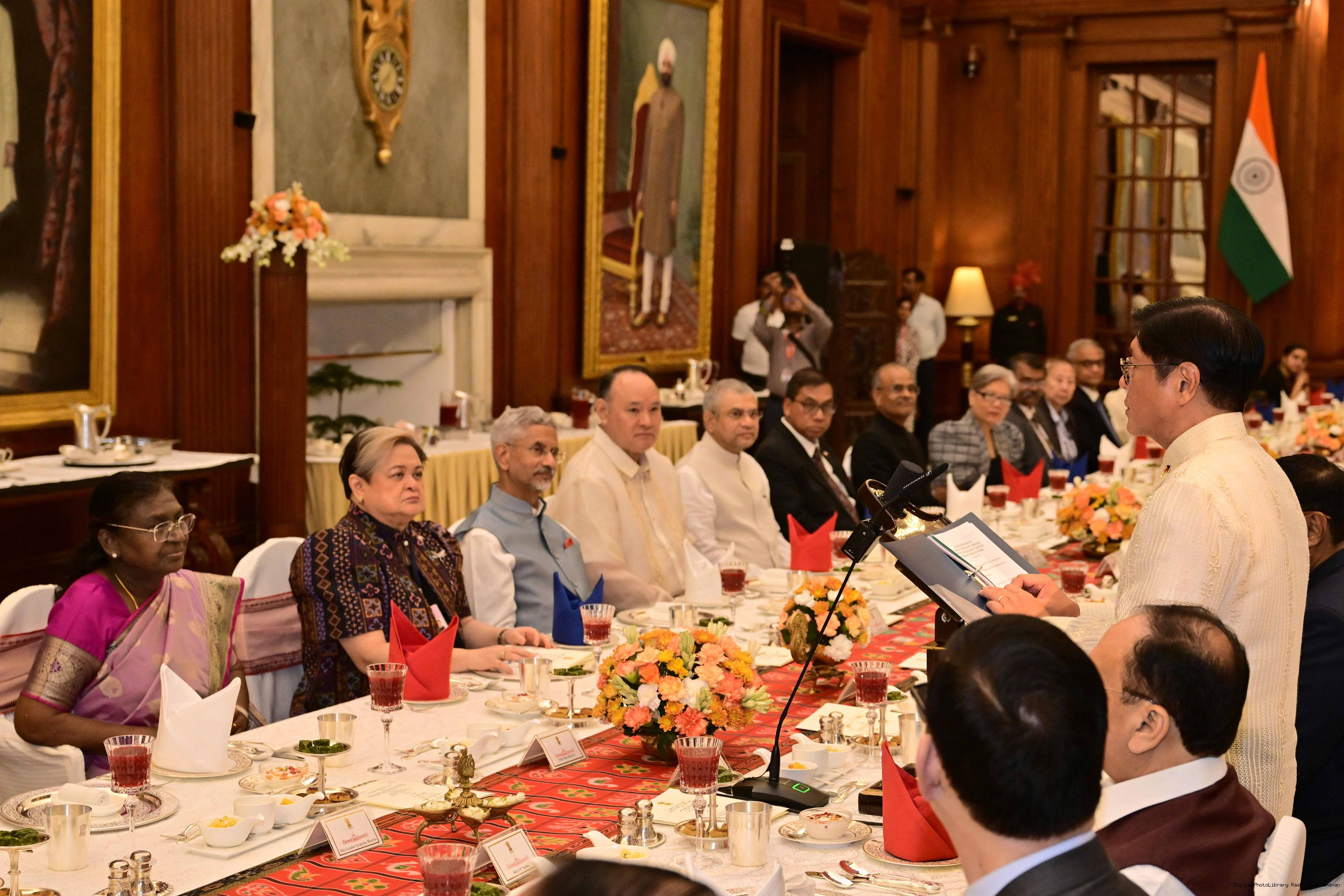 | Caption: | The President of India, Smt Droupadi Murmu hosted a banquet in the honour H.E. Mr Ferdinand Romualdez Marcos Jr., President of the Republic of the Philippines at Rashtrapati Bhavan on August 5, 2025. |