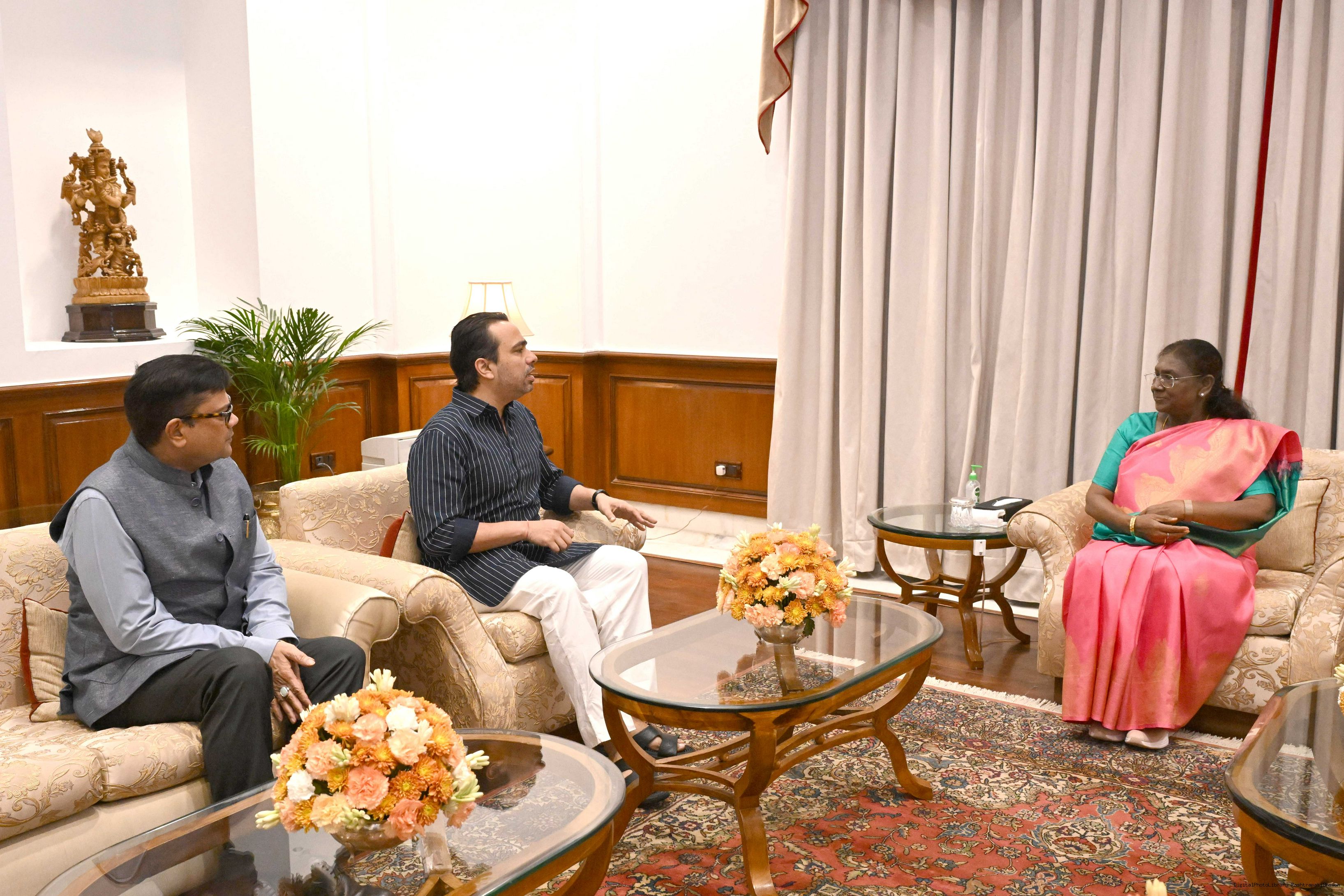 | Caption: | Shri Jayant Chaudhary, Mos for Education with others meeting with the President of India, Smt. Droupadi Murmu at Rashtrapati Bhavan on August 9, 2025. |