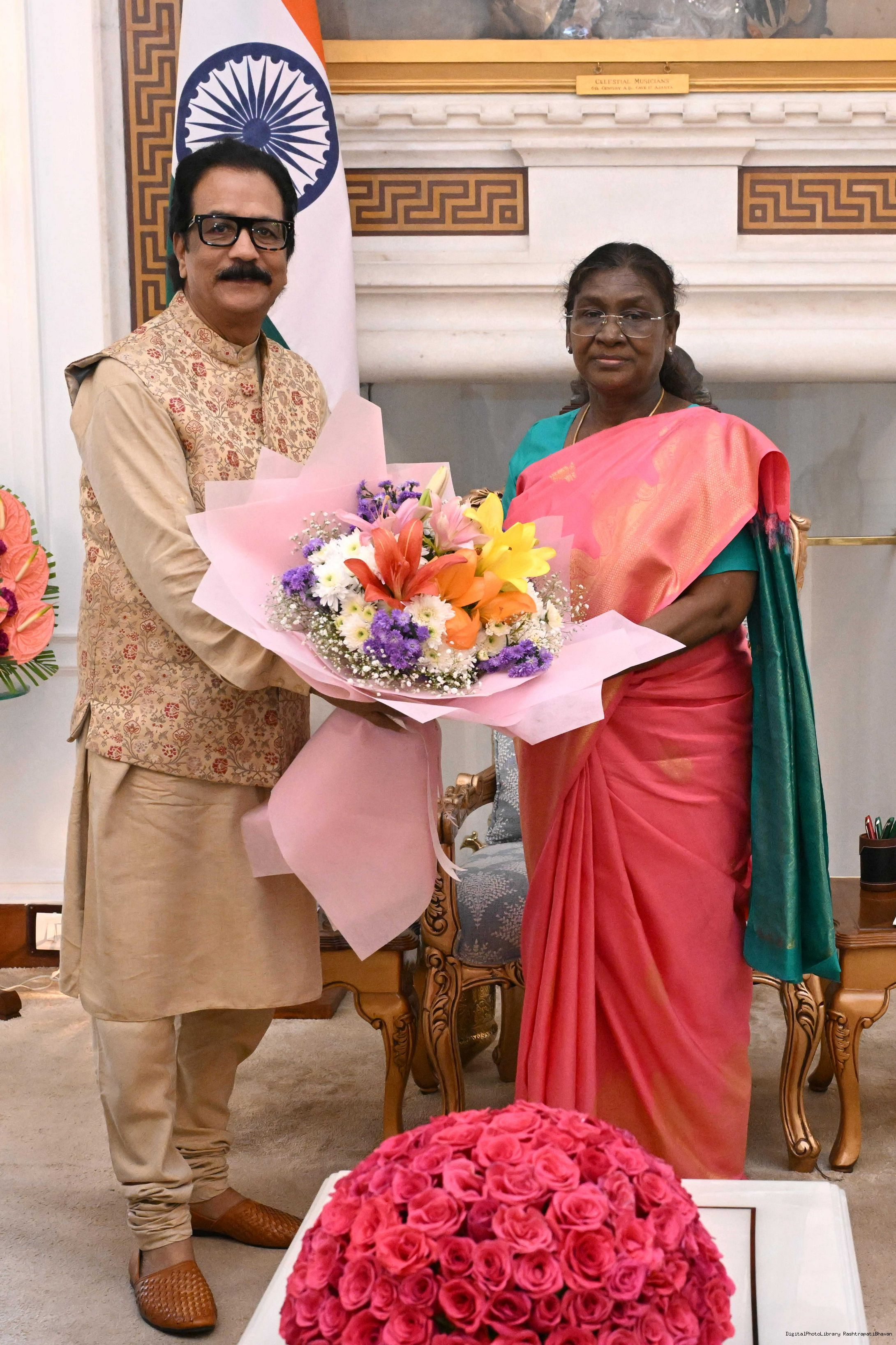 Shri Kishore Jain meeting with the President of India, Smt. Droupadi Murmu at Rashtrapati Bhavan on August 9, 2025.