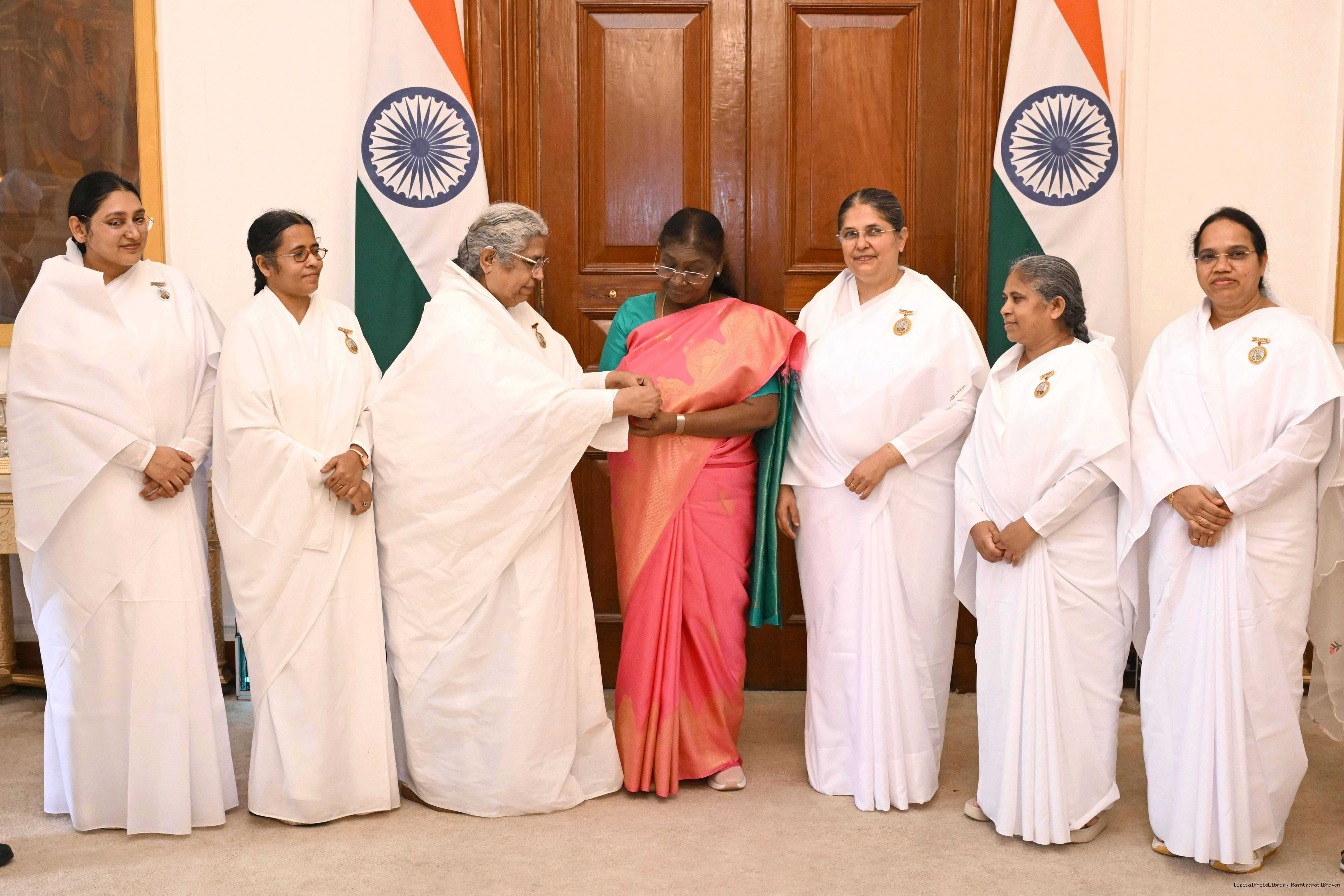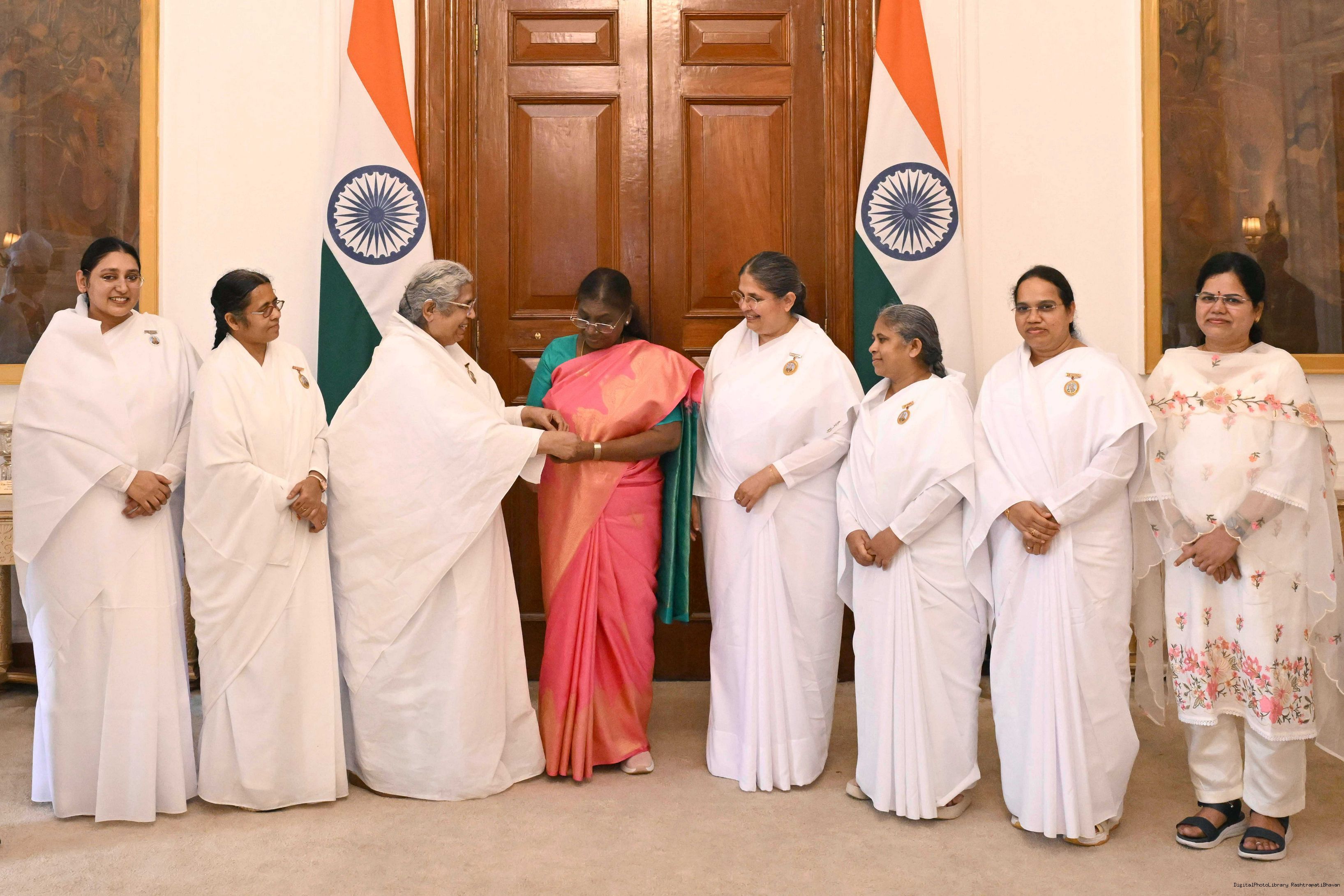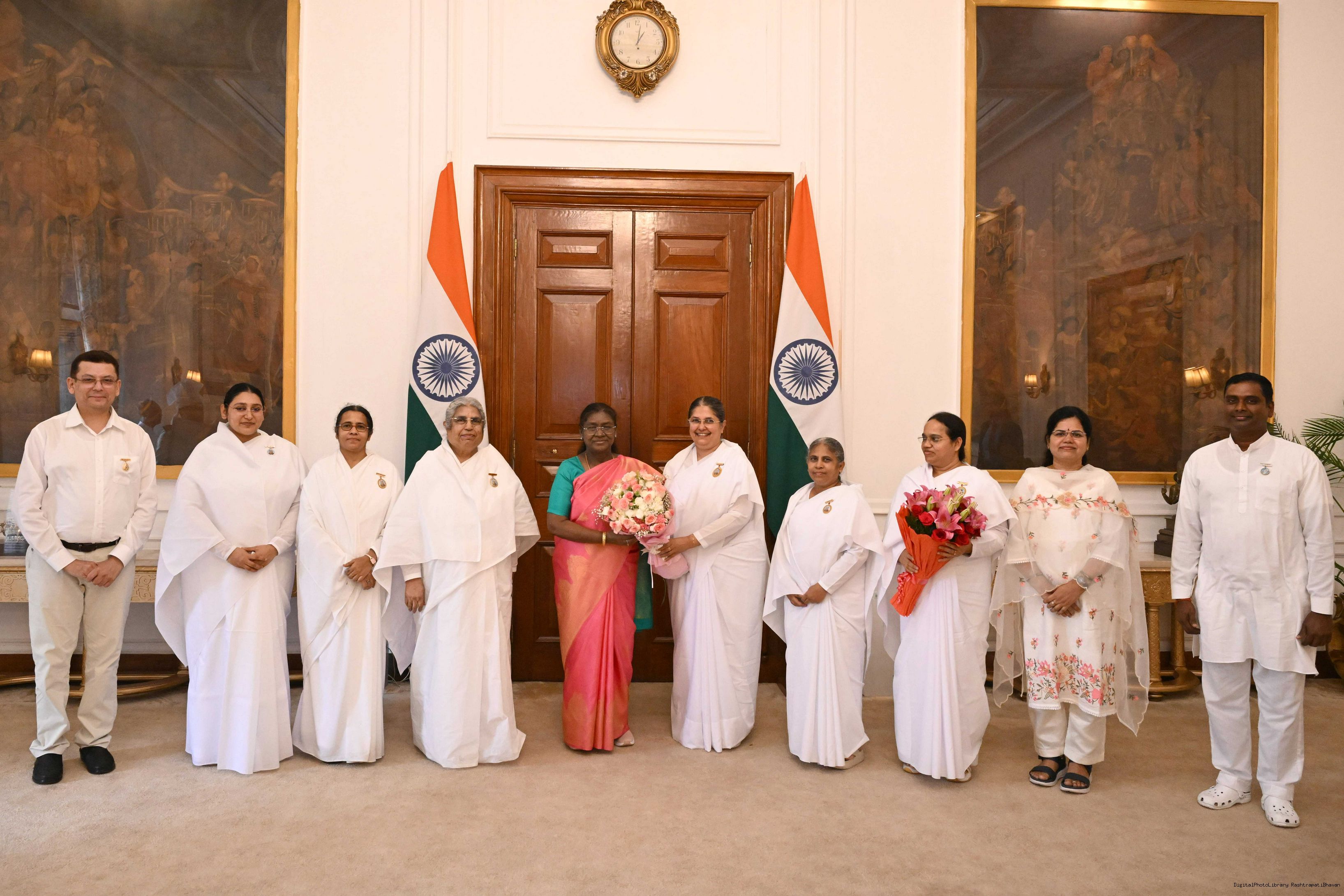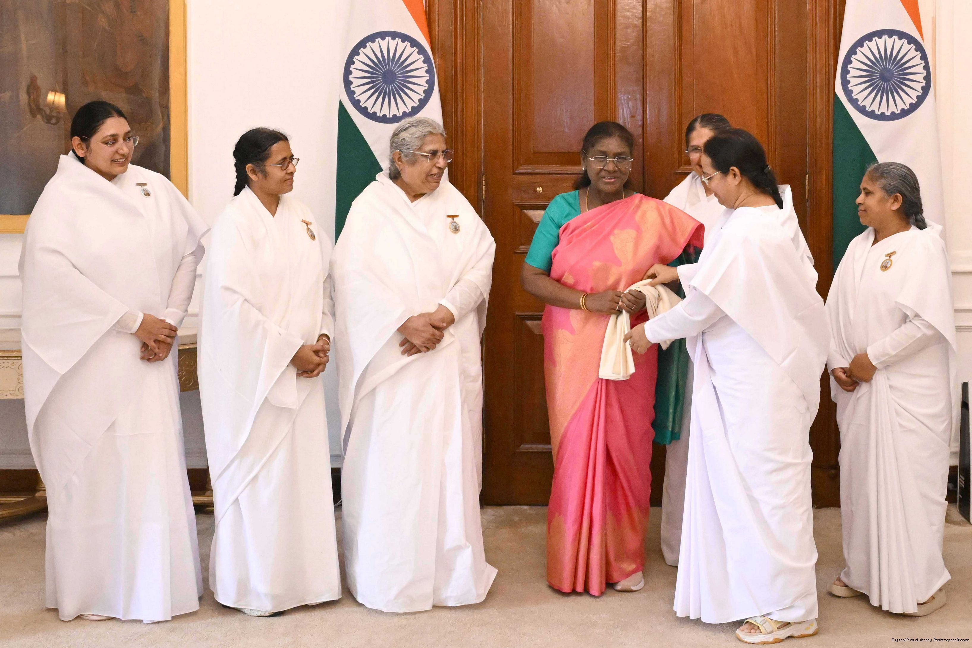 | Caption: | BK Asha, Member, Management Committee of Brahma Kumaris Mount Abu and Director Delhi Zone Service along with others meeting with the President of India, Smt. Droupadi Murmu at Rashtrapati Bhavan on August 9, 2025. |