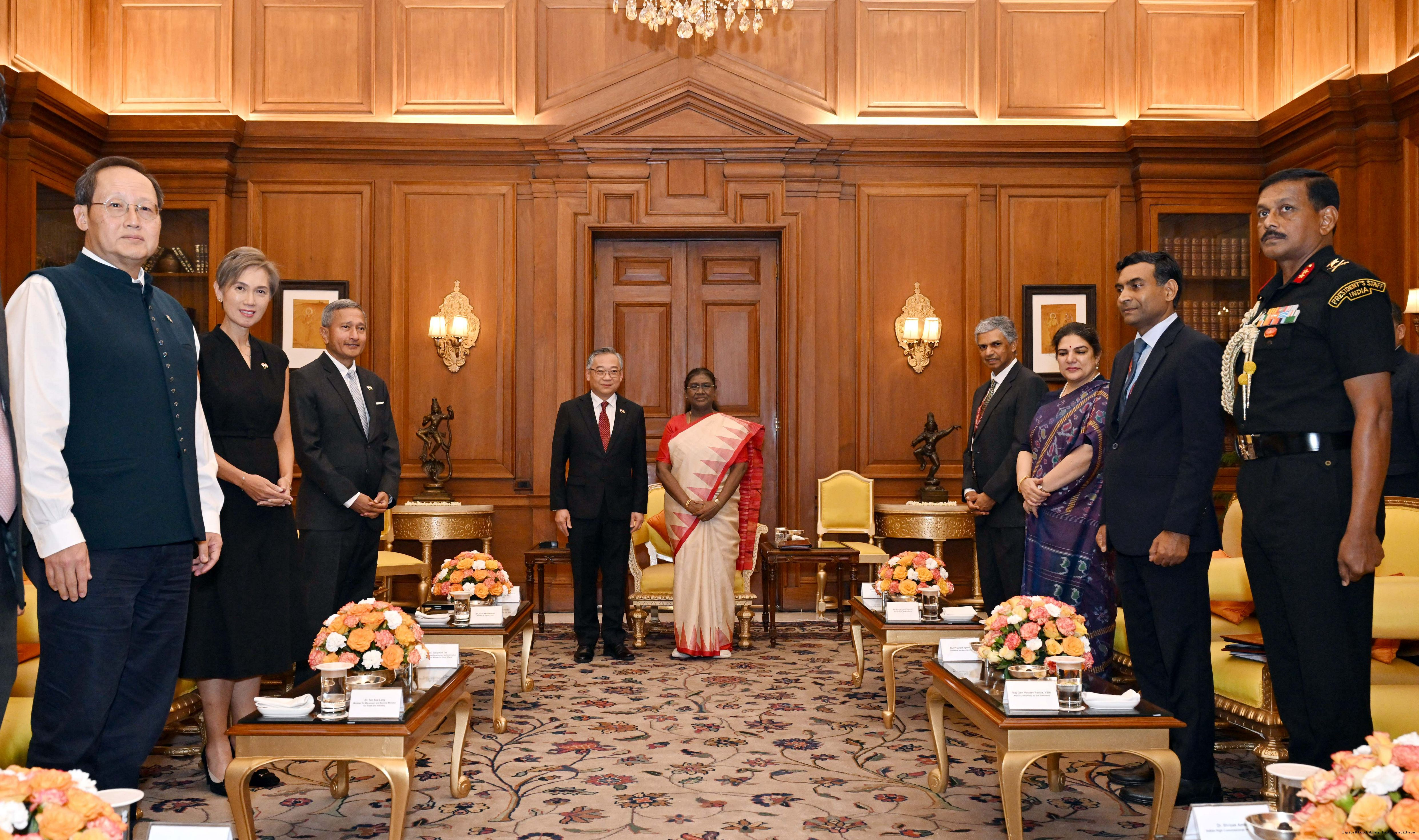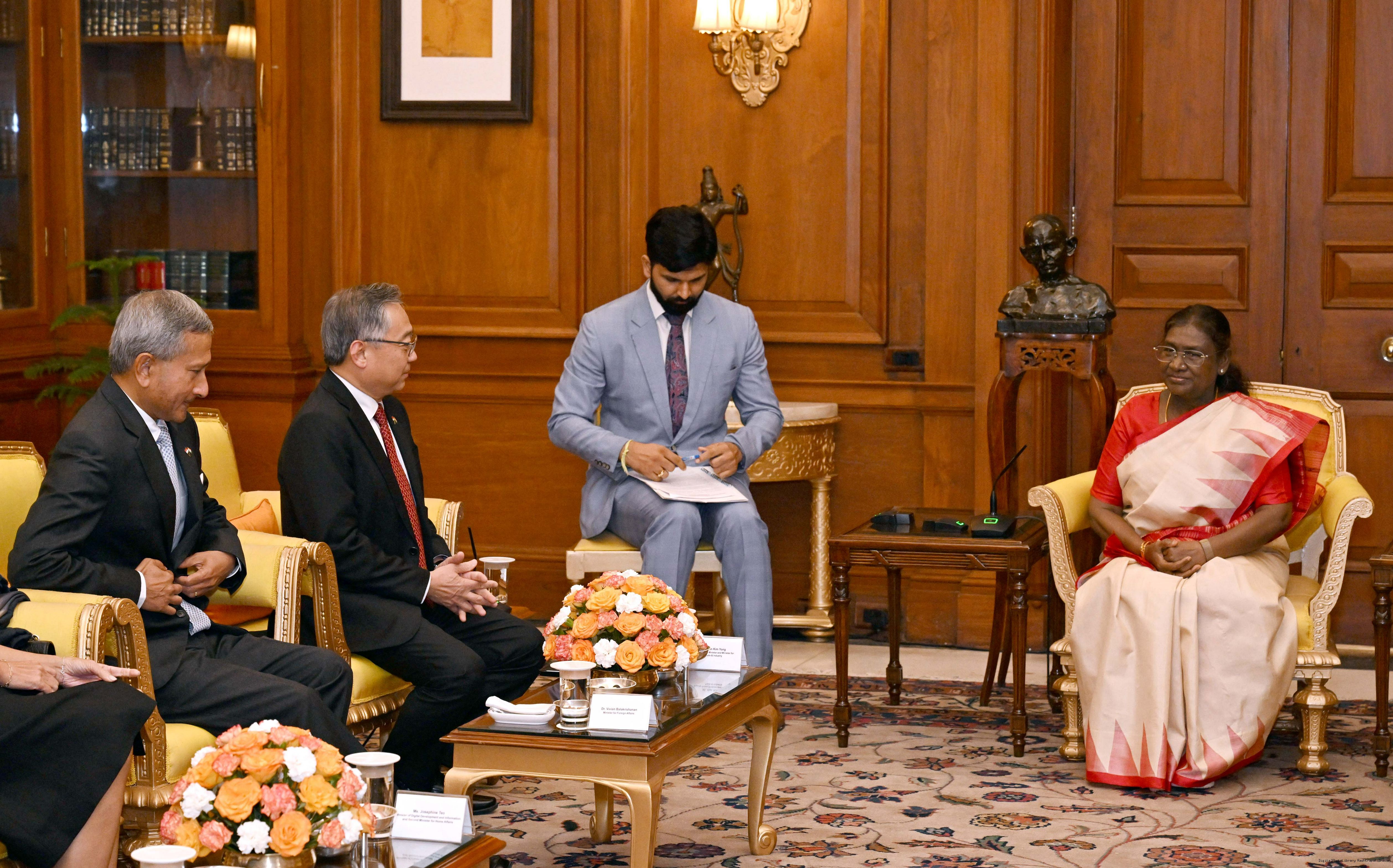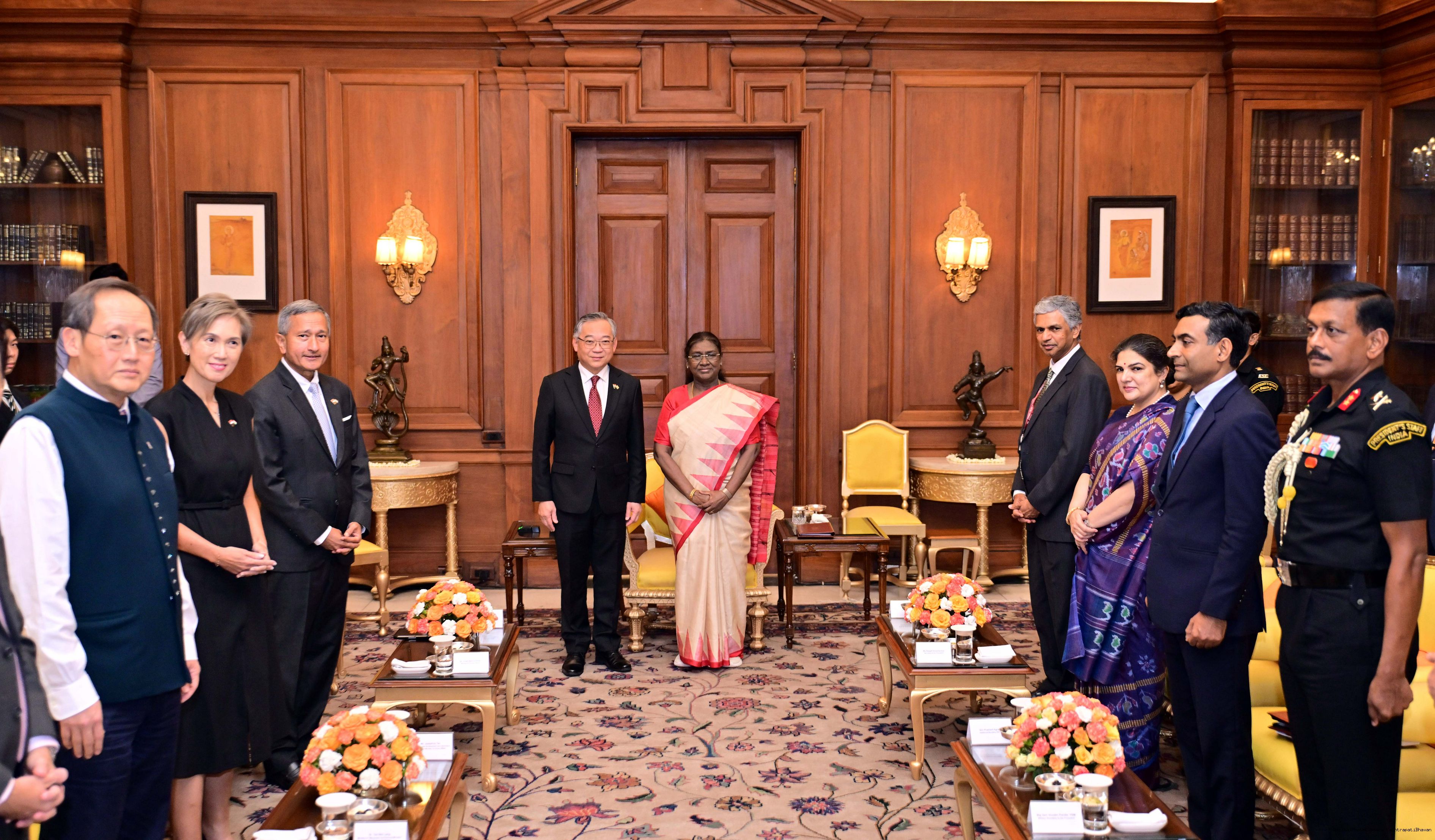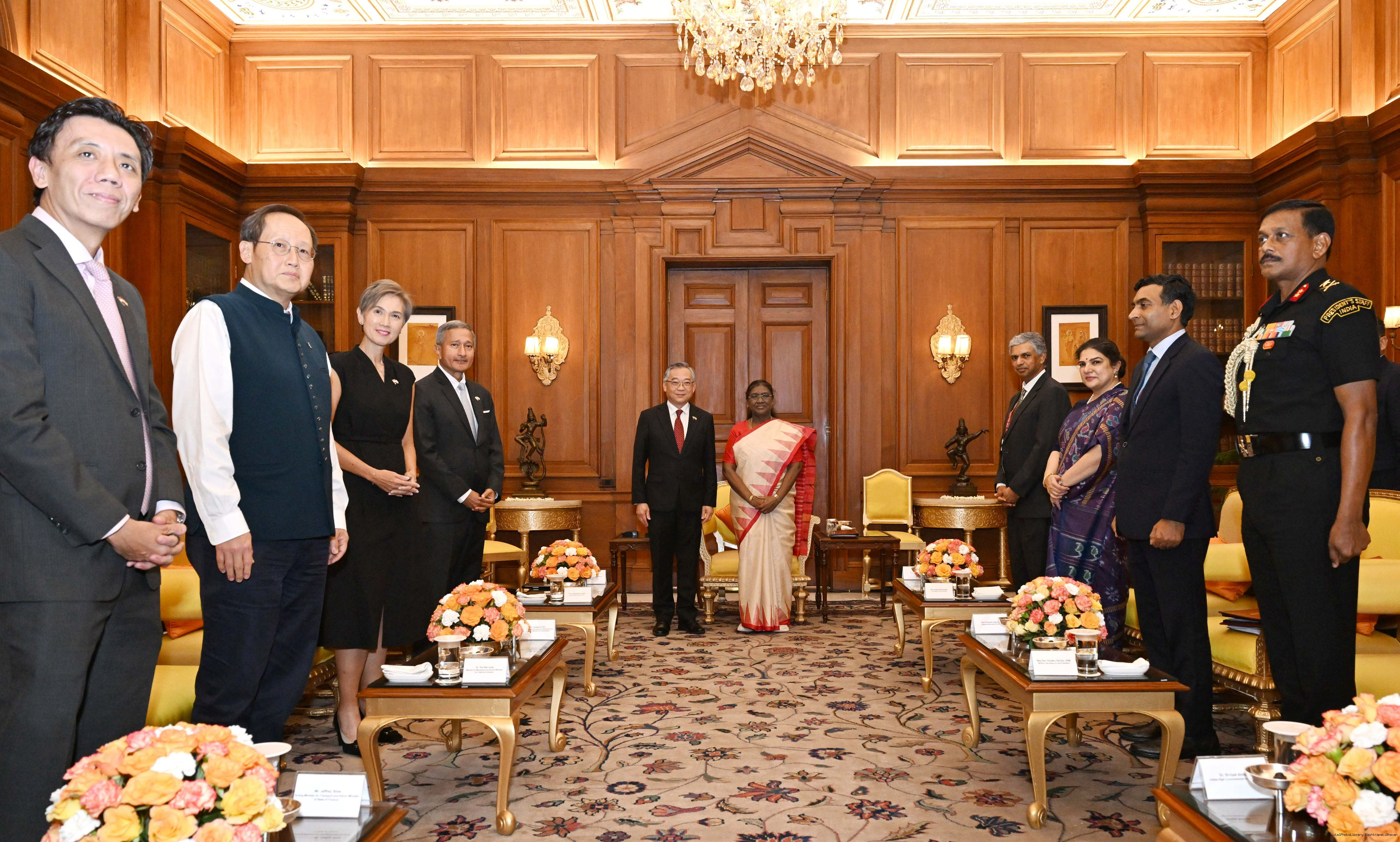 | Caption: | A Ministerial Delegation from Singapore, led by H.E. Mr Gan Kim Yong, Deputy Prime Minister and Minister for Trade and Industry of Singapore, called on the President of India, Smt Droupadi Murmu at Rashtrapati Bhavan on August 13, 2025. |