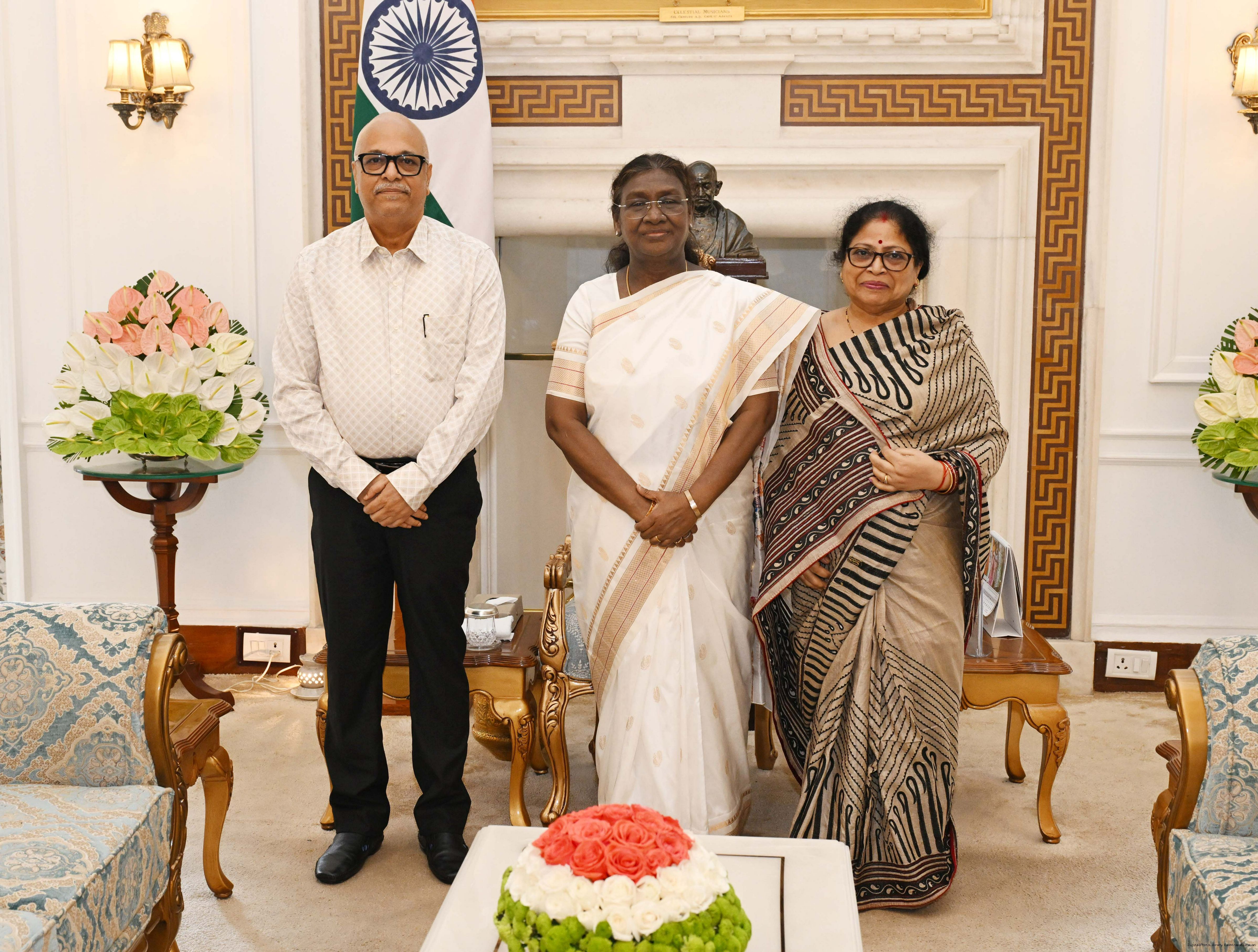 | Caption: | Shri Nabin Das, Editor Nirbhay a vernacular Odiya along with spouse Smt. Mamata Das meeting with the President of India, Smt Droupadi Murmu at Rashtrapati Bhavan on August 16, 2025. |