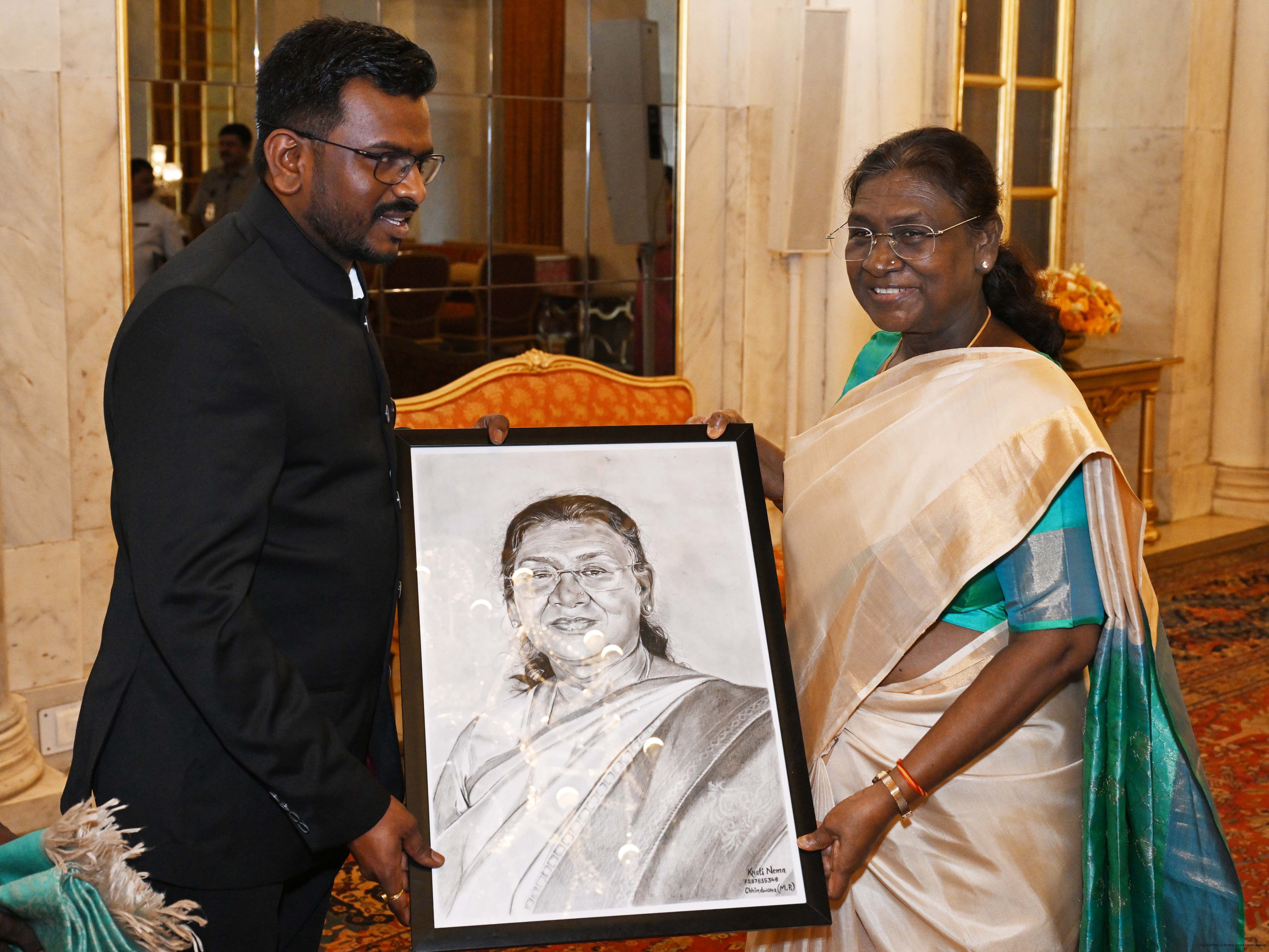 | Caption: | A group of eminent tribal individuals from diverse backgrounds, representing various states, called on the President of India, Smt Droupadi Murmu at Rashtrapati Bhavan at Rashtrapati Bhavan on August 18, 2025. |