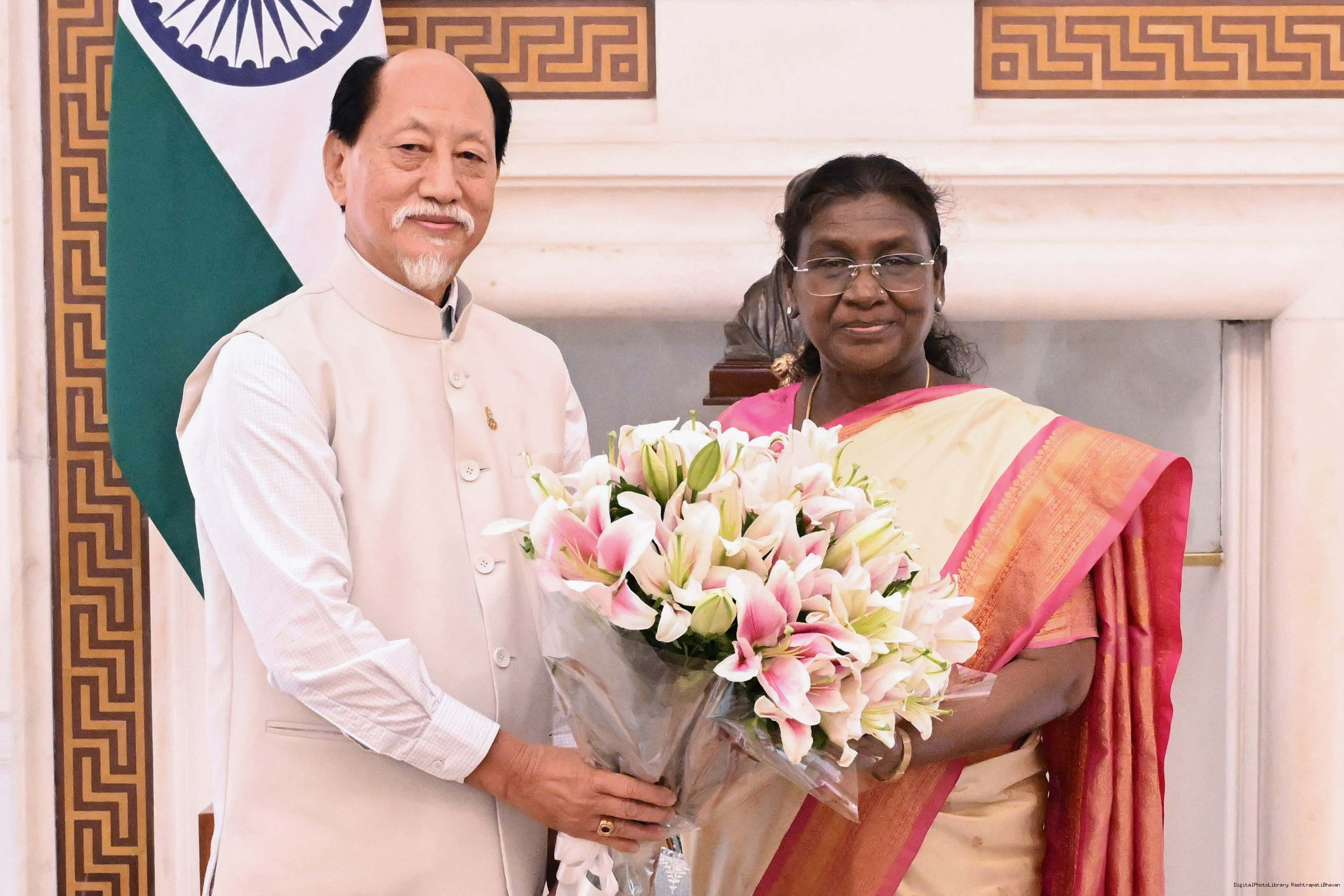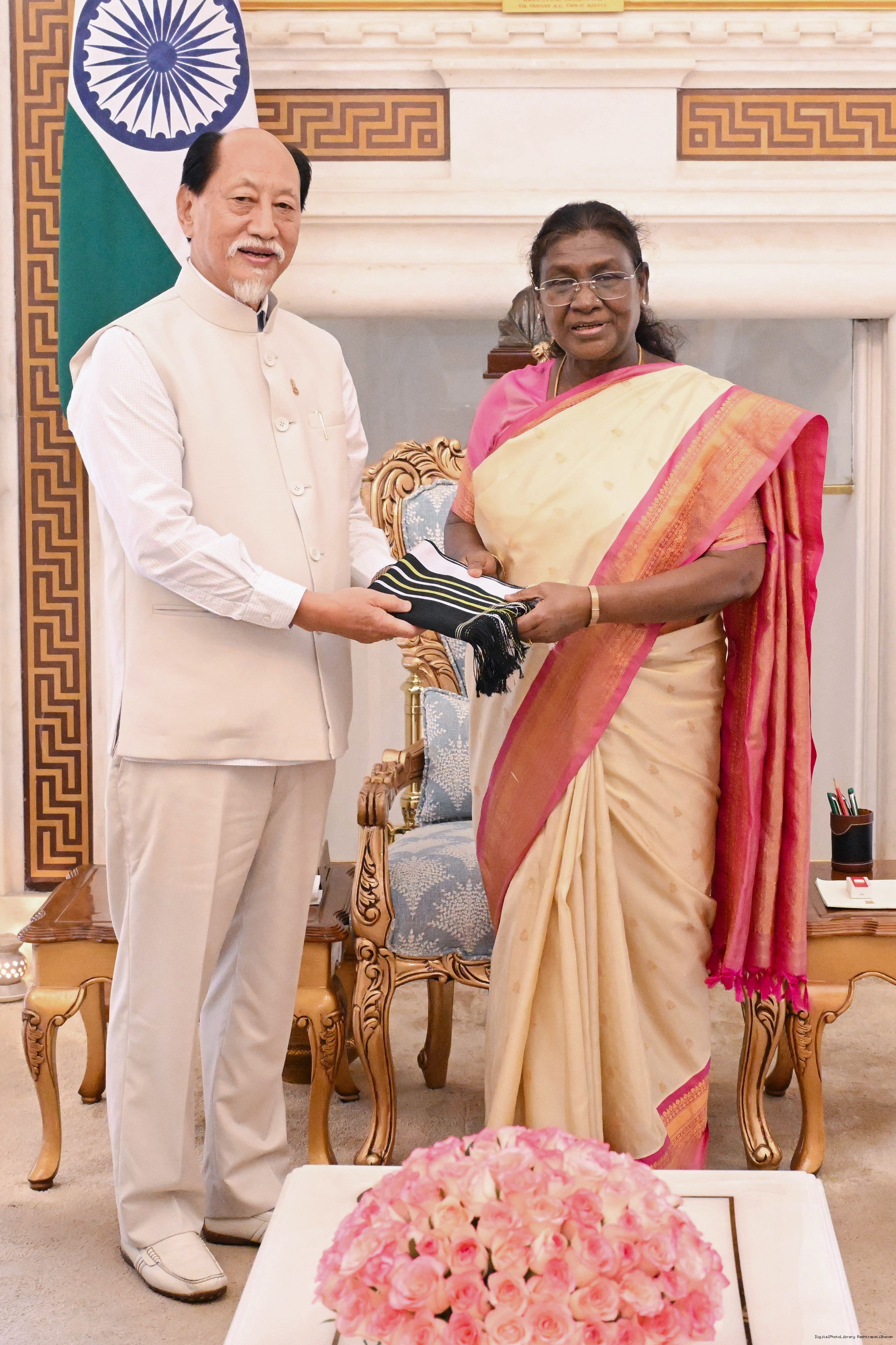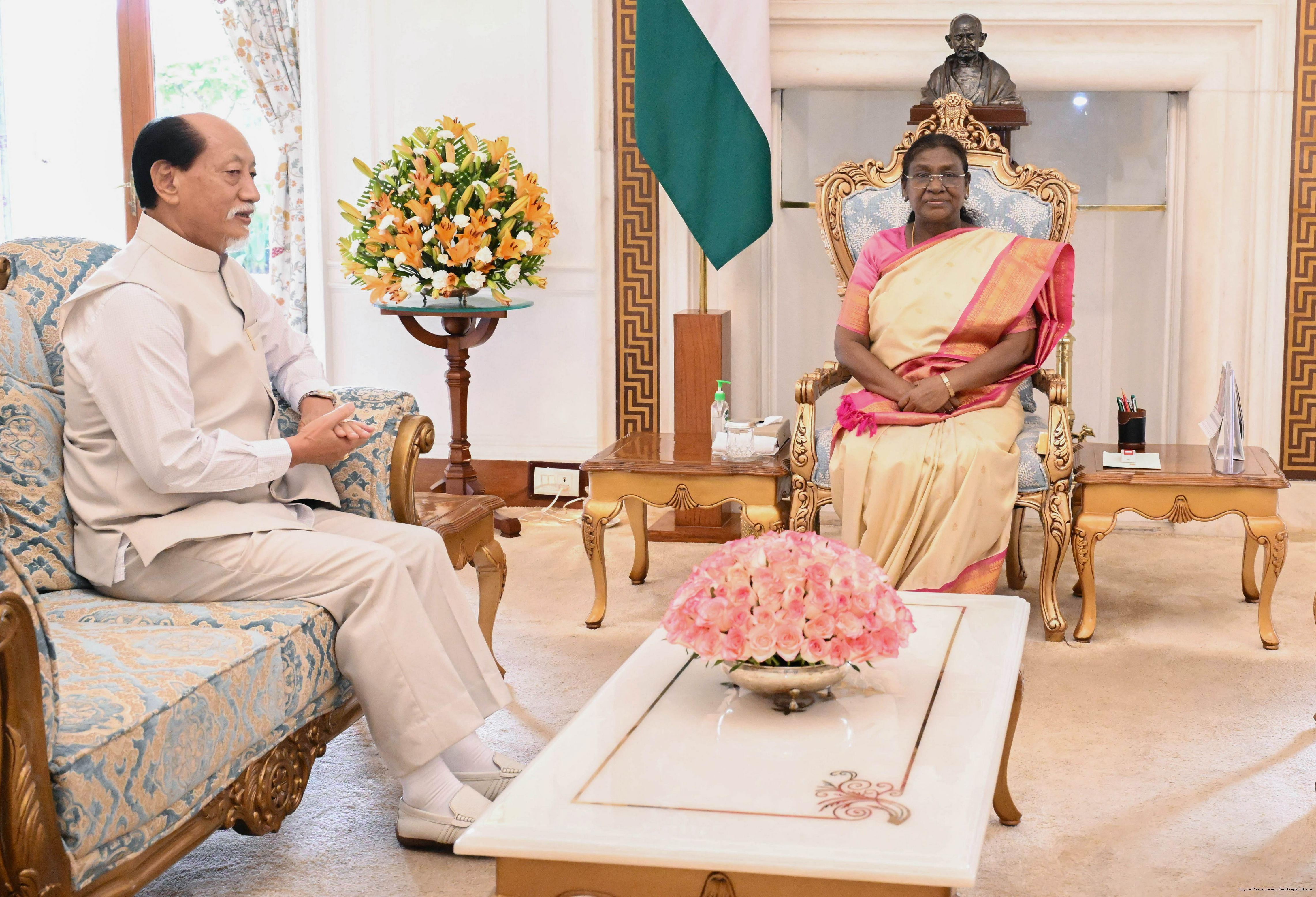 The Chief Minister of Nagaland, Shri Neiphiu Rio called on the President of India, Smt Droupadi Murmu at Rashtrapati Bhavan on August 21, 2025.