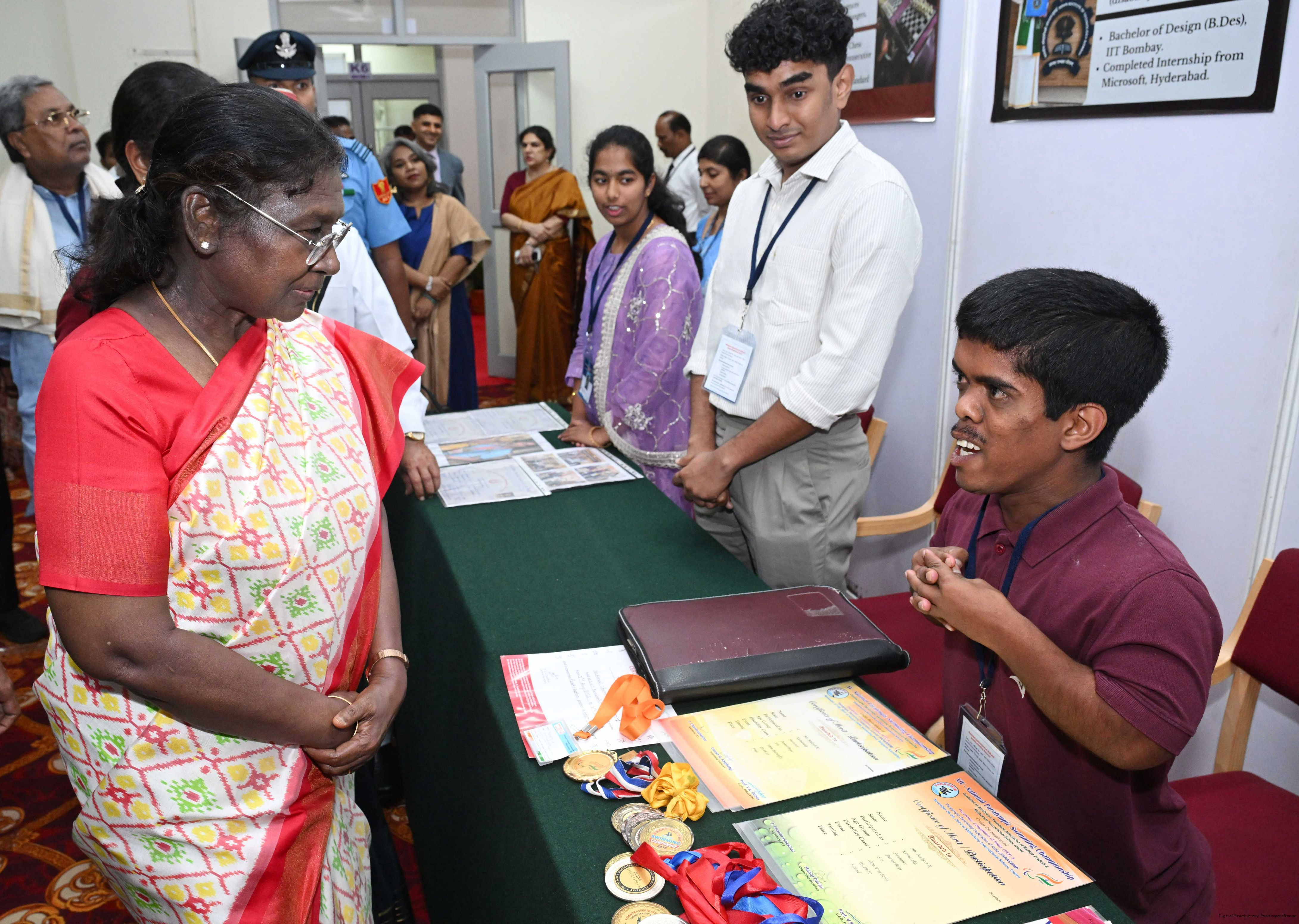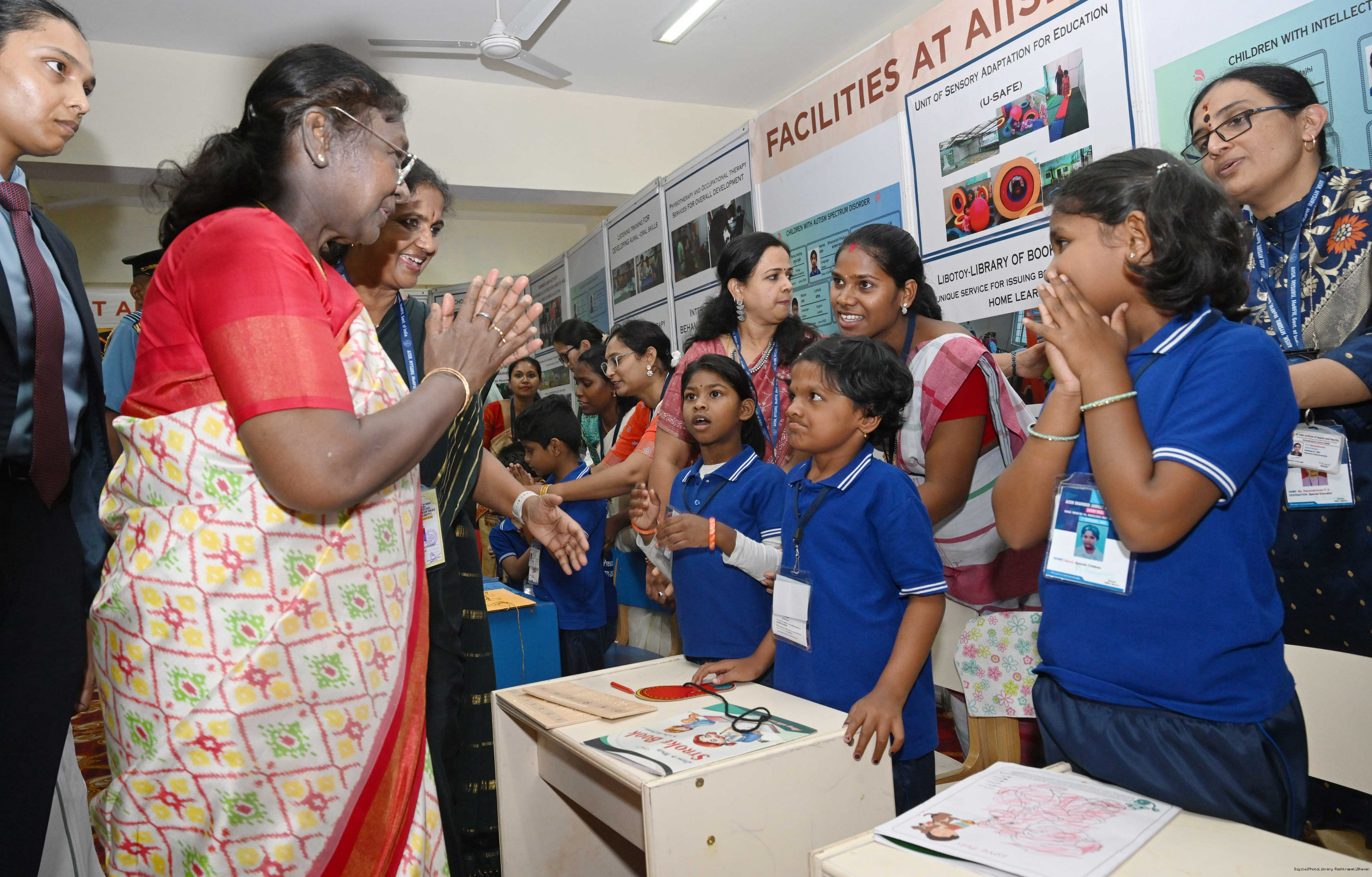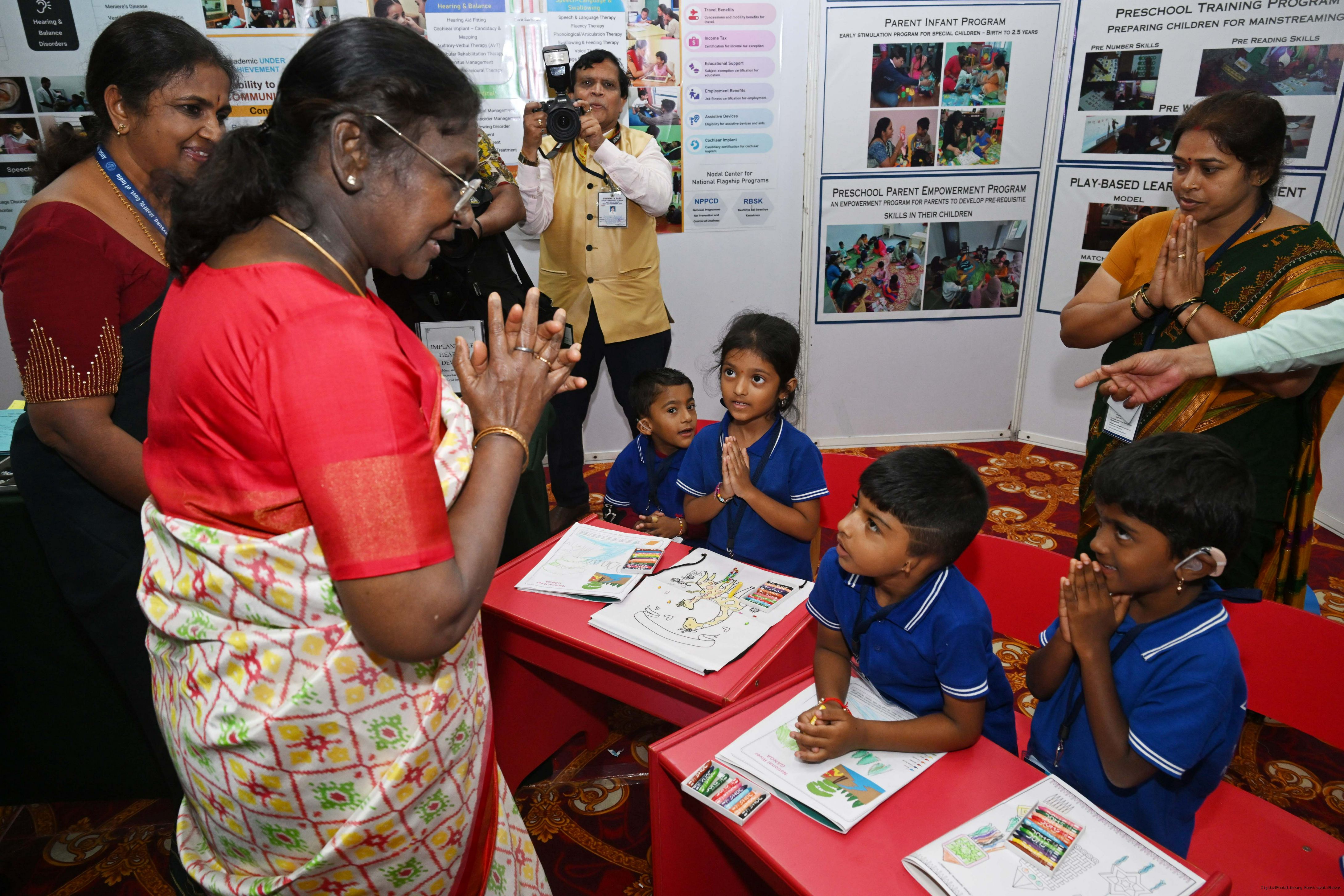 | Caption: | The President of India, Smt Droupadi Murmu interacted with Divyang Children of AIISH Pre school from AIISH Mysuru Karnataka on September 1, 2025. |