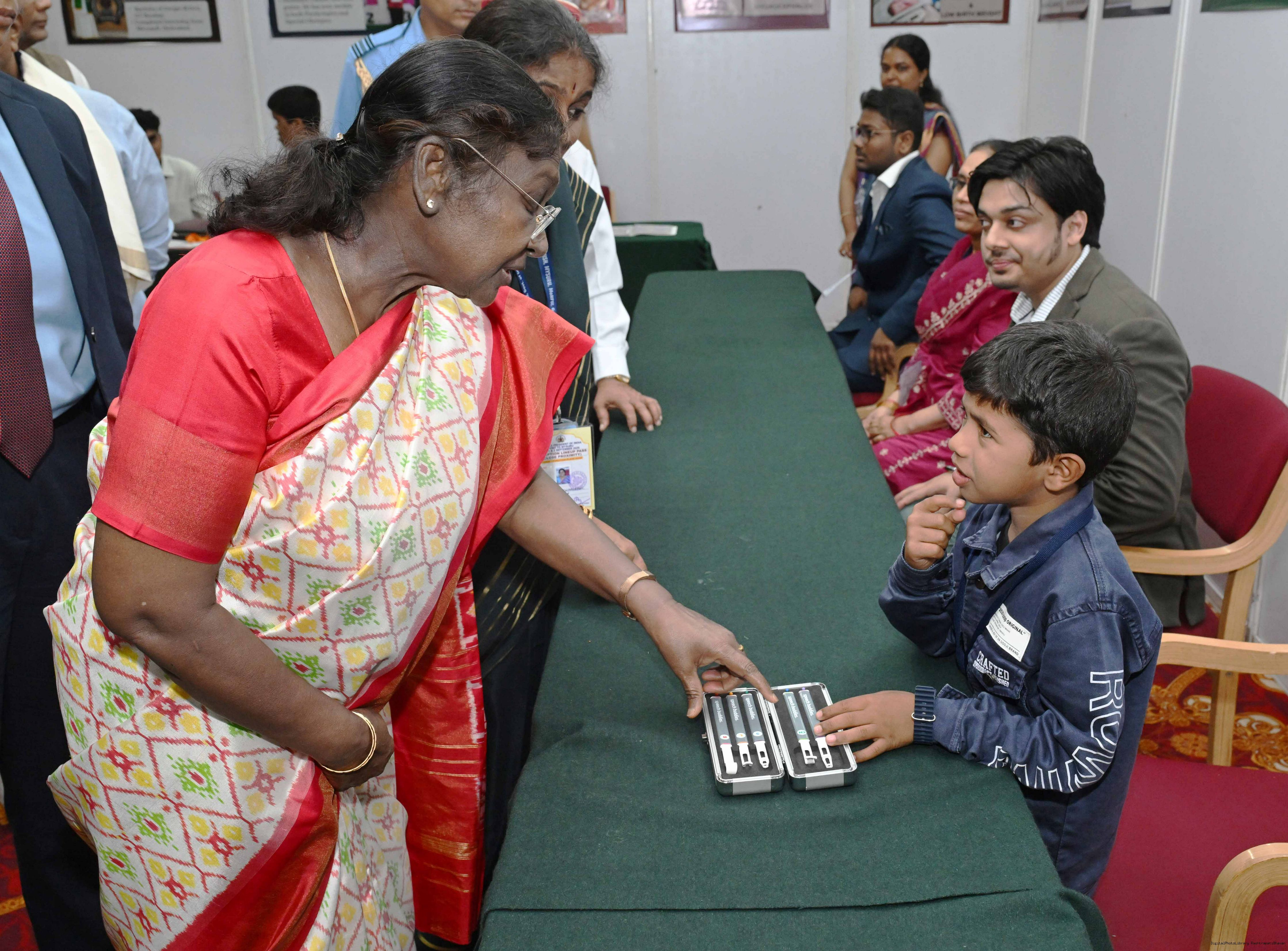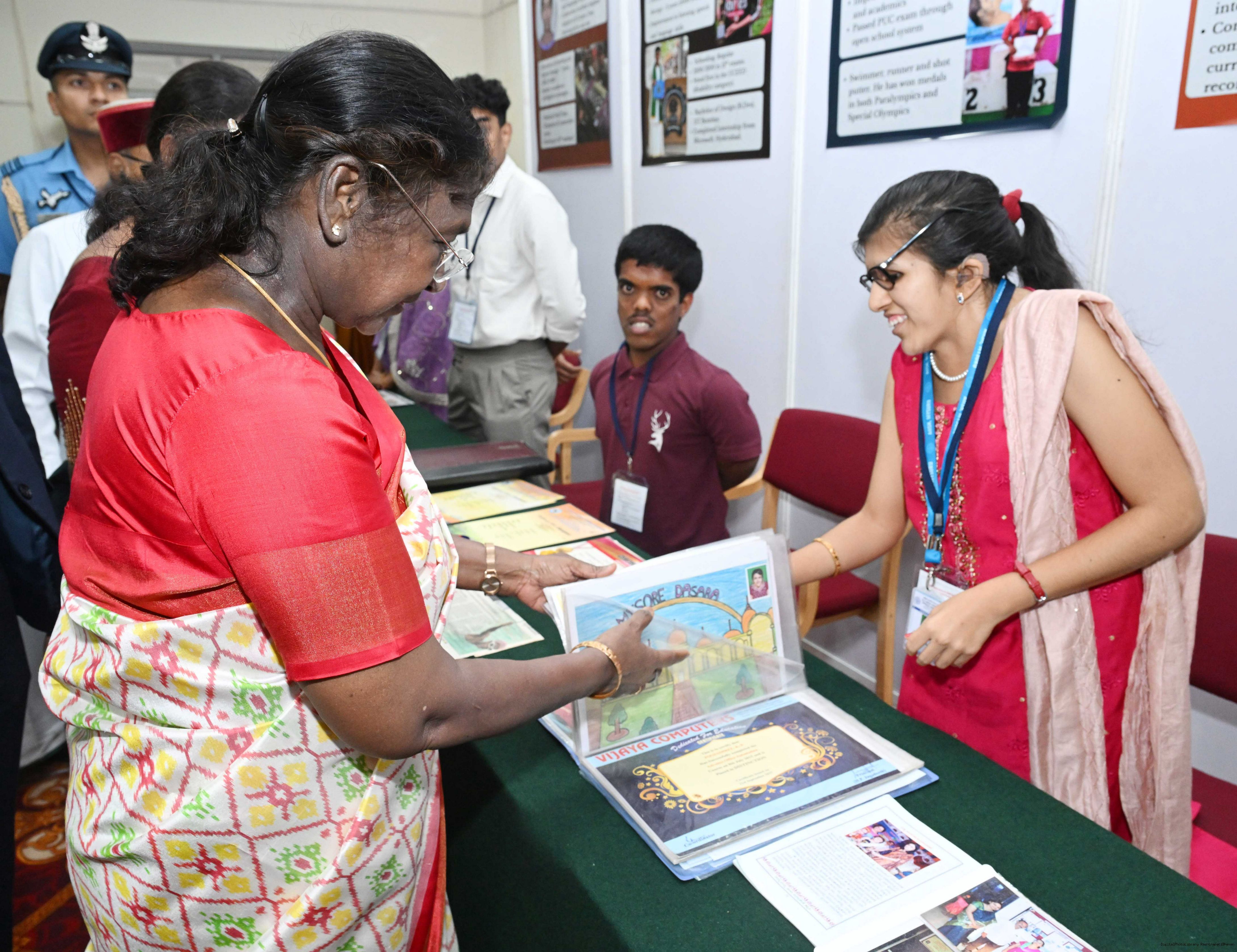| Caption: | The President of India, Smt Droupadi Murmu interacted with Divyang Children of AIISH Pre school from AIISH Mysuru Karnataka on September 1, 2025. |