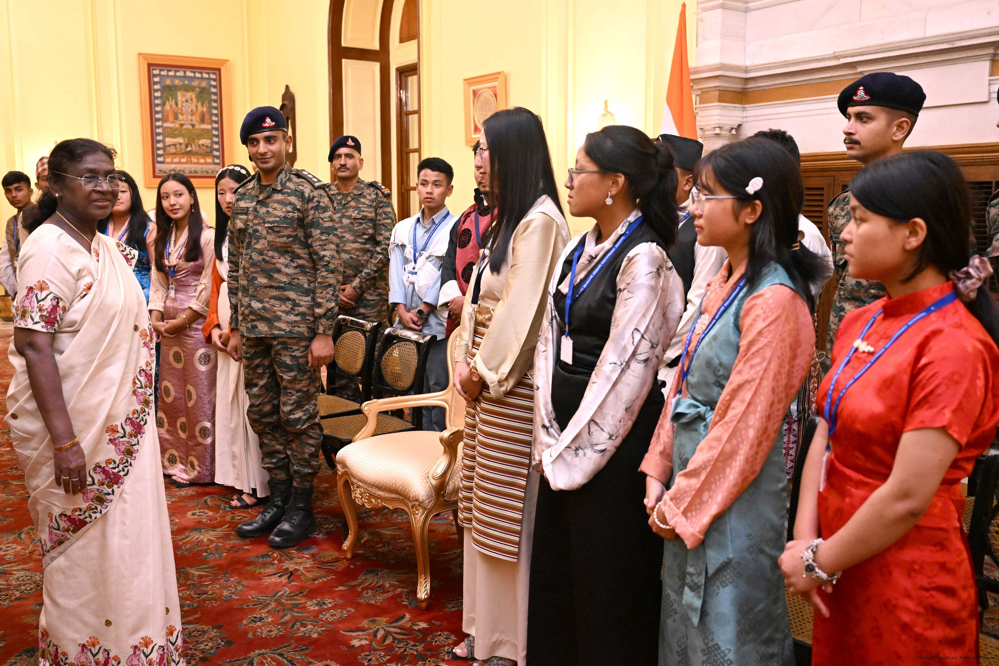 | Caption: | The President of India, Smt. Droupadi Murmu met group of students from Sikkim and Nagaland at Rashtrapati Bhavan on September 5, 2025. They visited Rashtrapati Bhavan as part of the National Integration Tour. |