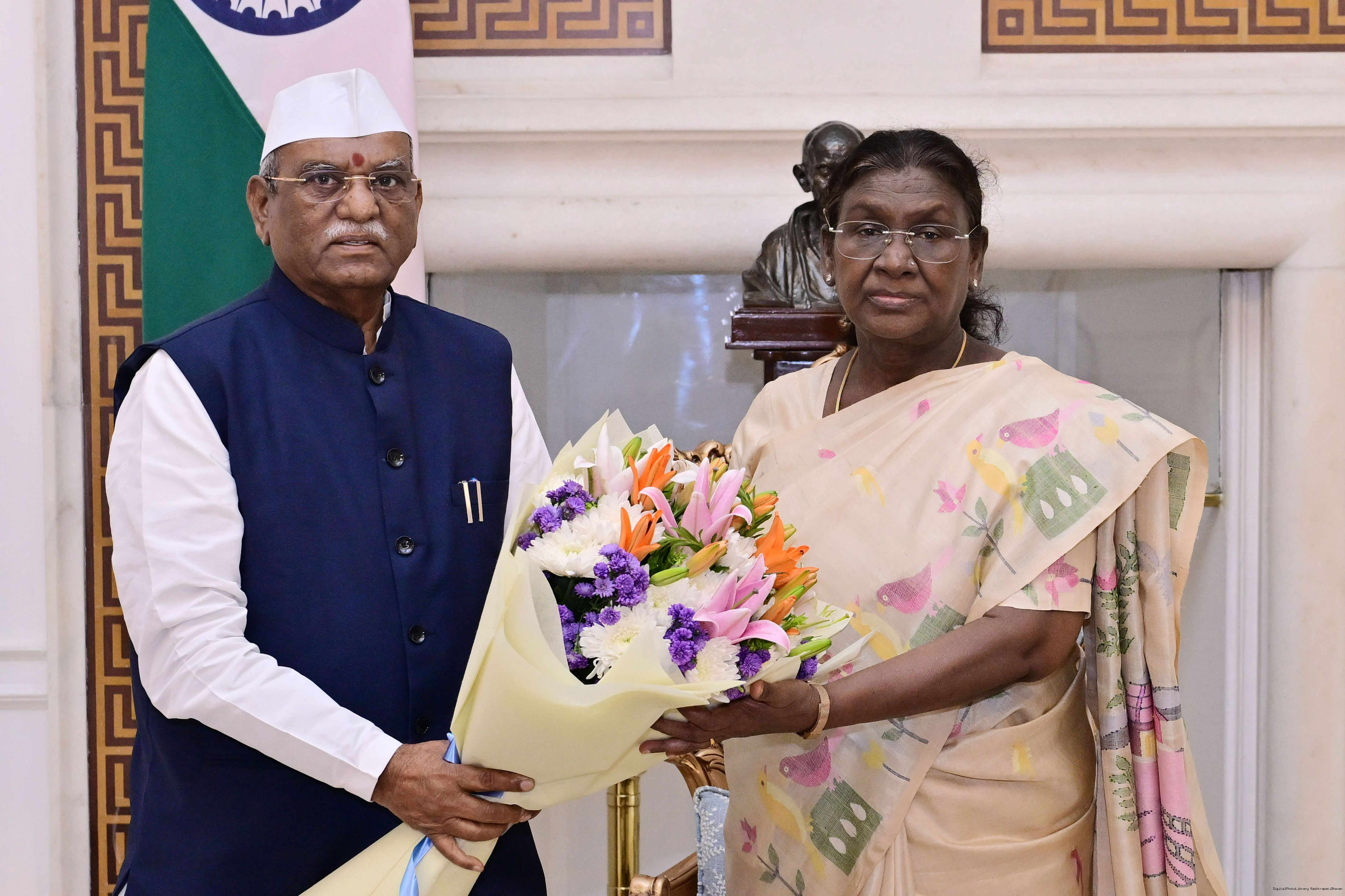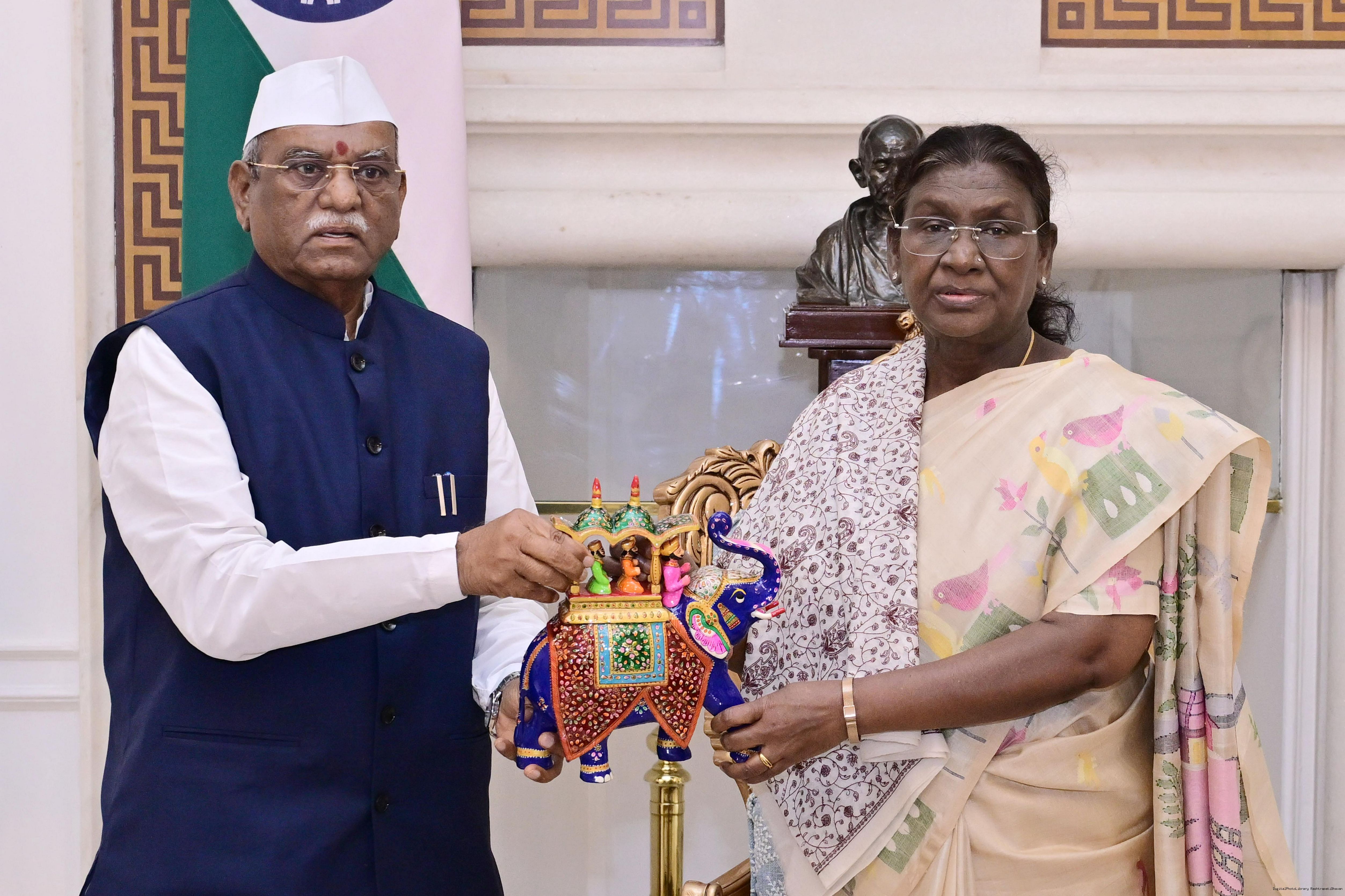 | Caption: | The Governor of Rajasthan, Shri Haribhau Kisanrao Bagde, called on the President of India, Smt. Droupadi Murmu at Rashtrapati Bhavan on September 8, 2025. |