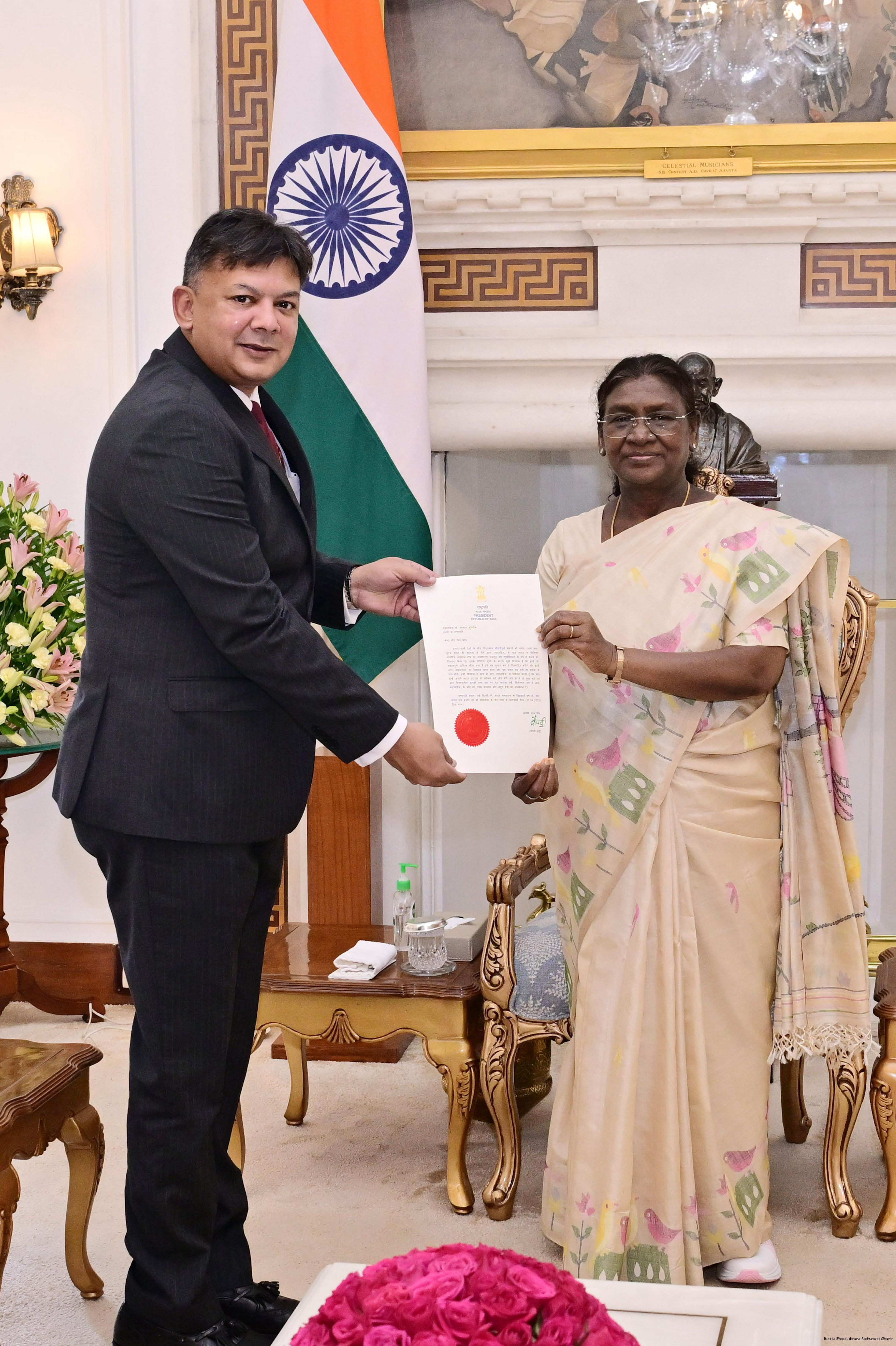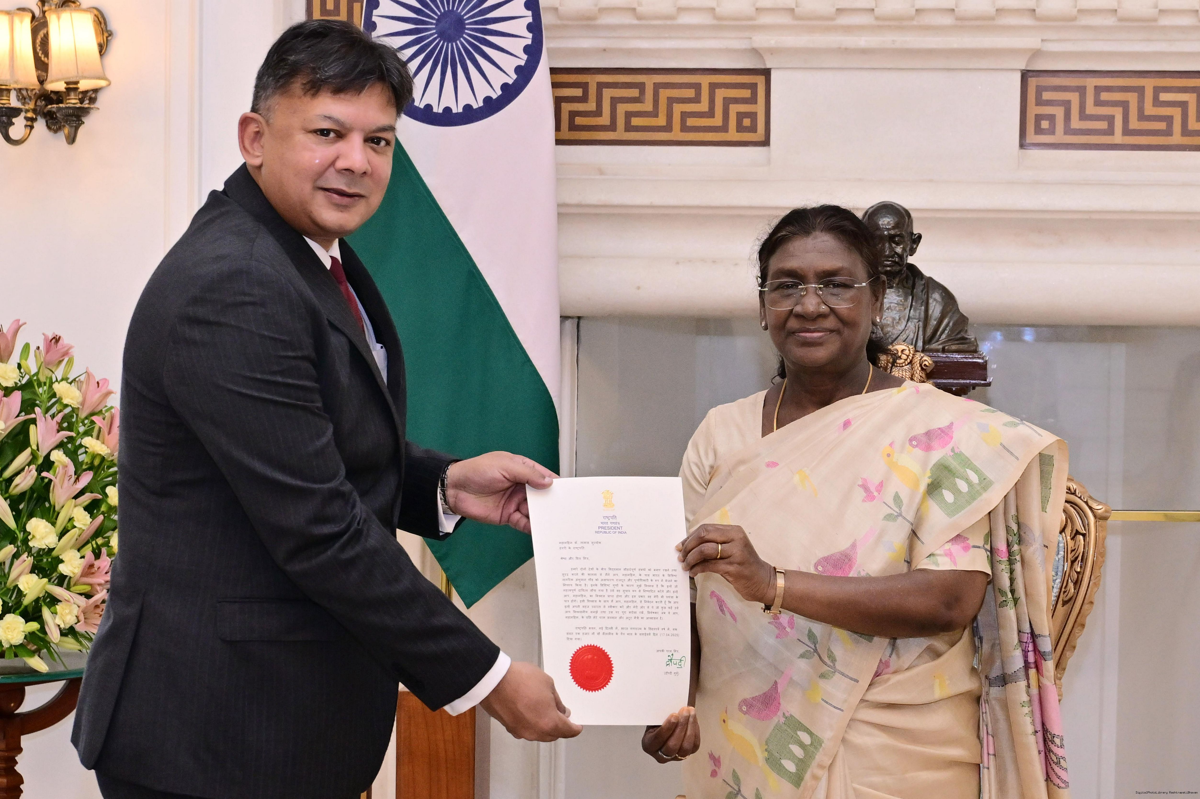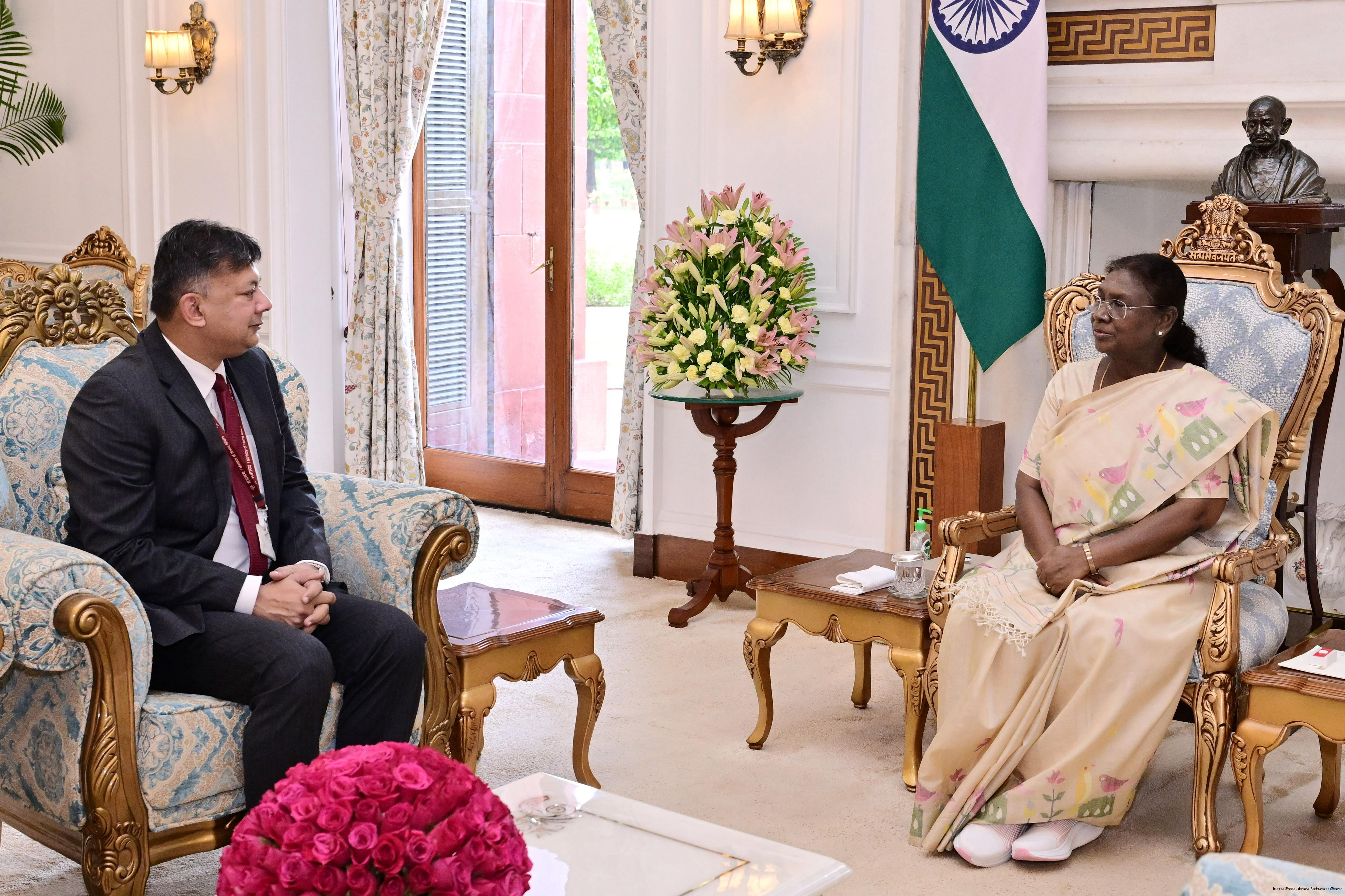 | Caption: | The Ambassador-designate of India to Hungry, Shri Anshuman Gaur meeting with the President of India, Smt. Droupadi Murmu at Rashtrapati Bhavan on September 8, 2025. |
