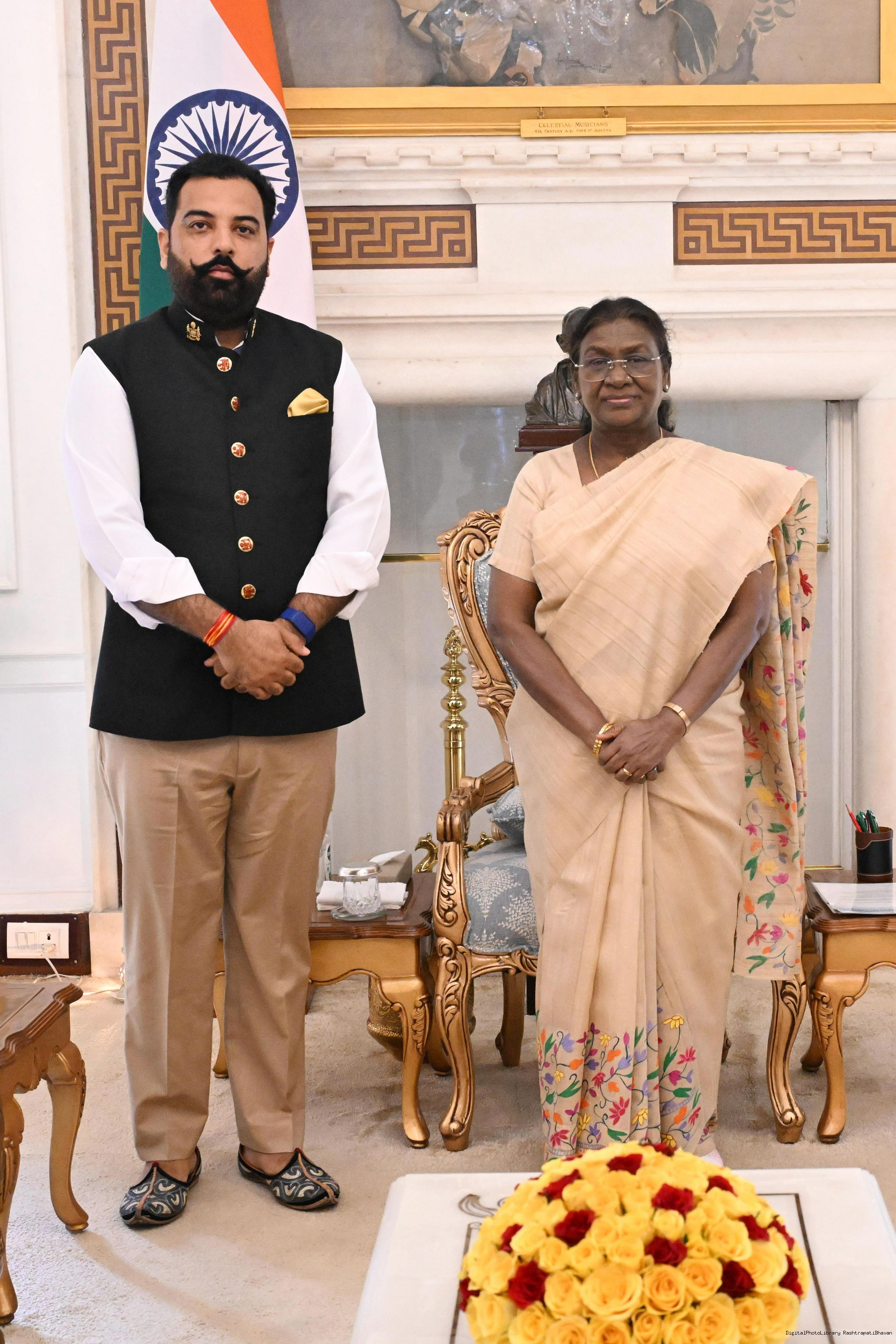 | Caption: | Shri Lakashyaraj Singh Mewar, 77th Custodian of the House of Mewar meeting with the President of India, Smt. Droupadi Murmu at Rashtrapati Bhavan on September 9, 2025. |