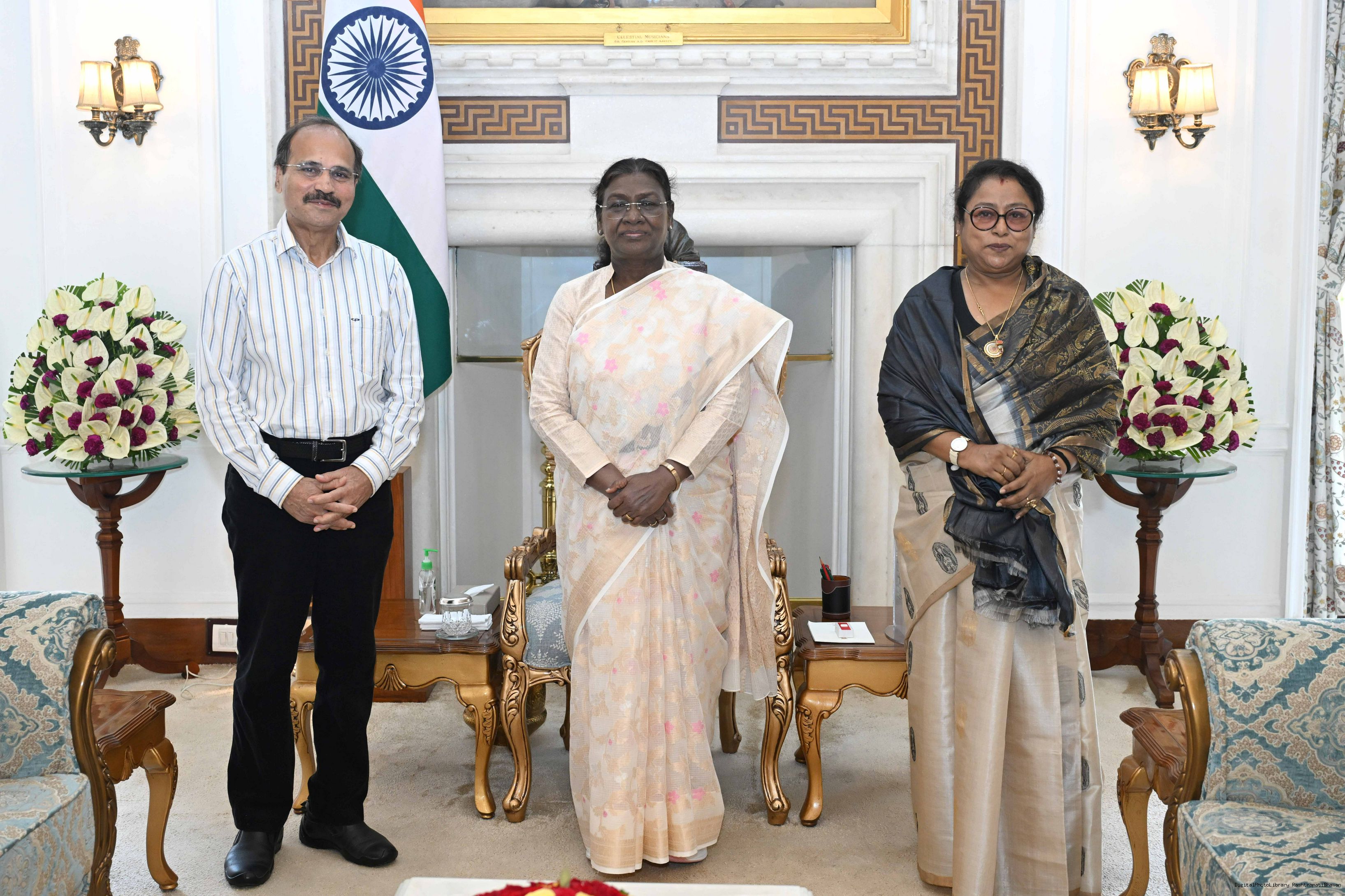 | Caption: | Shri Adhir Ranjan Chowdhary, former Union Minister and Leader of Indian National Congress in 17th Lok Sabha along with spouse Dr. Atasi Chowdhary meeting with the President of India, Smt. Droupadi Murmu at Rashtrapati Bhavan on September 10, 2025. |