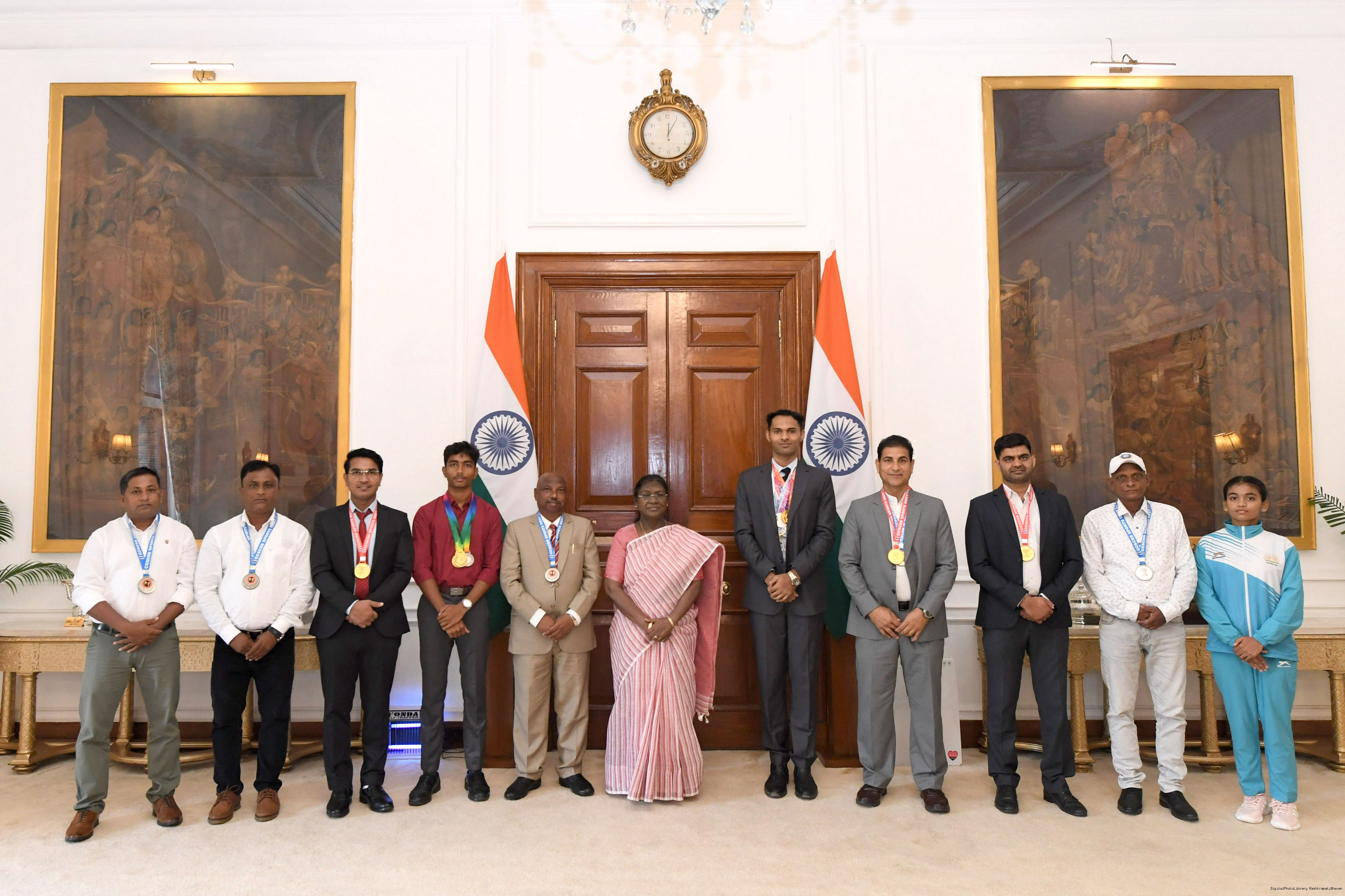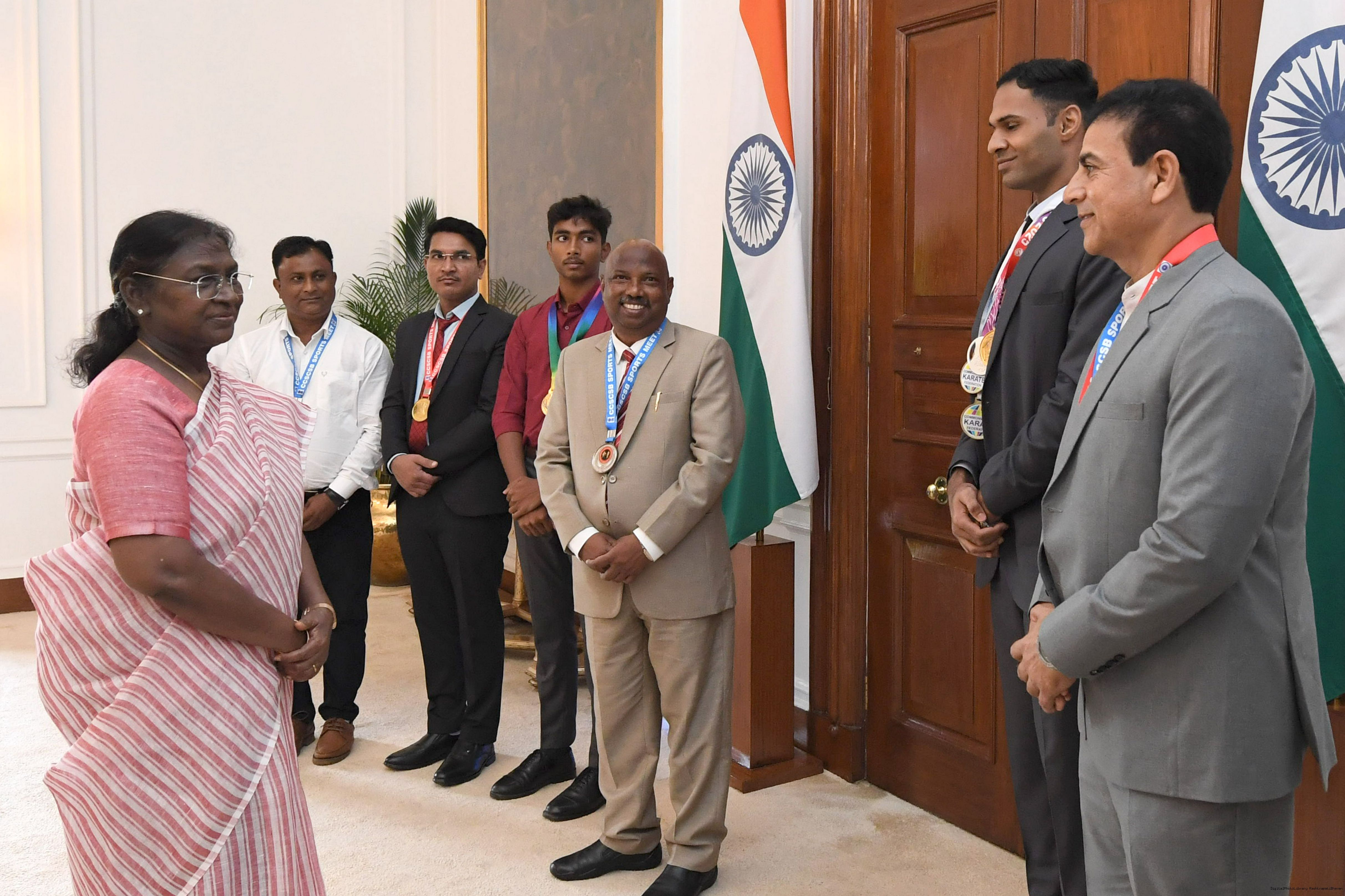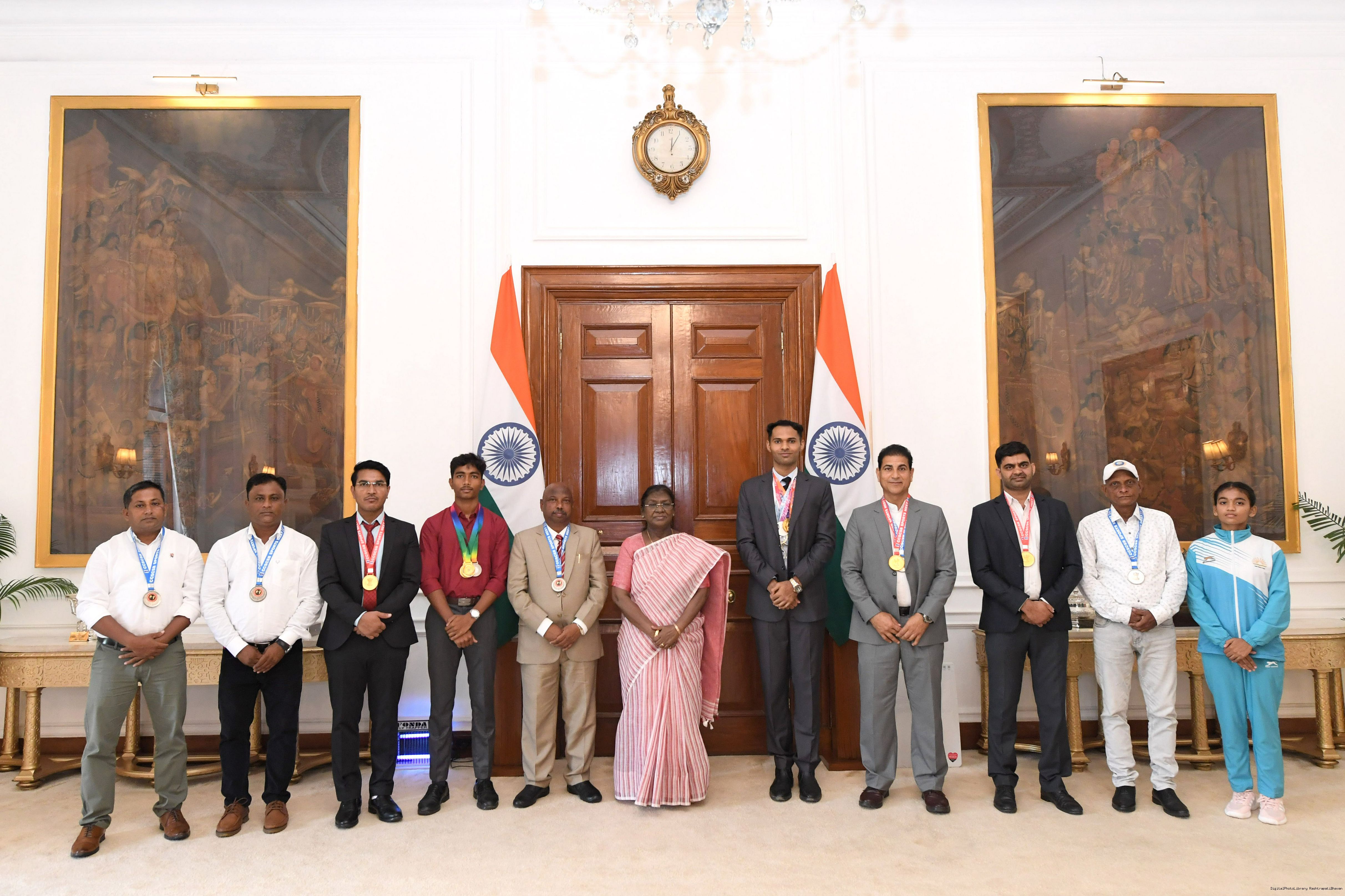 | Caption: | Shri Gautam Kumar, US along with others, sports achievers meeting with the President of India, Smt. Droupadi Murmu at Rashtrapati Bhavan on September 11, 2025. |
