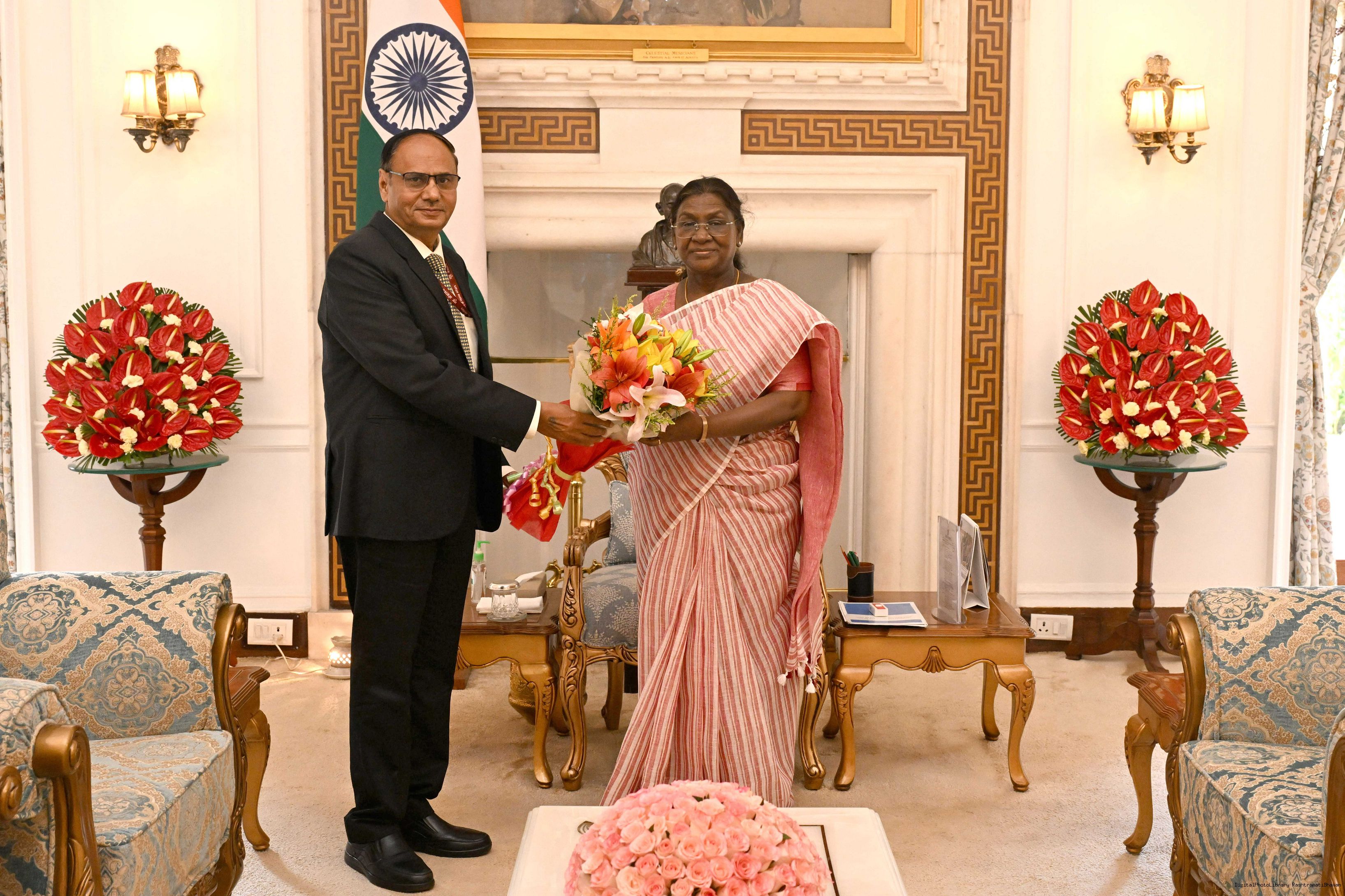 | Caption: | Shri Heeralal Samariya, IAS (Retd) 1985, Chief Information Commissioner, CIC meeting with the President of India, Smt. Droupadi Murmu at Rashtrapati Bhavan on September 11, 2025. |