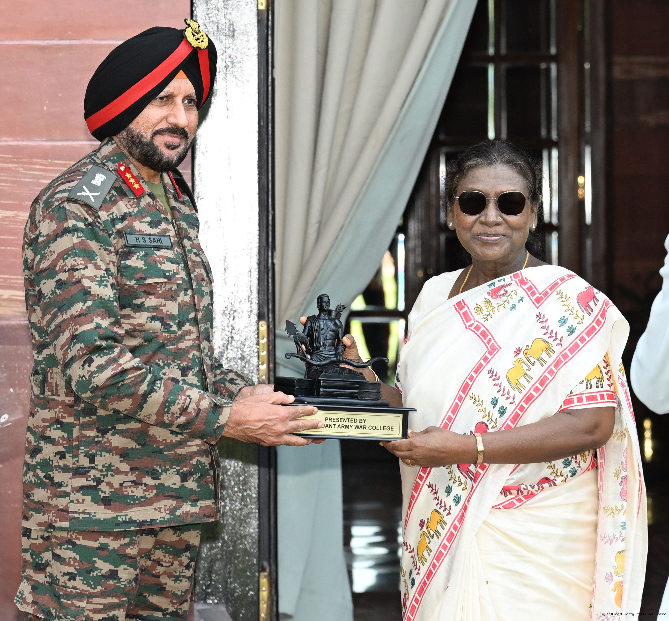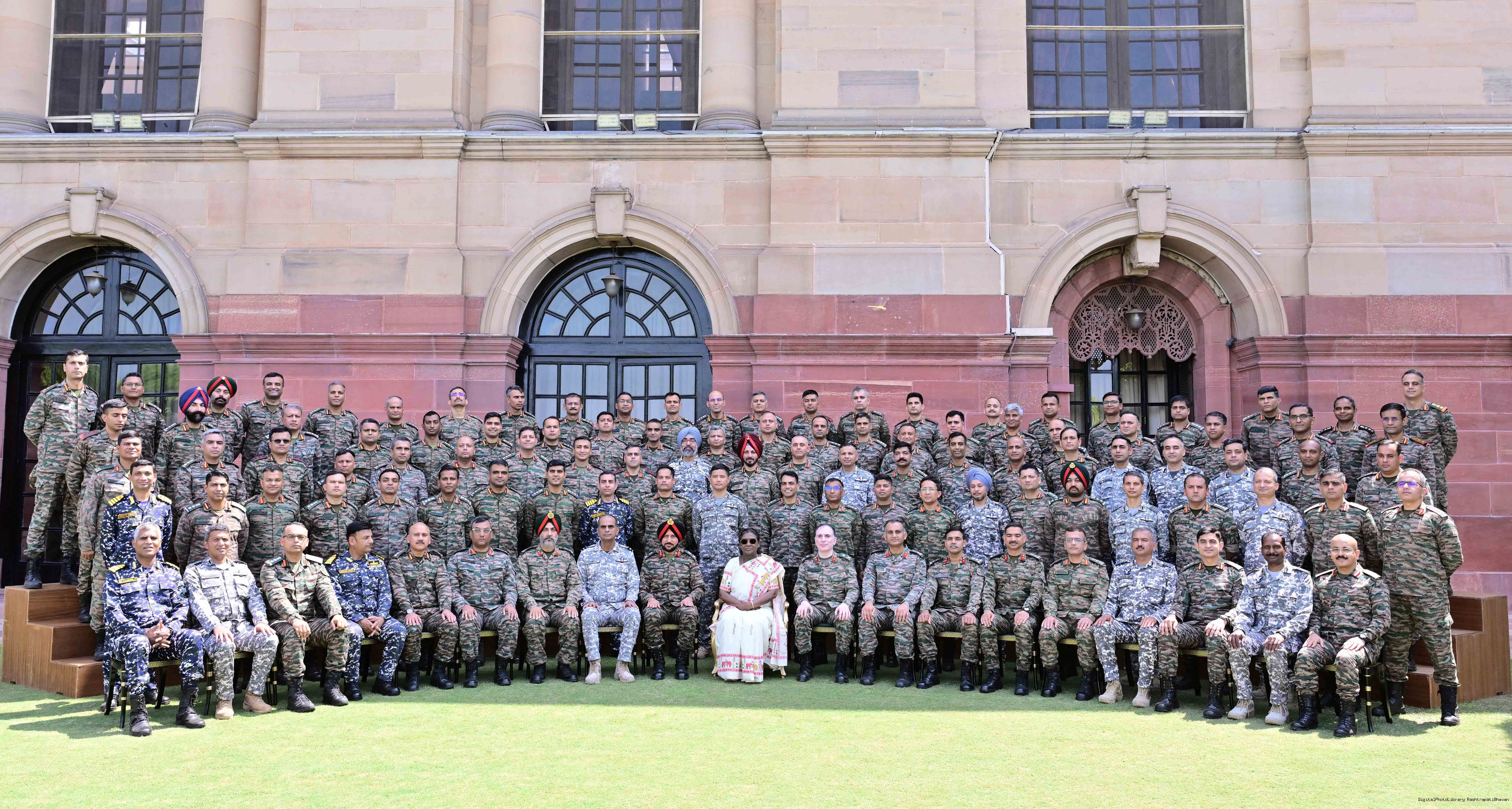| Caption: | The President of India, Smt Droupadi Murmu met and posing a group photographs students of Ekalavya Model Residential School (EMRS), 10 escorts and 4 NESTS officials at Rashtrapati Bhavan on September 12, 2025. |