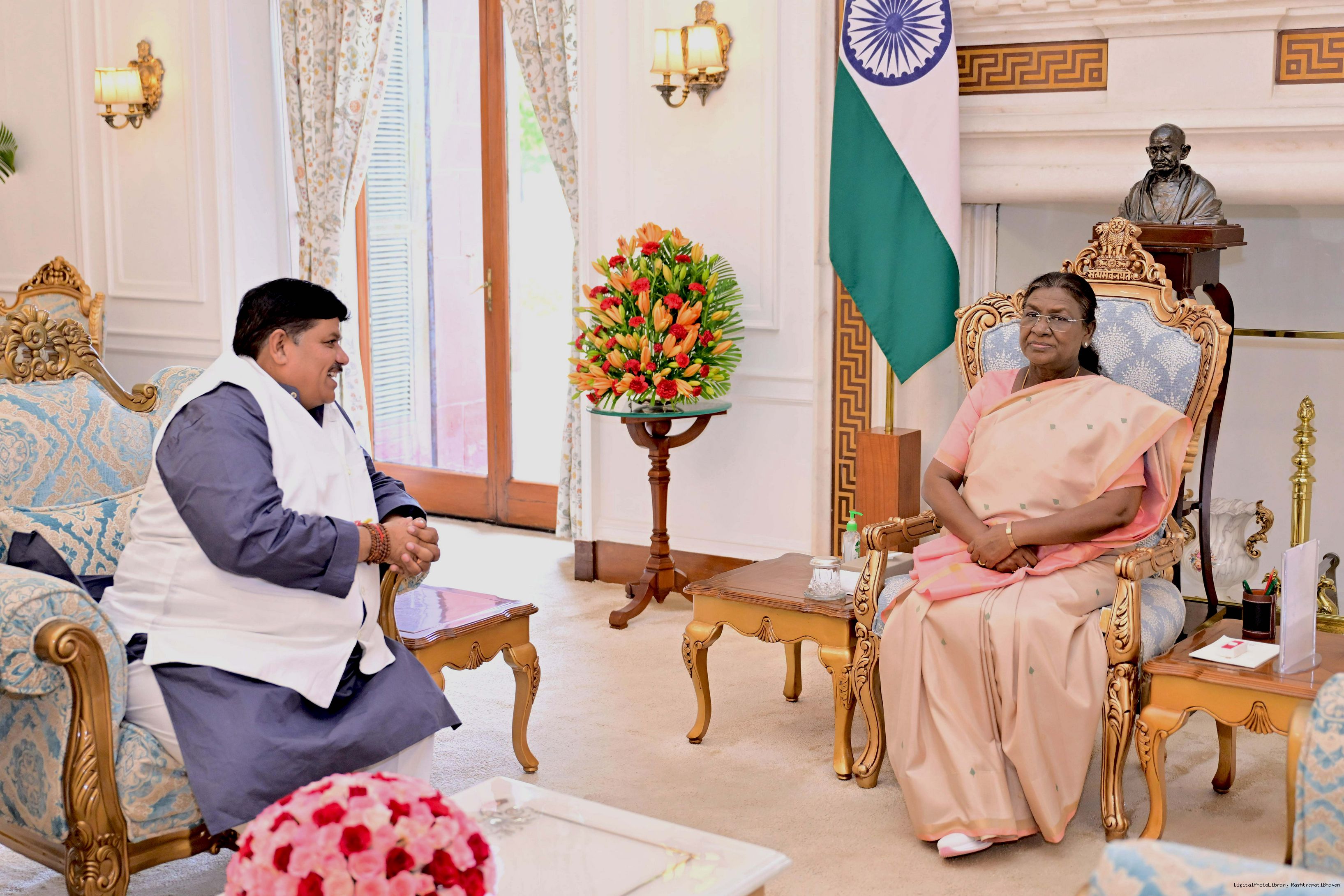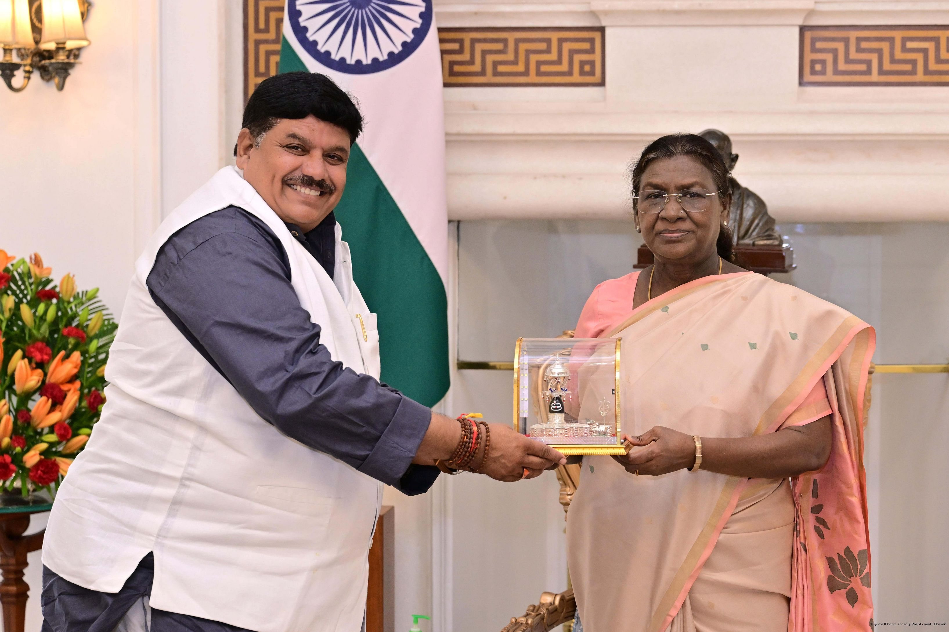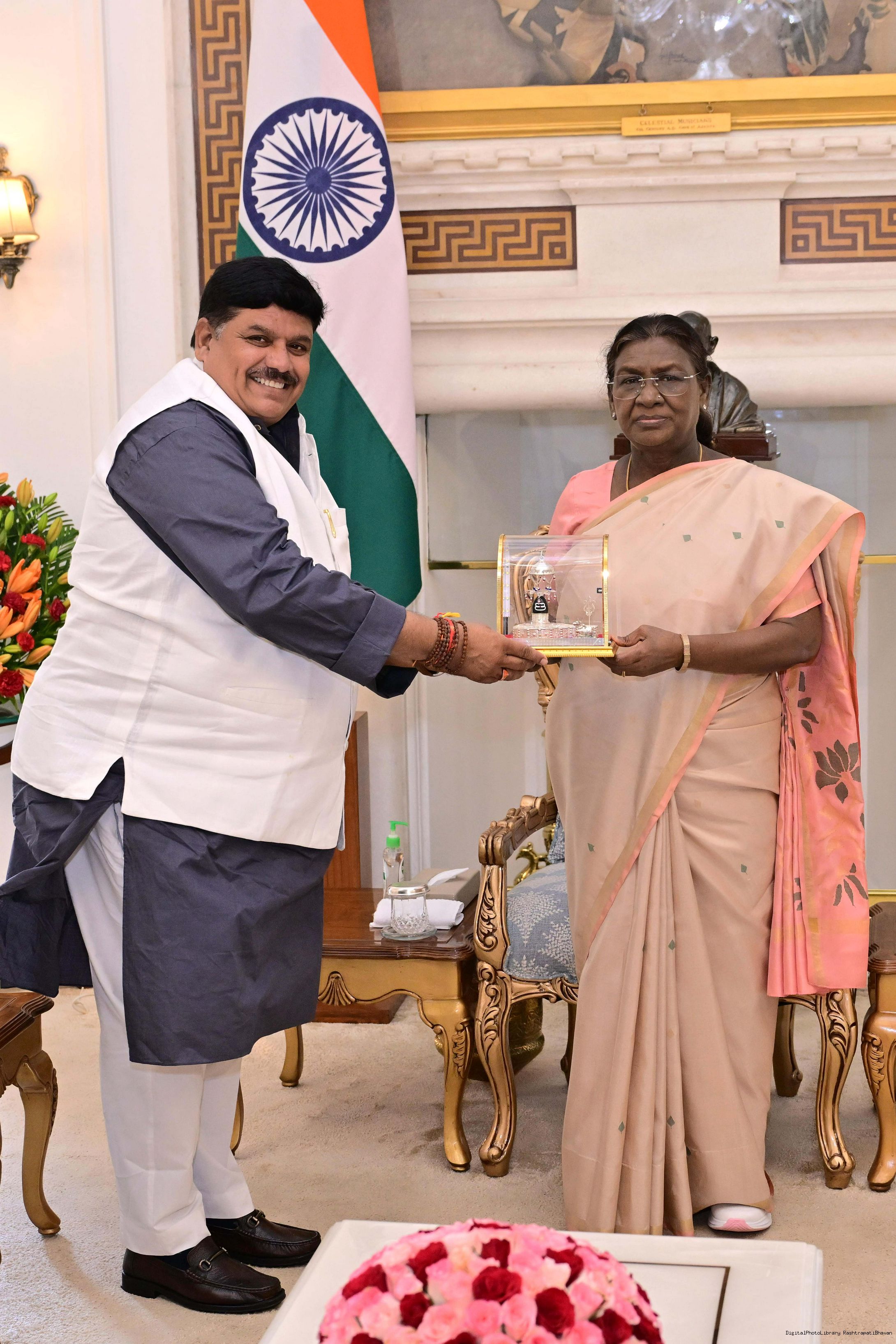 | Caption: | Shri Anil Firojiya, MP (LS) from Ujjain, MP along with wife Smt. Sandhya Firojiya meeting with the President of India, Smt. Droupadi Murmu at Rashtrapati Bhavan on September 15, 2025. |