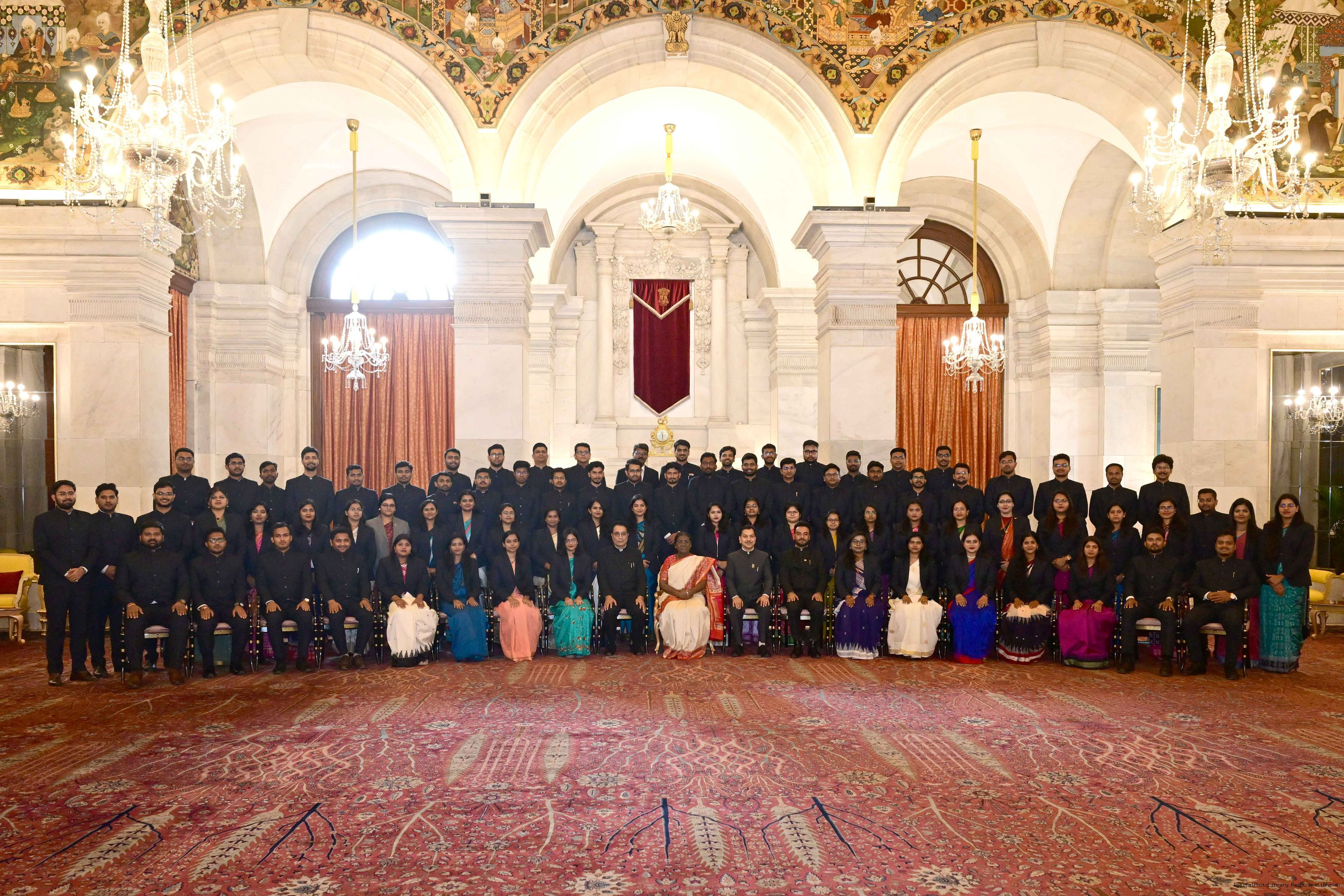 | Caption: | The President of India, Smt. Droupadi Murmu posing a group photograph with 79 Odisha Administrative Service (OAS) Officers selected for 2nd One-week training at NCGG at Rashtrapati Bhavan on September 19, 2025. |