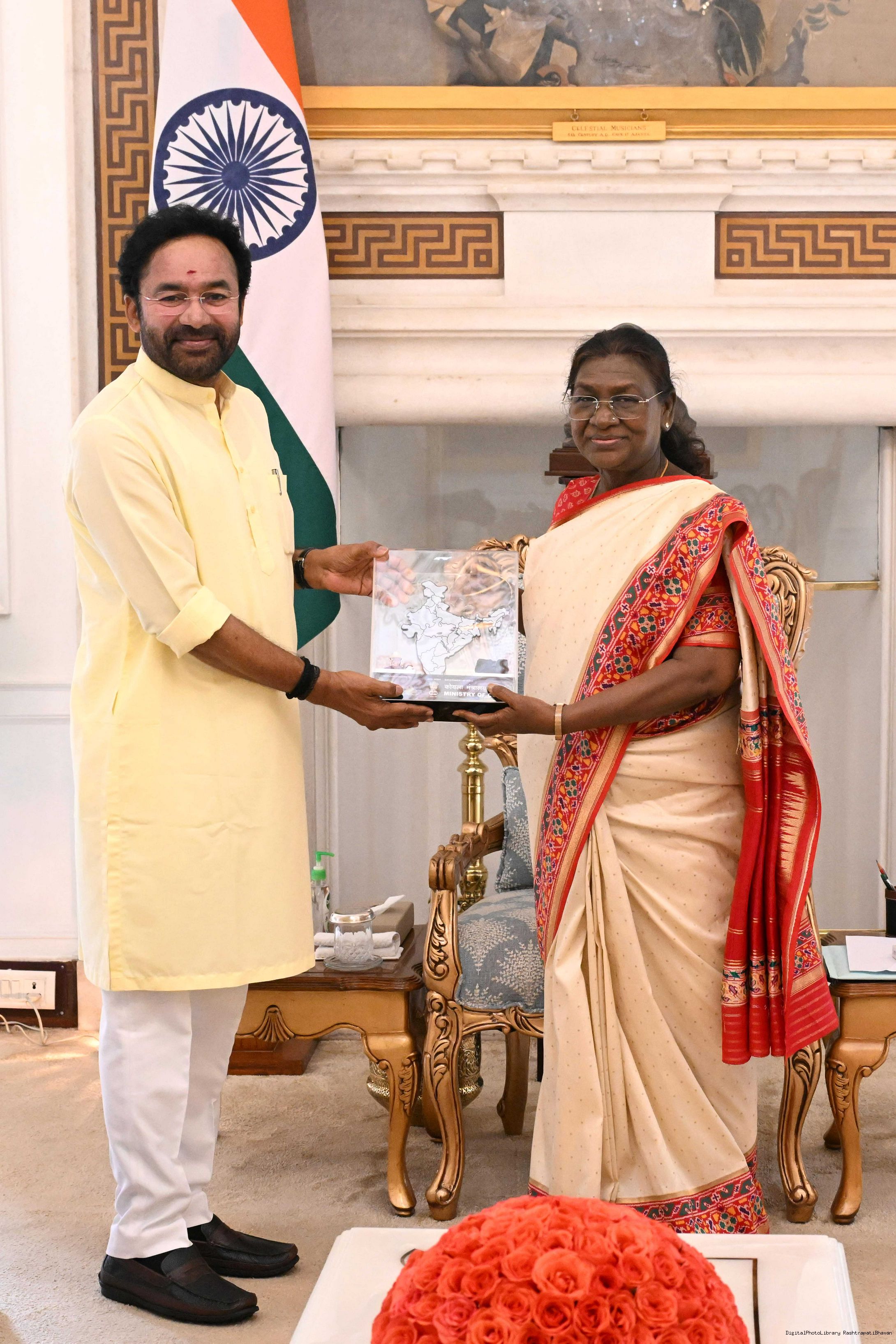 | Caption: | Shri G. Kishan Reddy, Minister of Coal and Mines meeting with the President of India, Smt Droupadi Murmu, at Rashtrapati Bhavan on September 19, 2025. |