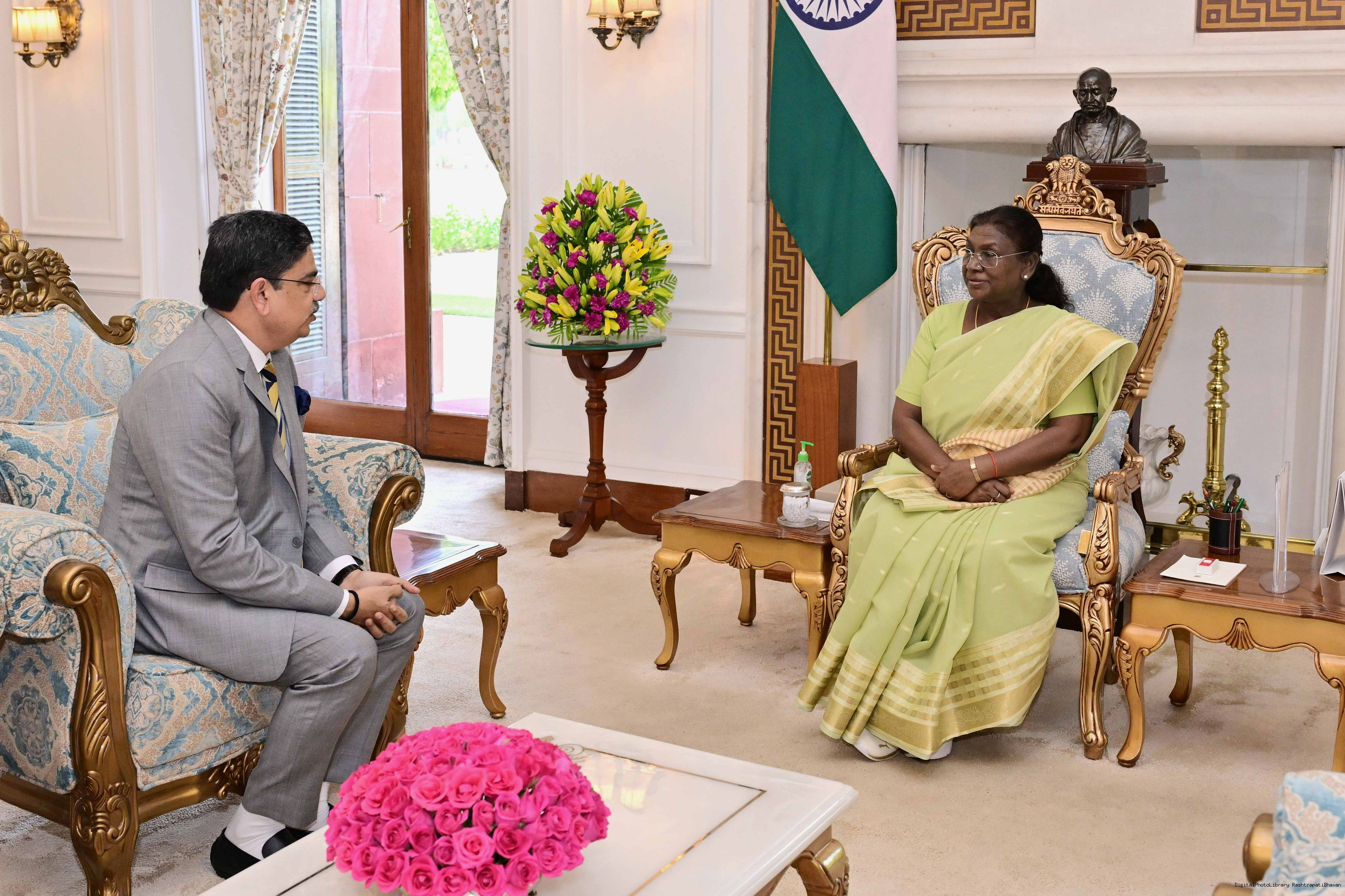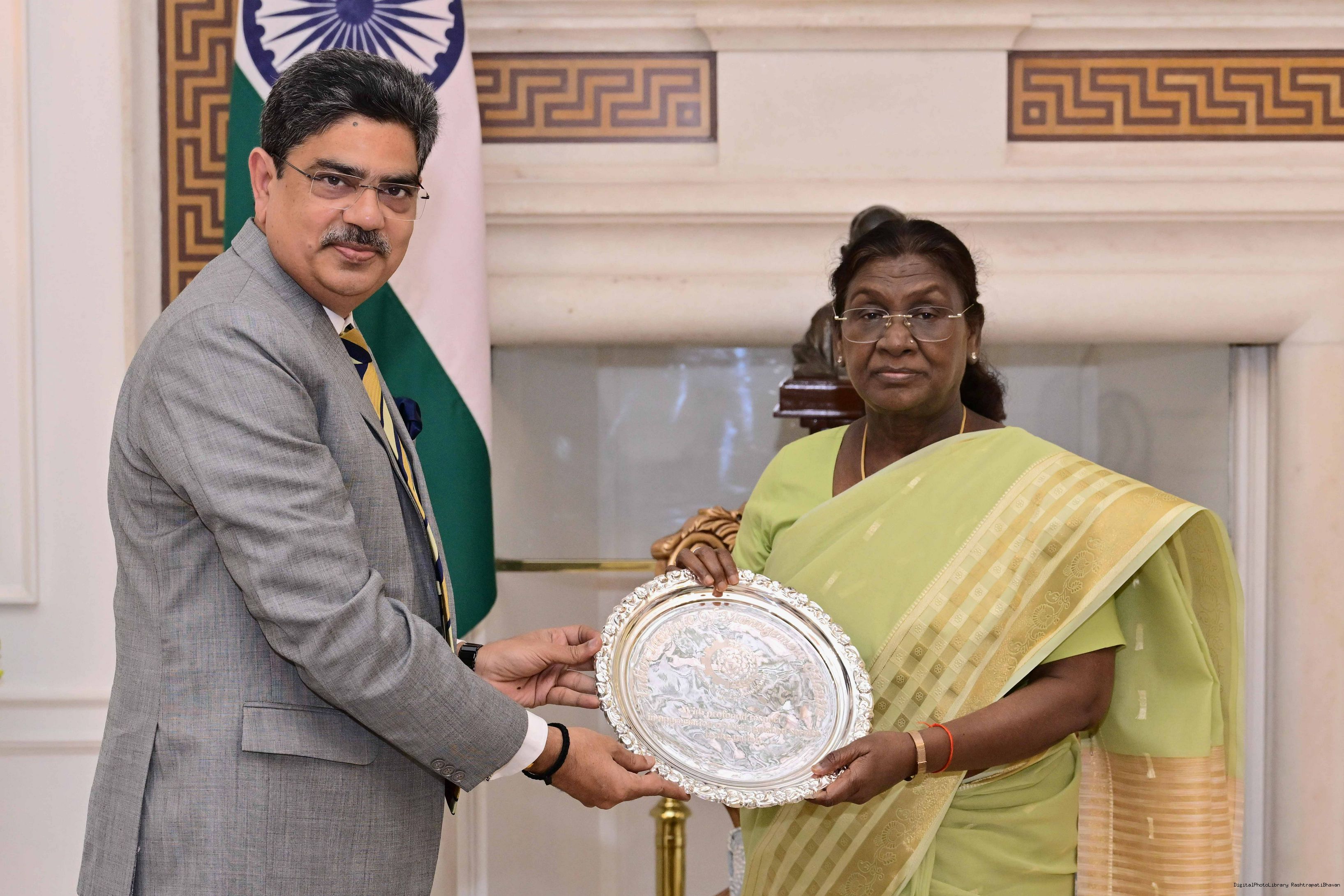 Prof. Alok Kumar Rai, Director, IIM, Calcutta meeting with the President of India, Smt Droupadi Murmu, at Rashtrapati Bhavan on September 22, 2025.