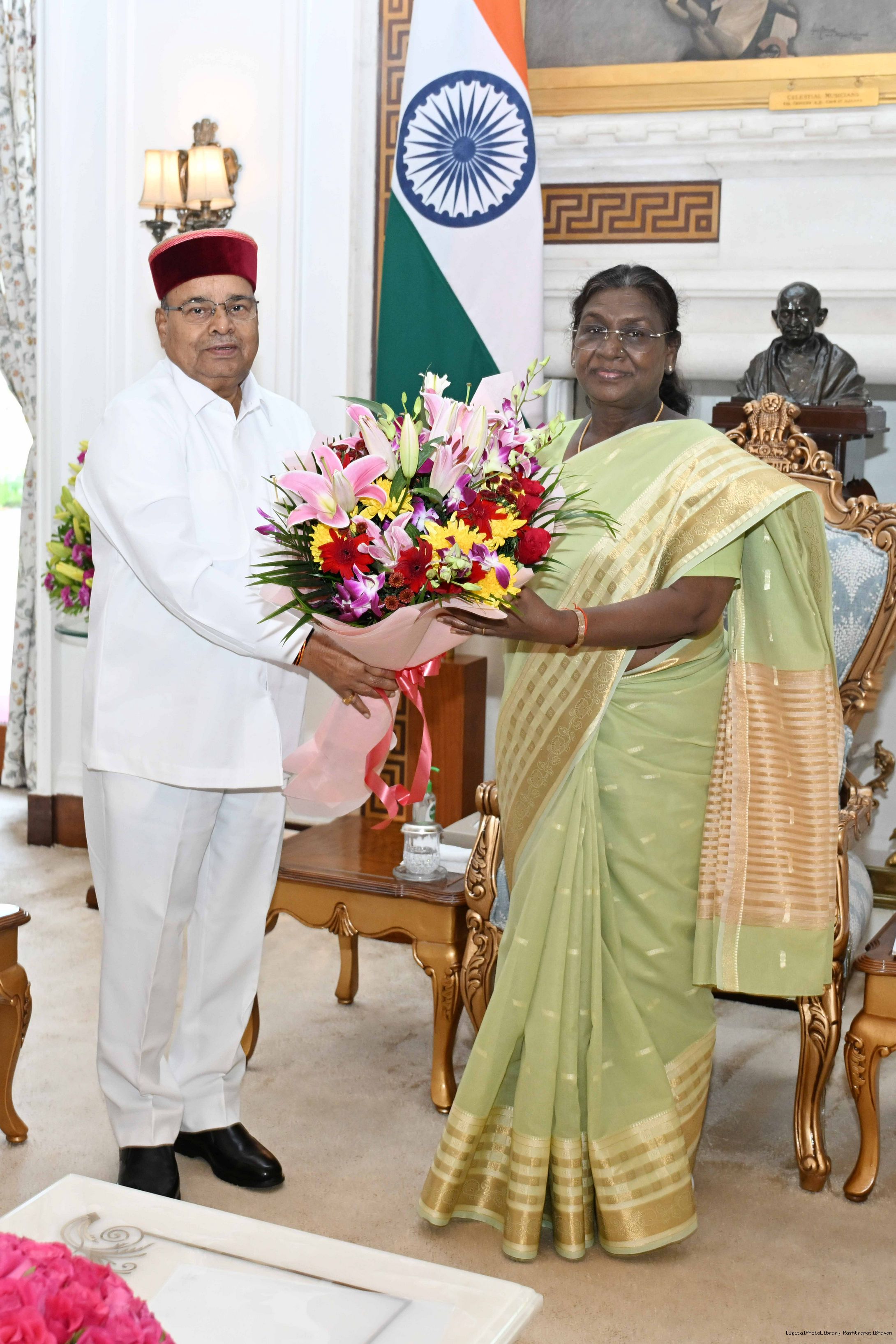 | Caption: | The Governor of Karnataka, Shri Thaawar Chand Gehlot called on the President of India, Smt. Droupadi Murmu at Rashtrapati Bhavan on September 22, 2025. |