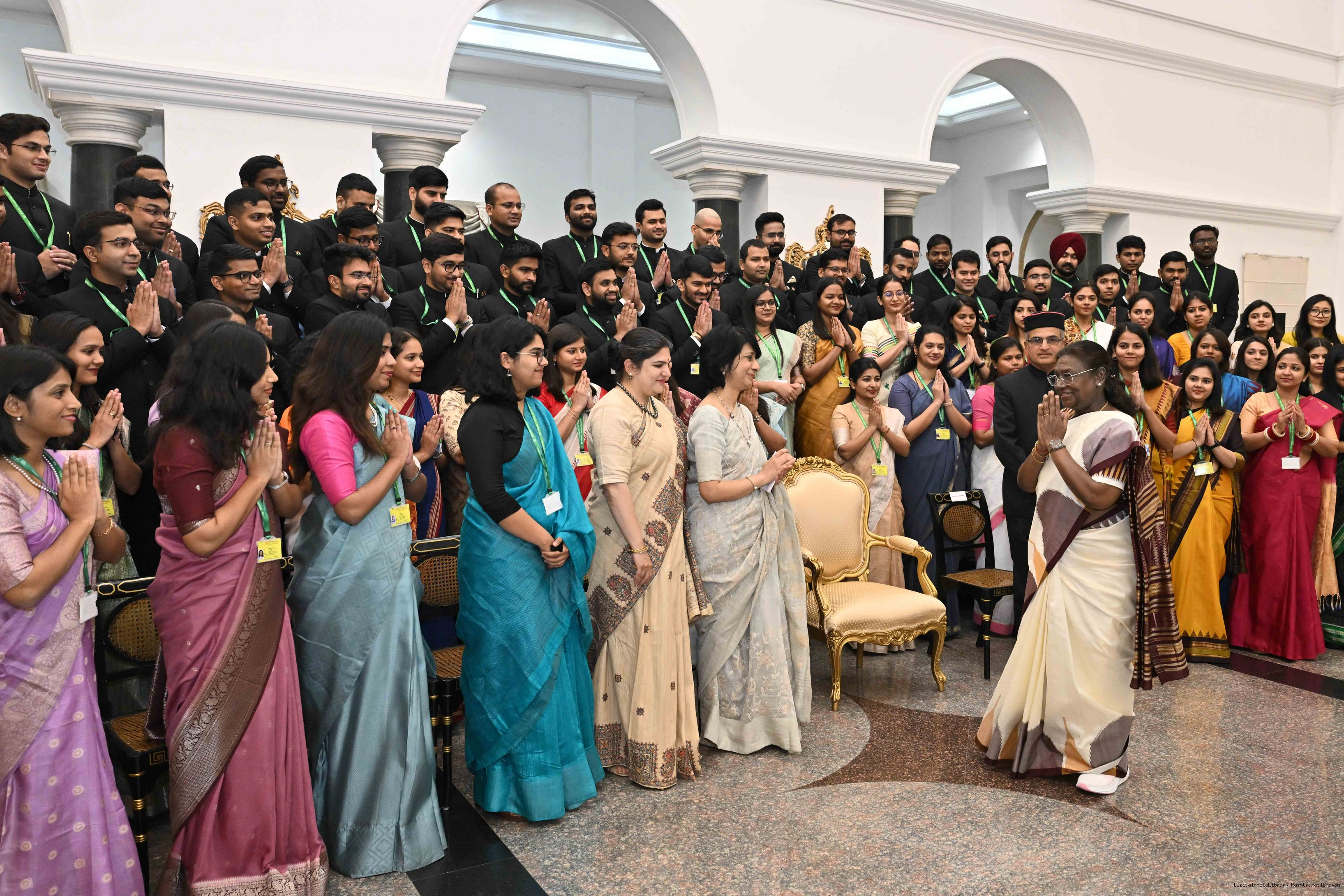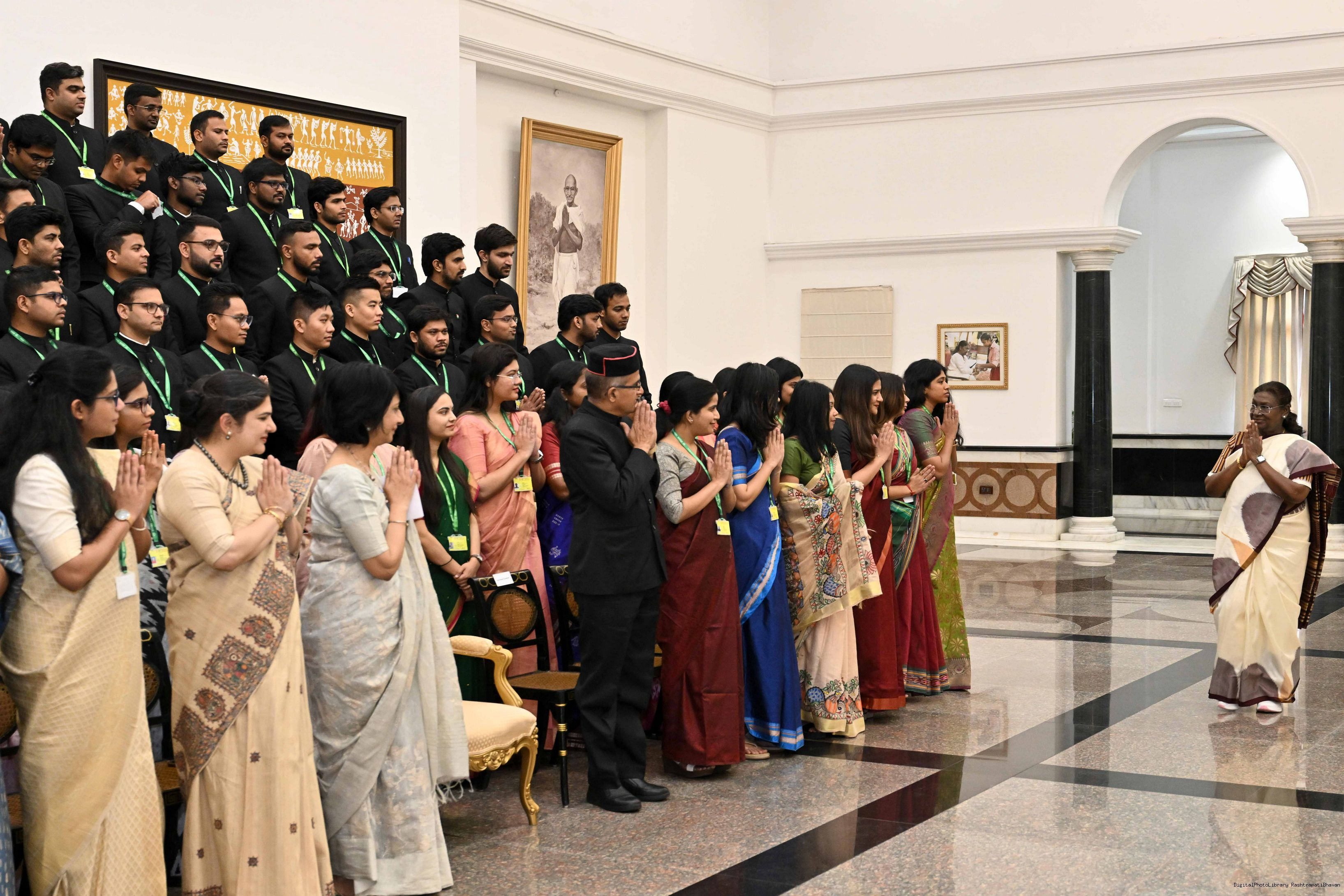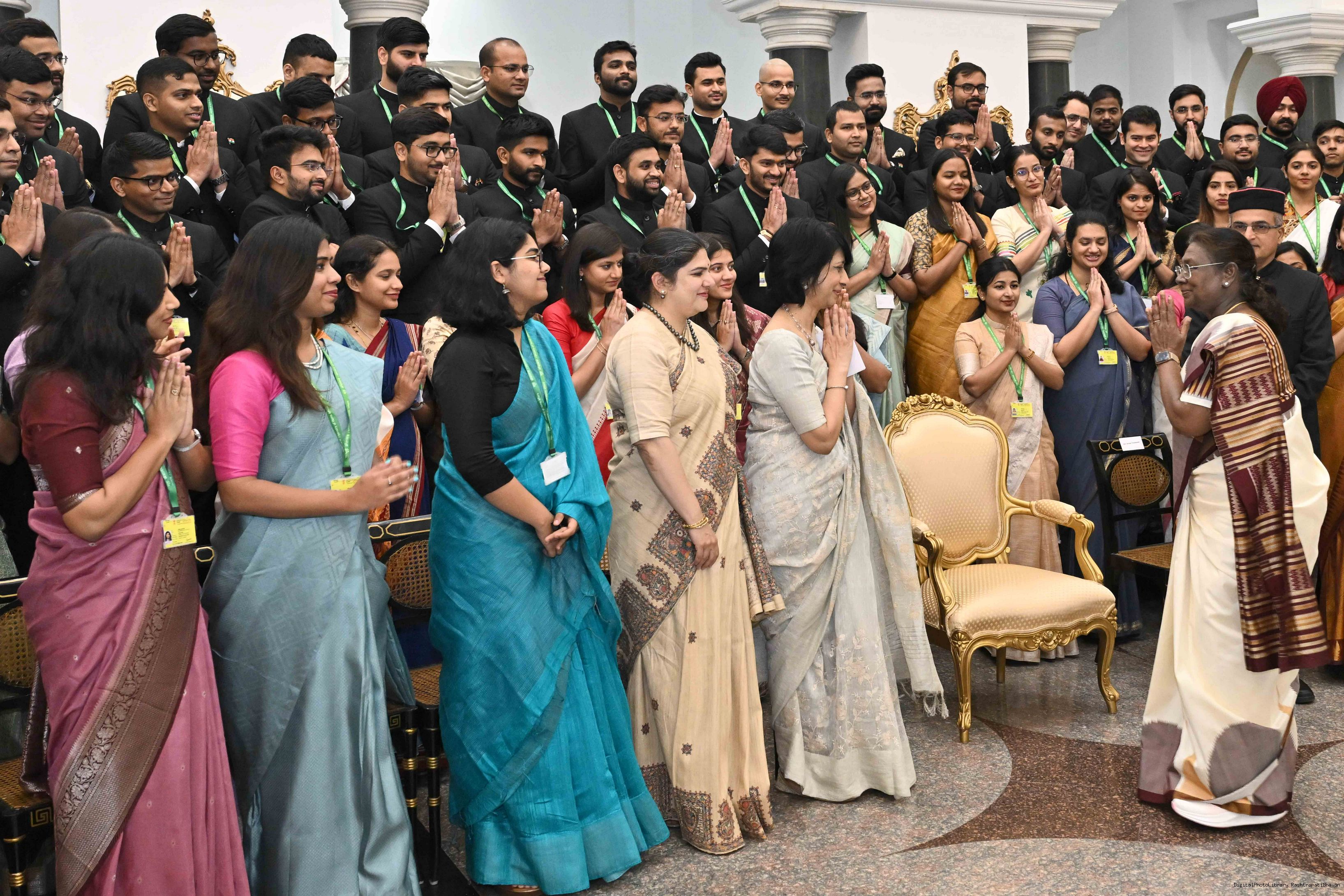 | Caption: | A group of IAS officers from the 2023 batch, currently serving as Assistant Secretaries in various Union Ministries and Departments, called on the President of India, Smt. Droupadi Murmu, at the Rashtrapati Bhavan Cultural Centre on April 15, 2025. |