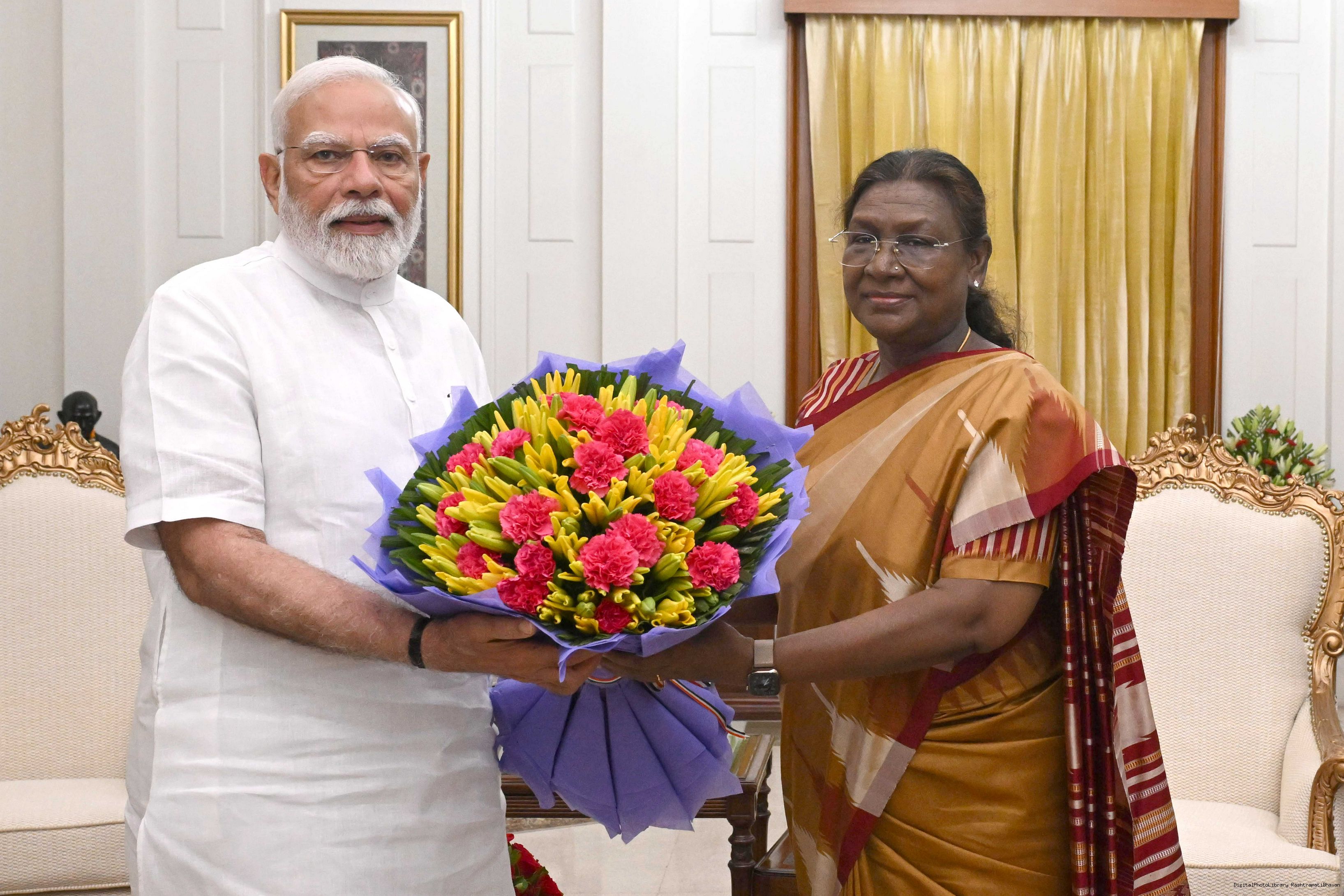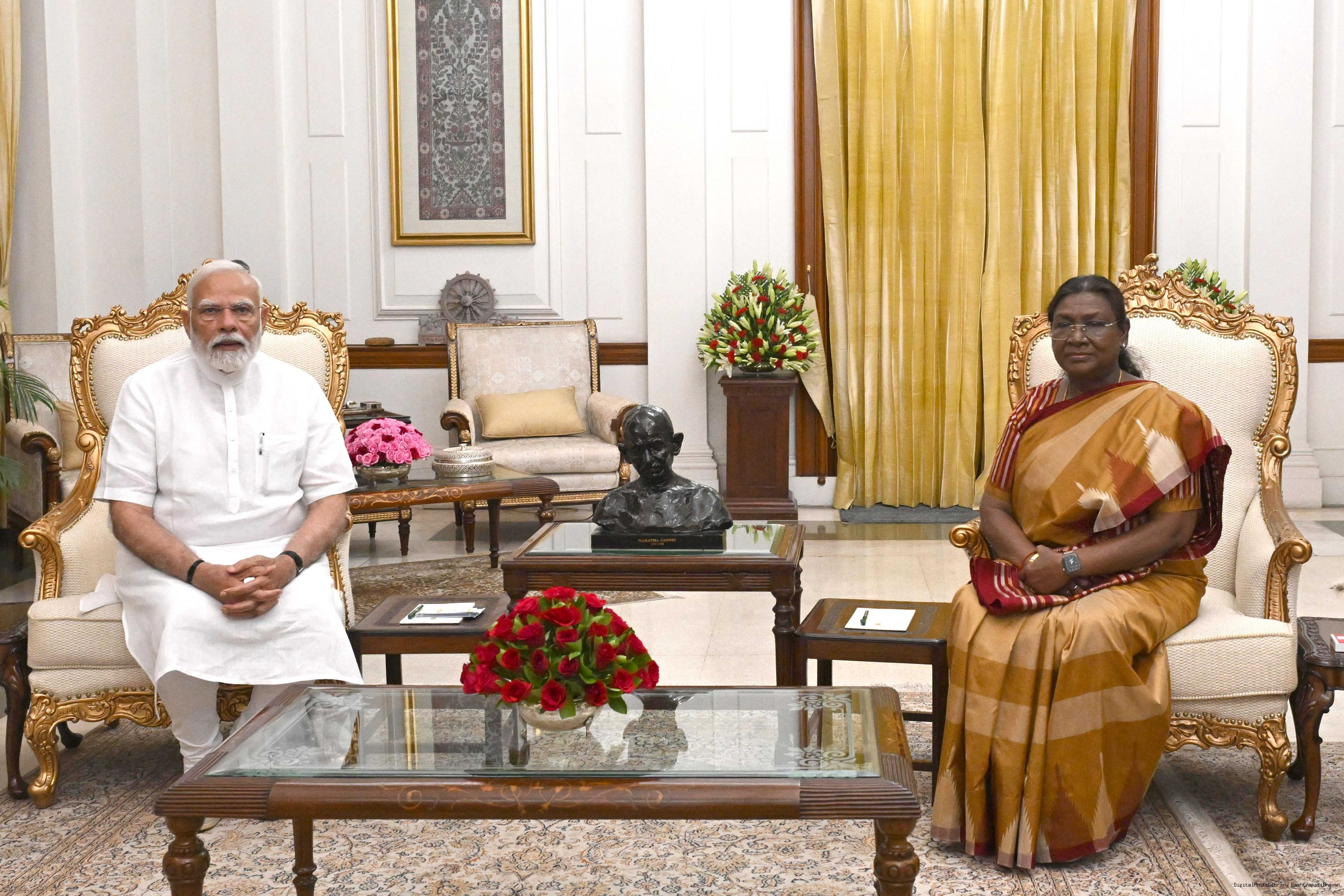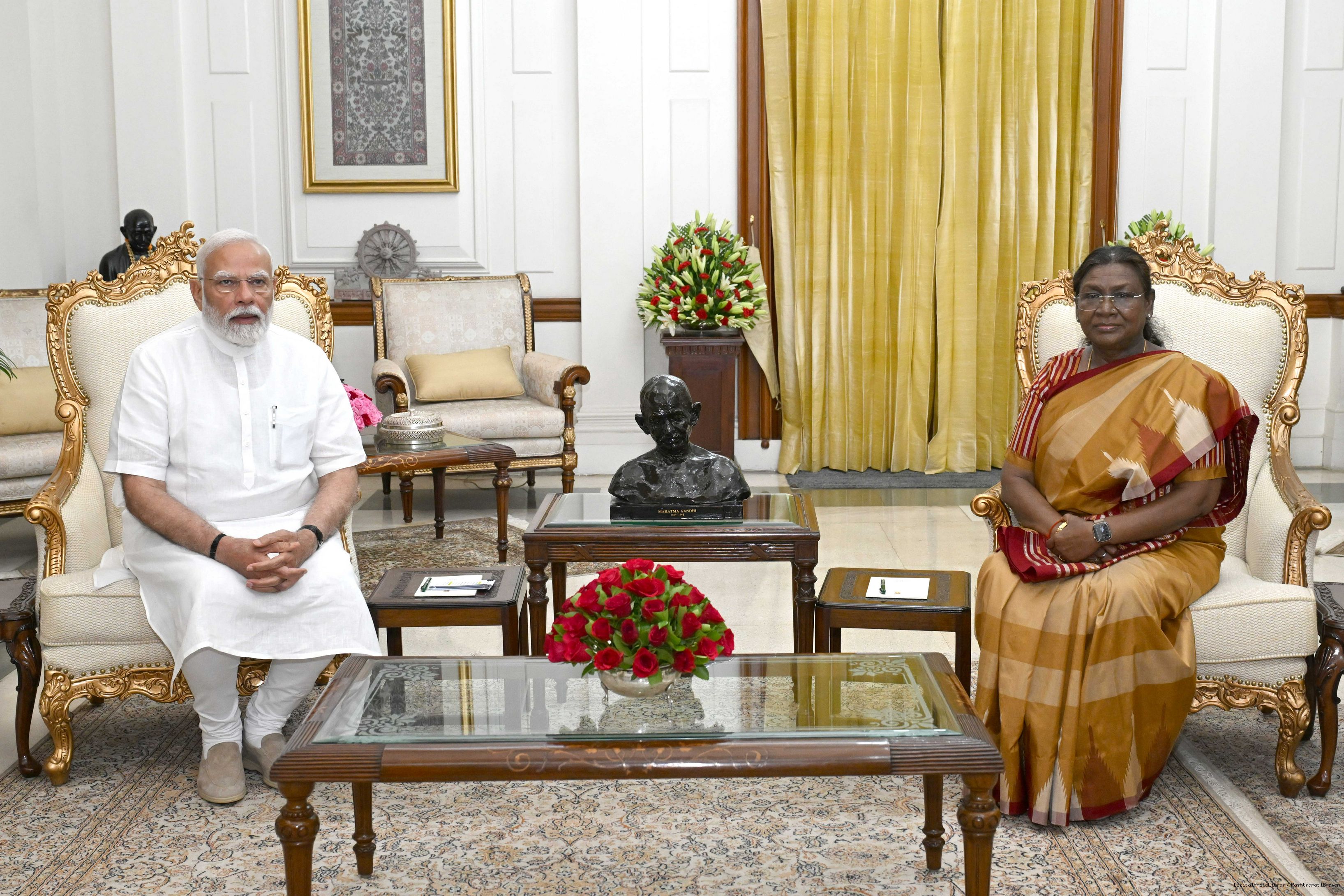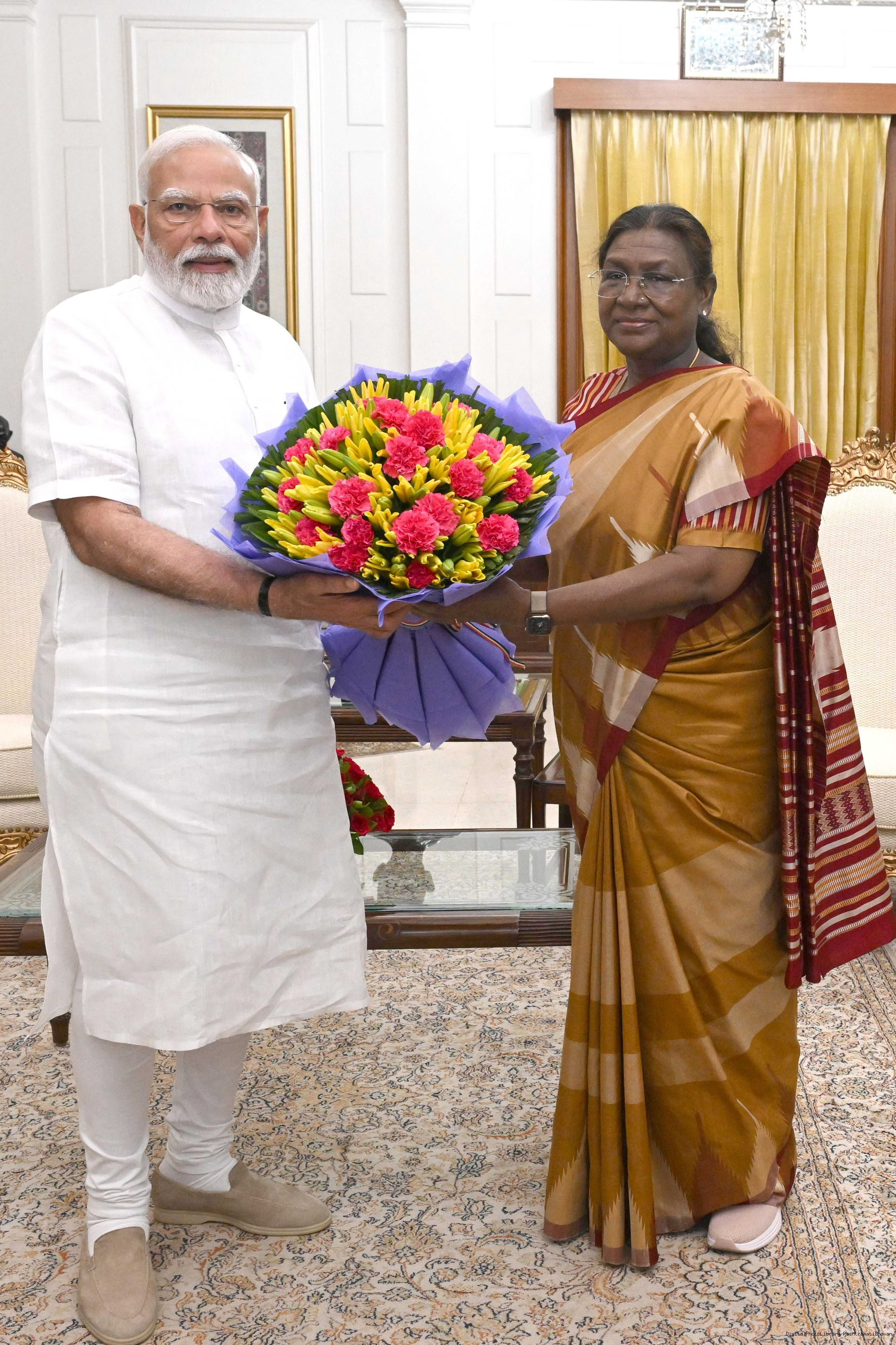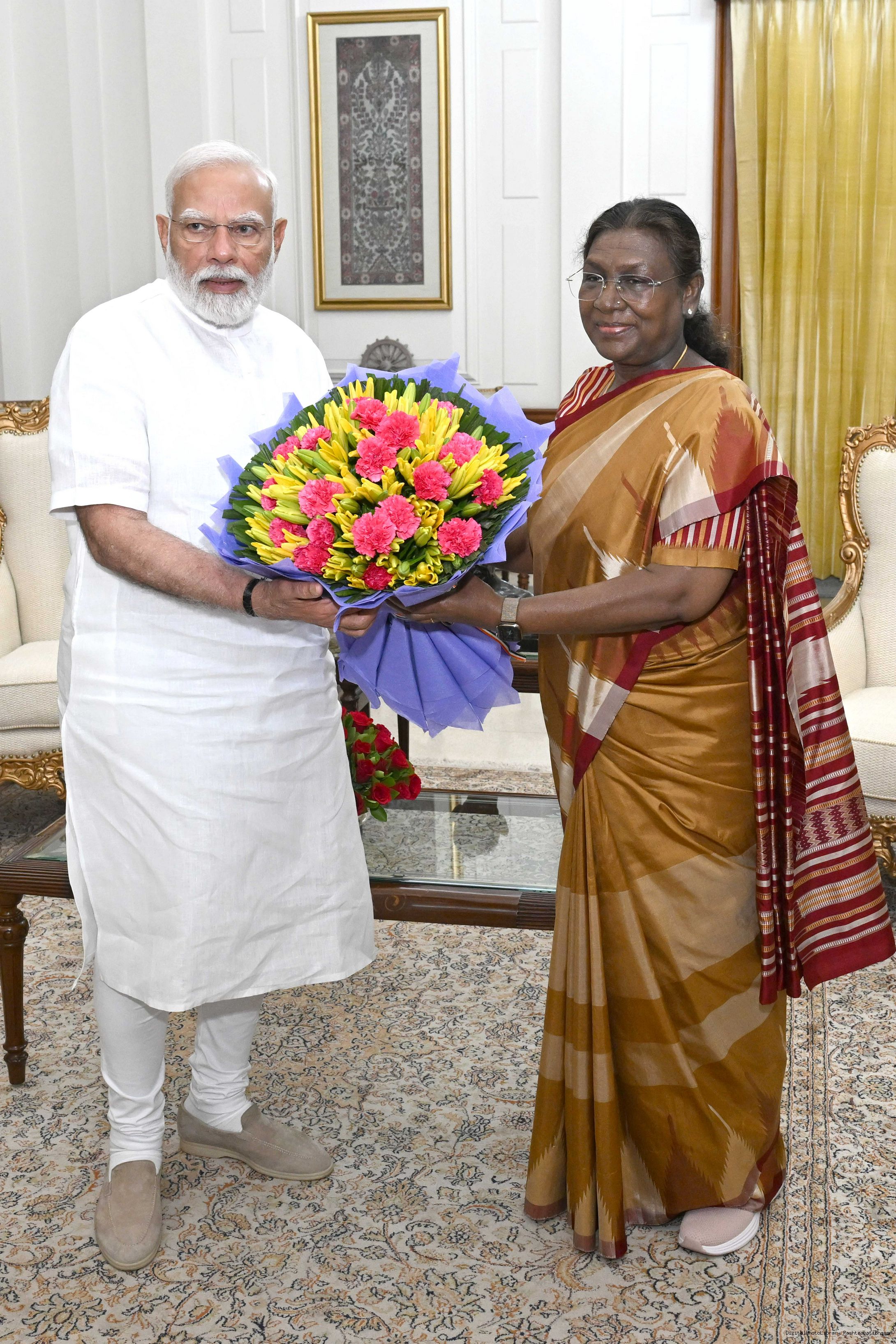 The Prime Minister of India, Shri Narendra Modi called on the President of India, Smt. Droupadi Murmu at Rashtrapati Bhavan on April 15, 2025.