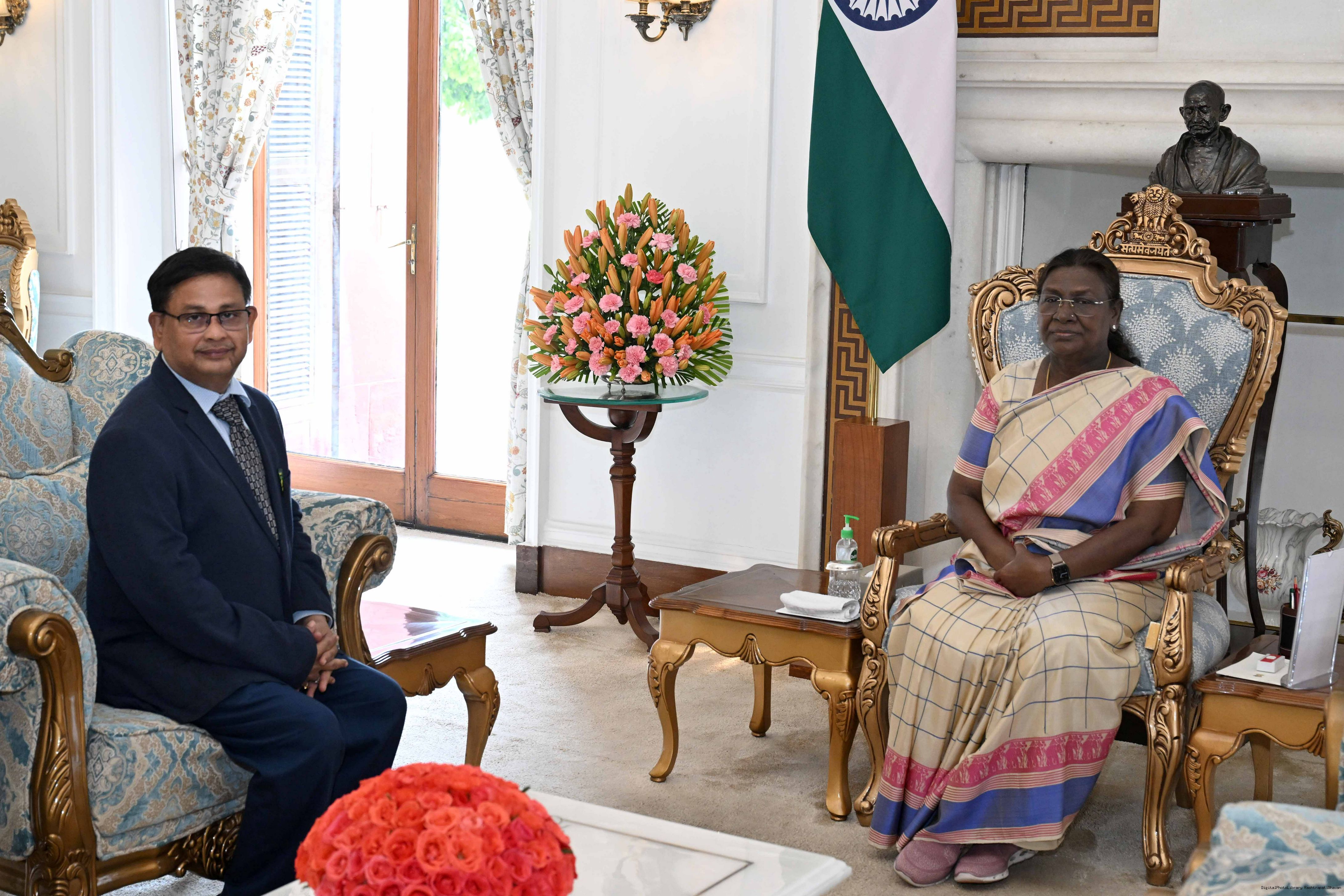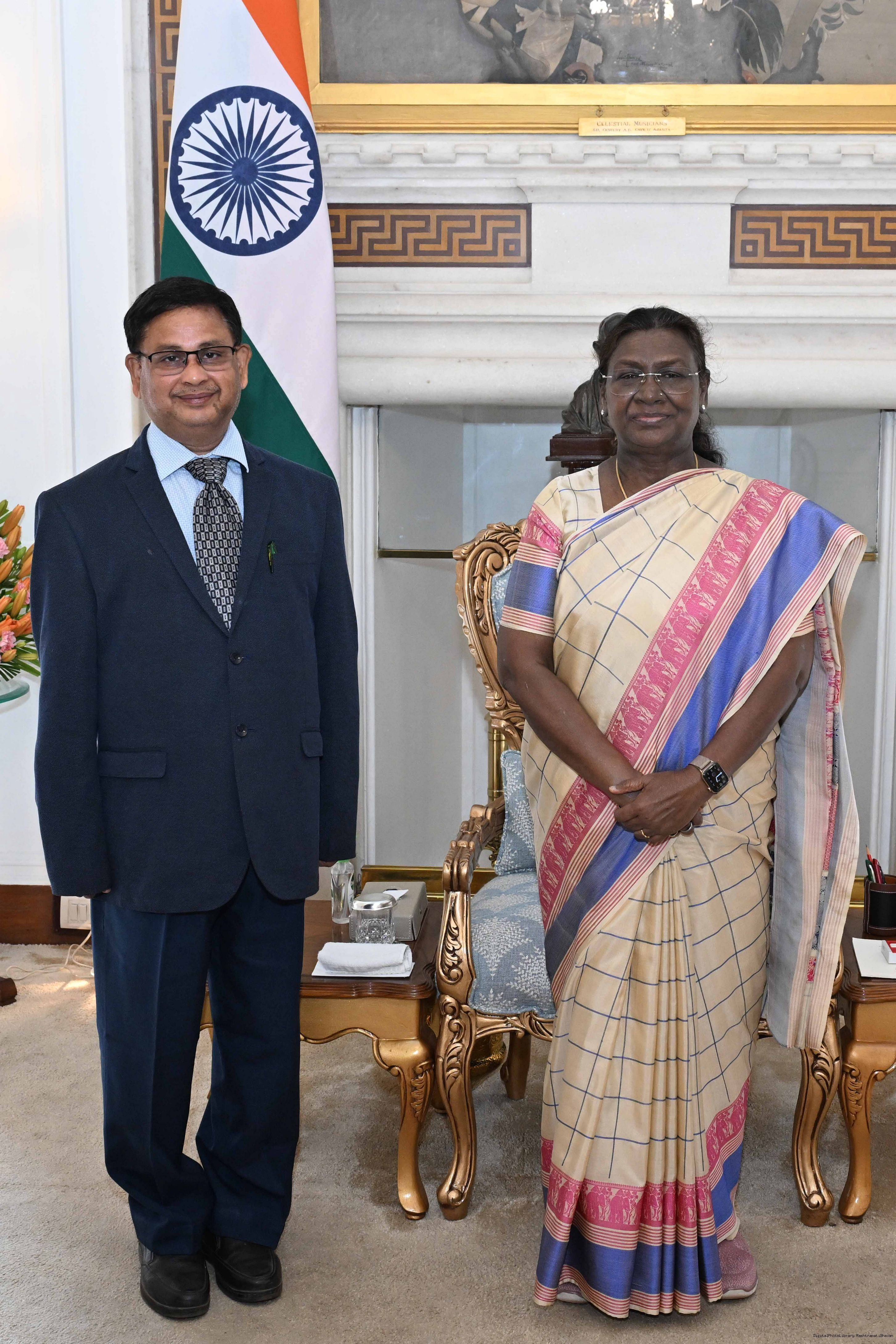 | Caption: | Shri A.K. Khatua, Chief Engineer, CPWD, Bhubaneswar, Odisha meeting with the President of India, Smt. Droupadi Murmu at Rashtrapati Bhavan on May 2, 2025. |