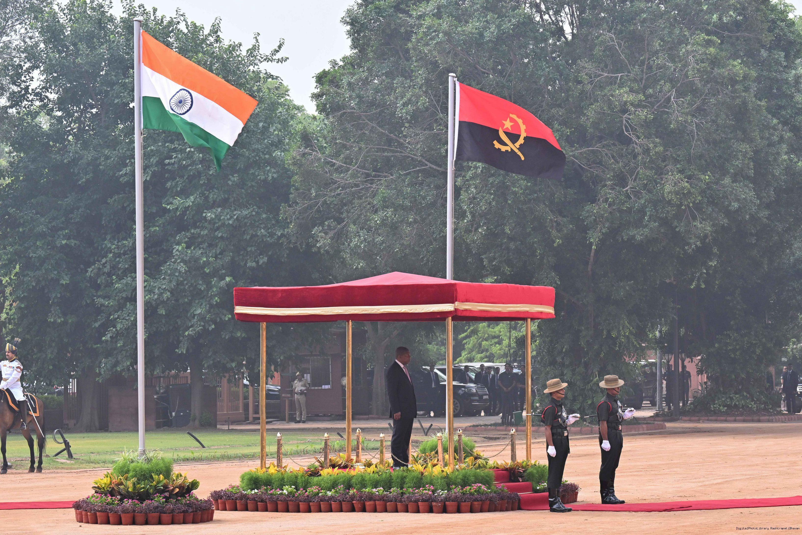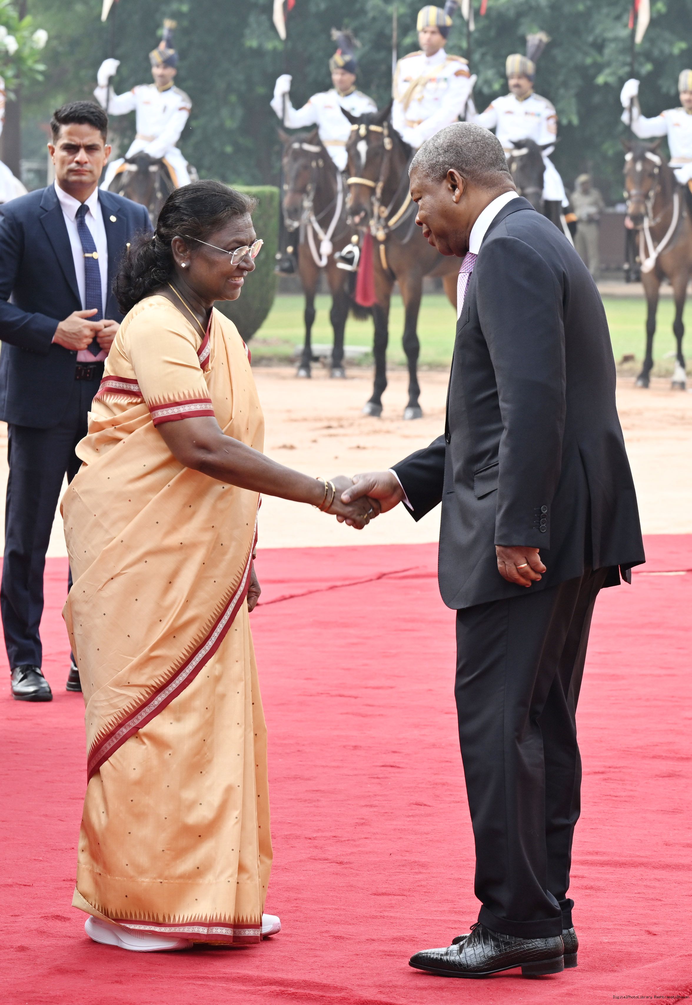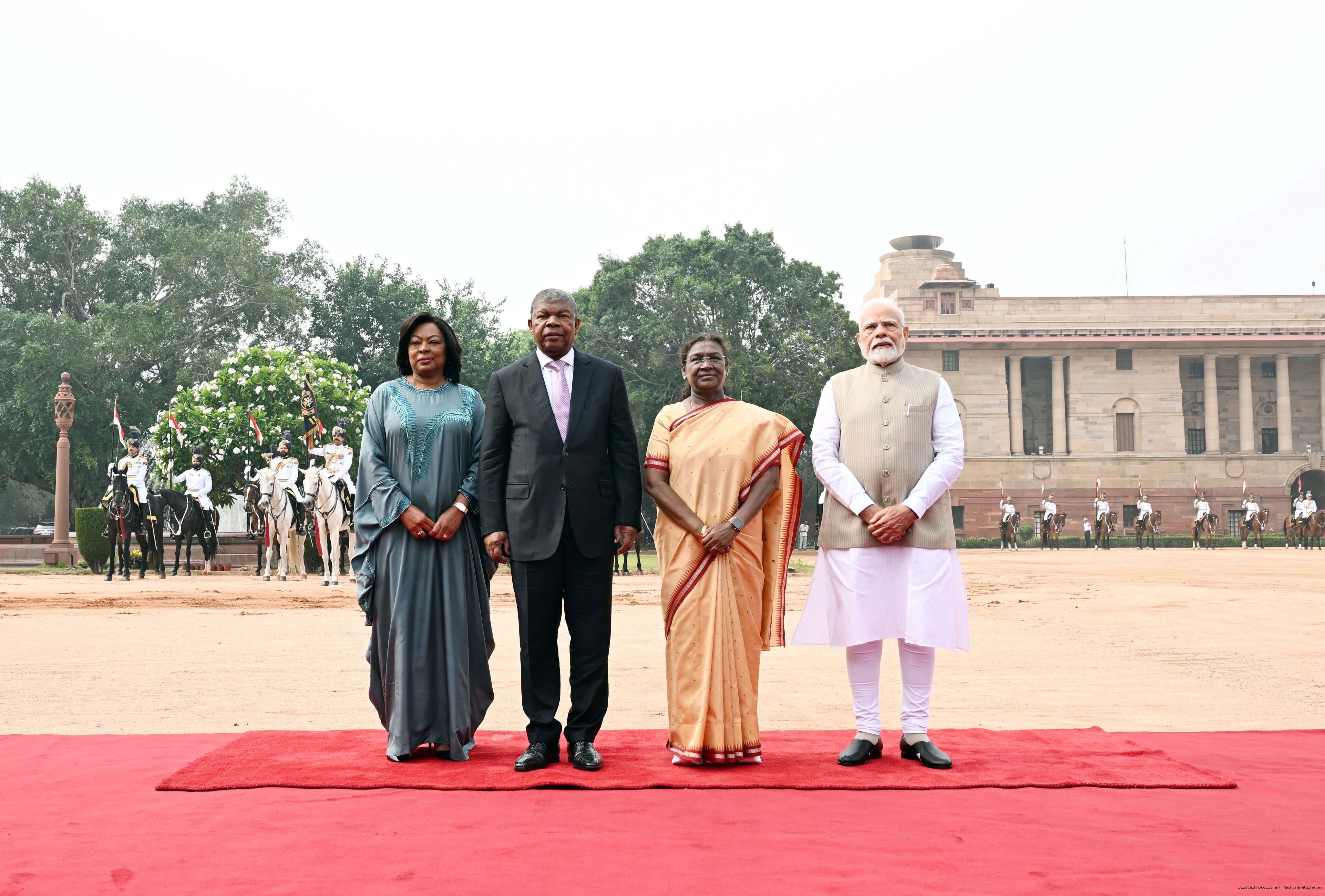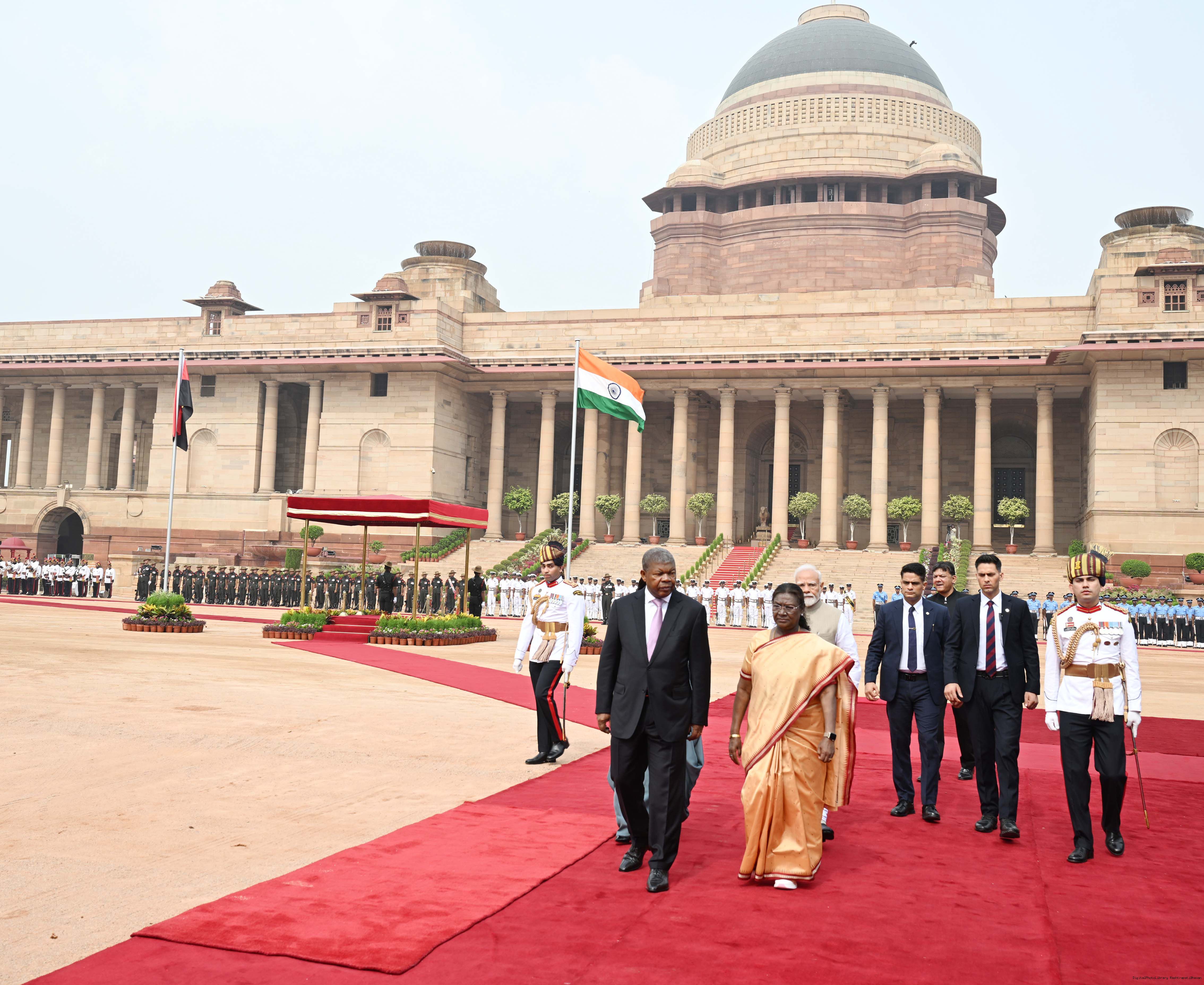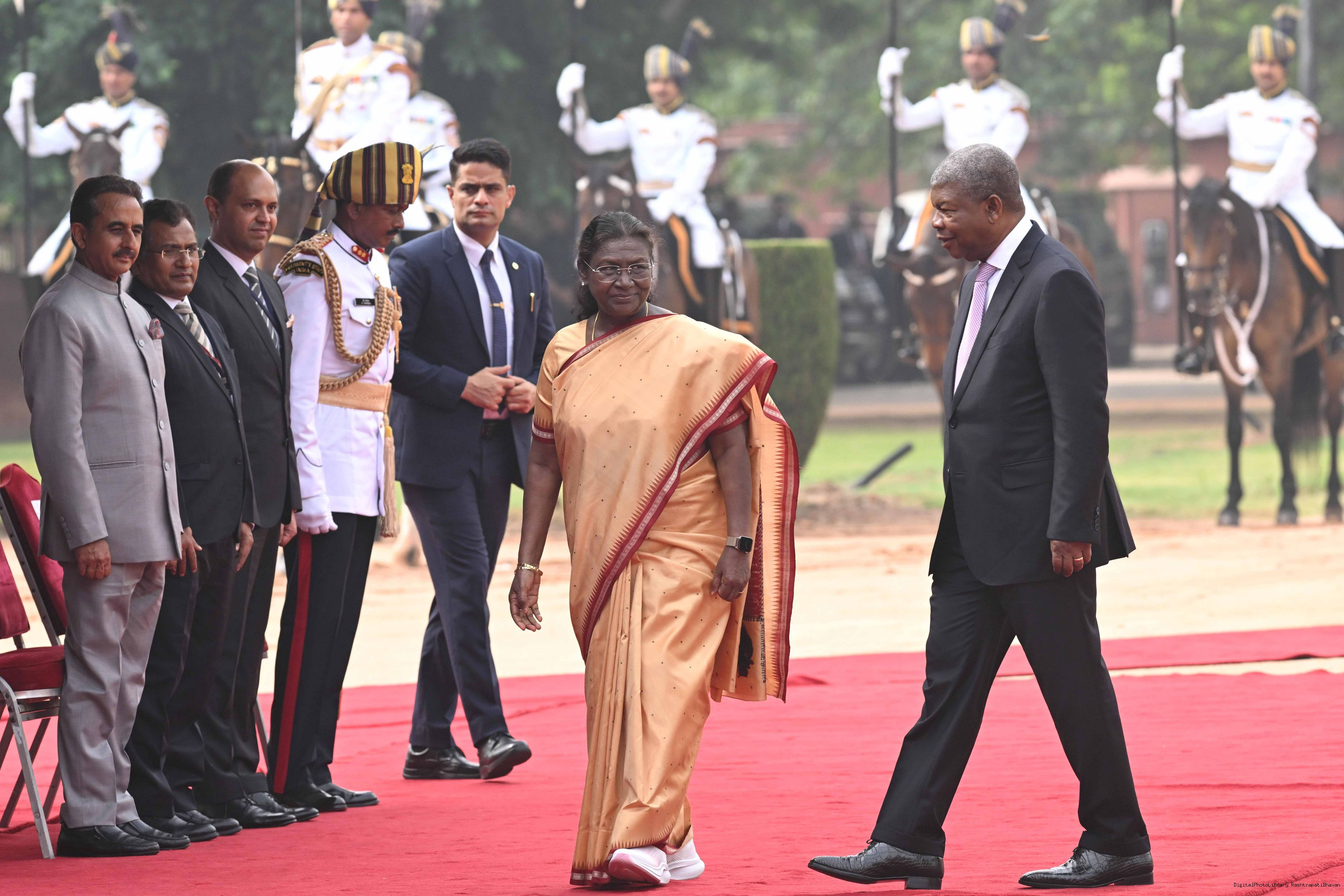 | Caption: | The President of India, Smt. Droupadi Murmu accorded a ceremonial welcome to H.E. Mr. Joeo Manuel Goncalves Lourenco, President of the Republic of Angola at Rashtrapati Bhavan on May 3, 2025. |