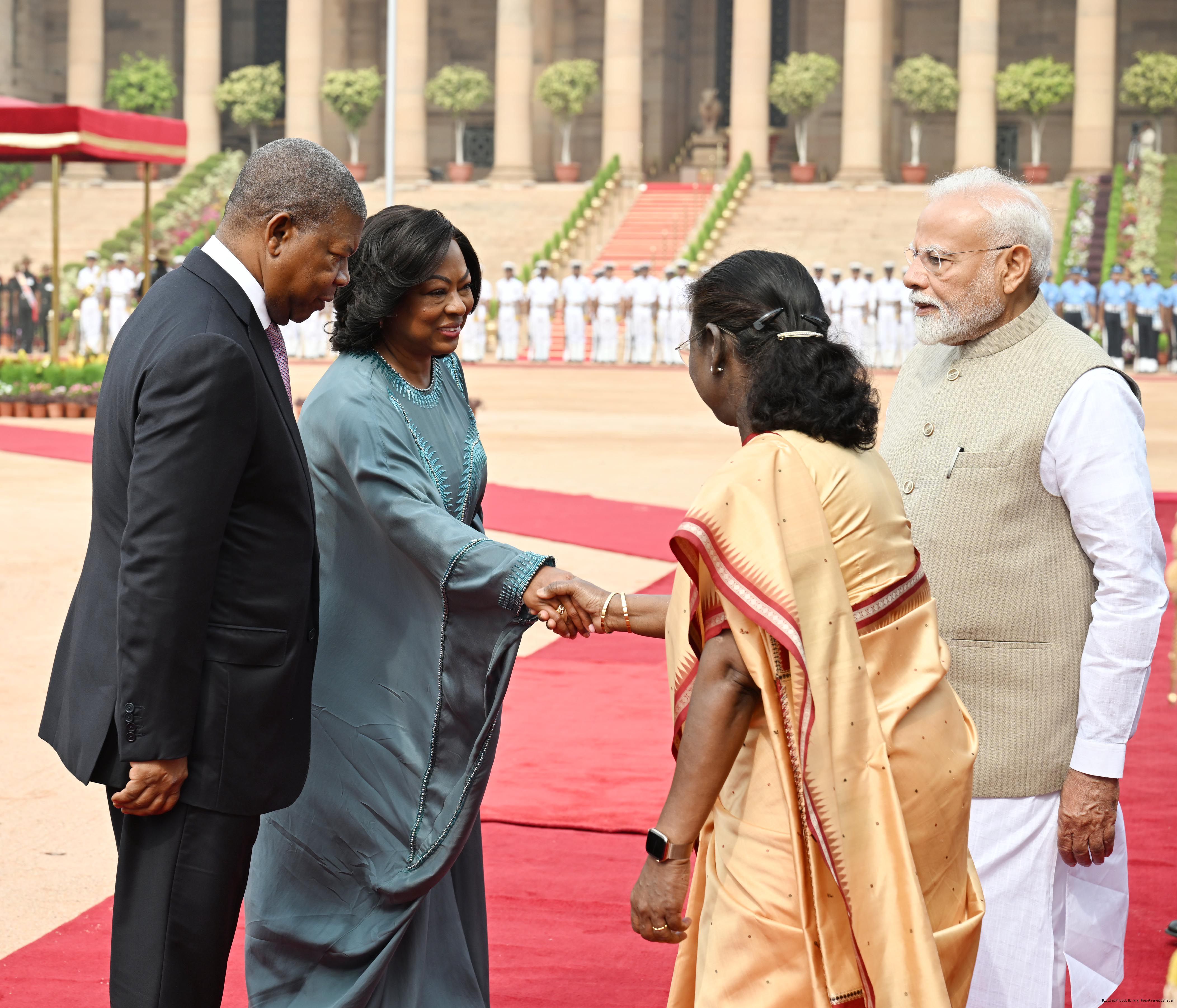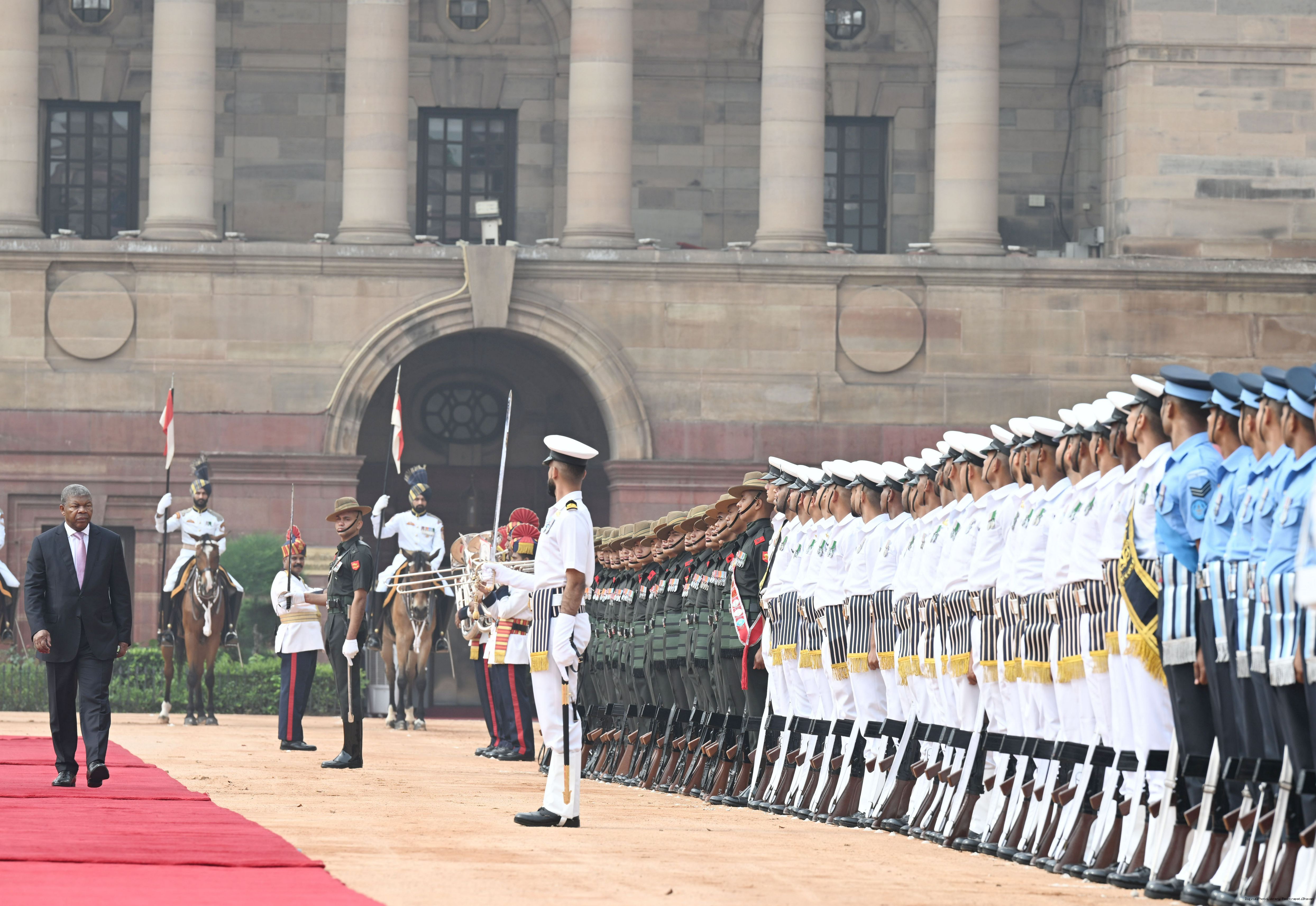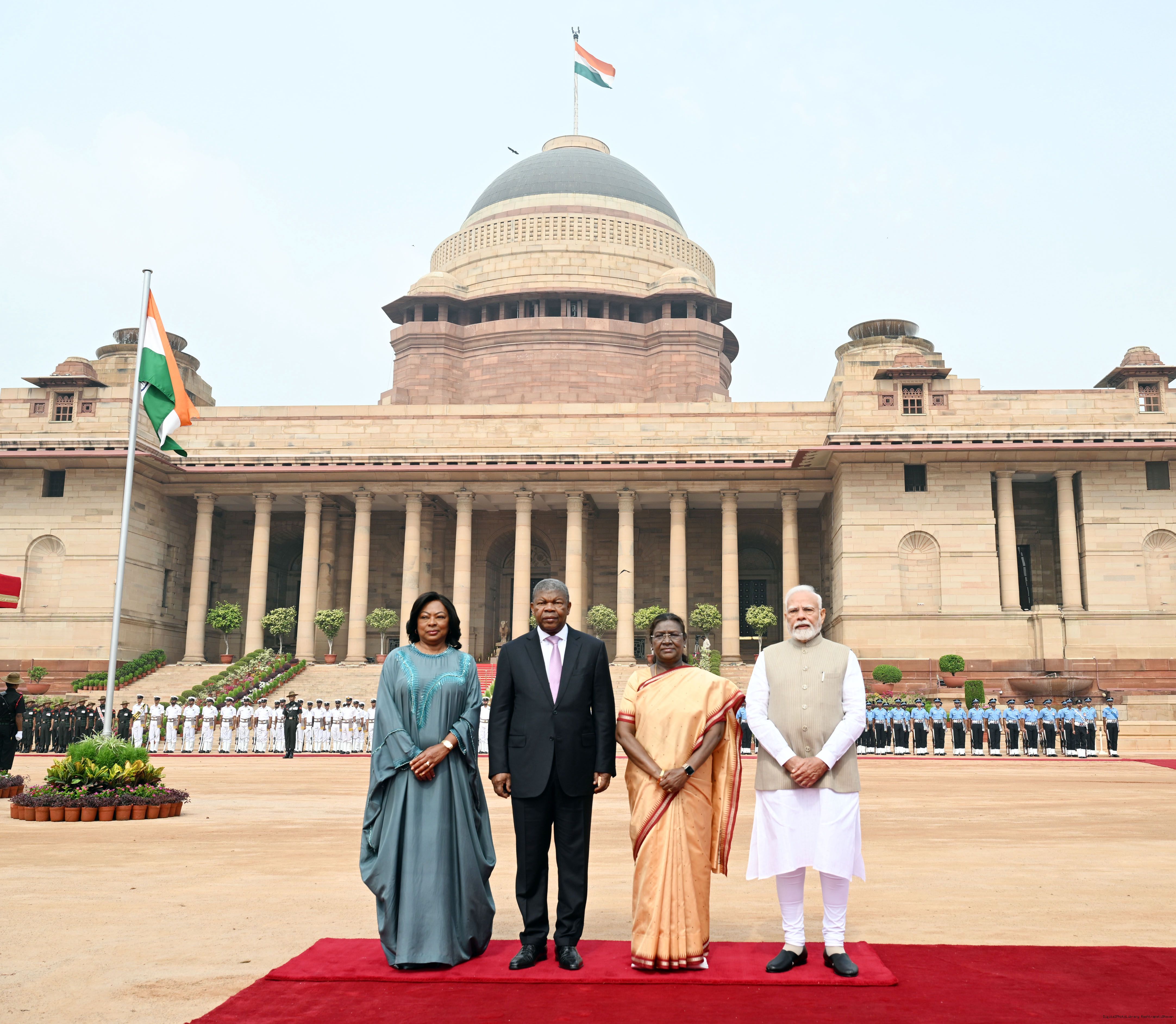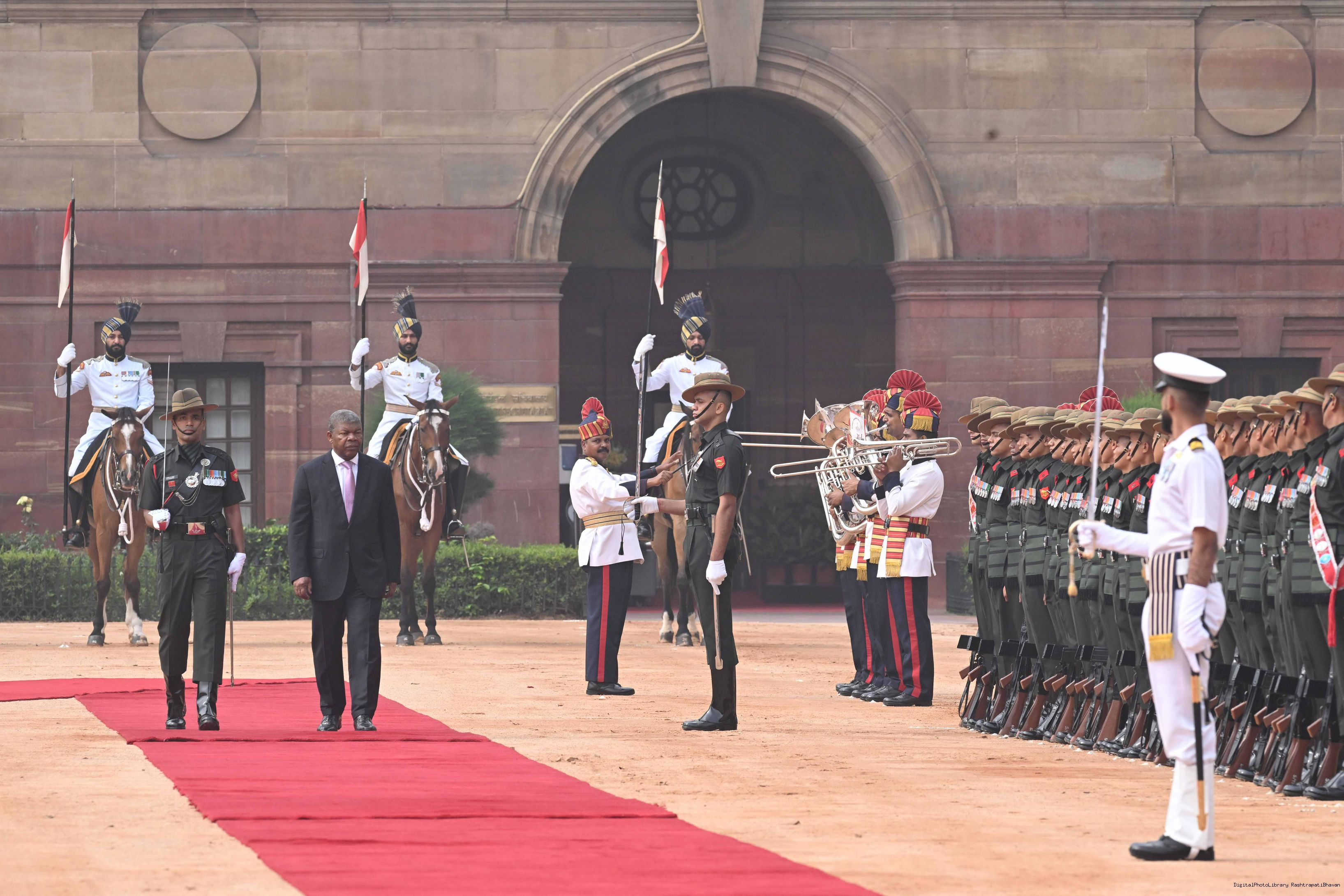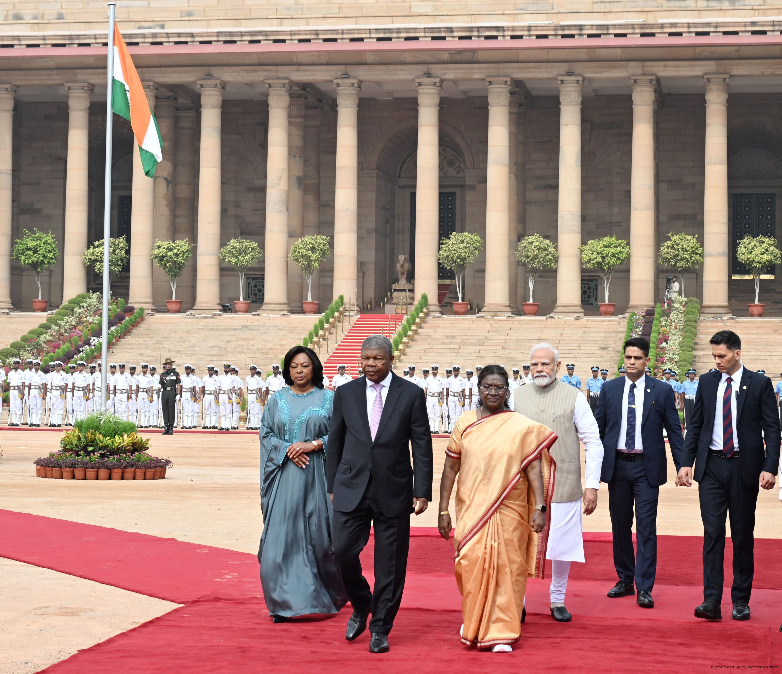 | Caption: | The President of India, Smt. Droupadi Murmu accorded a ceremonial welcome to H.E. Mr. Joeo Manuel Goncalves Lourenco, President of the Republic of Angola at Rashtrapati Bhavan on May 3, 2025. |