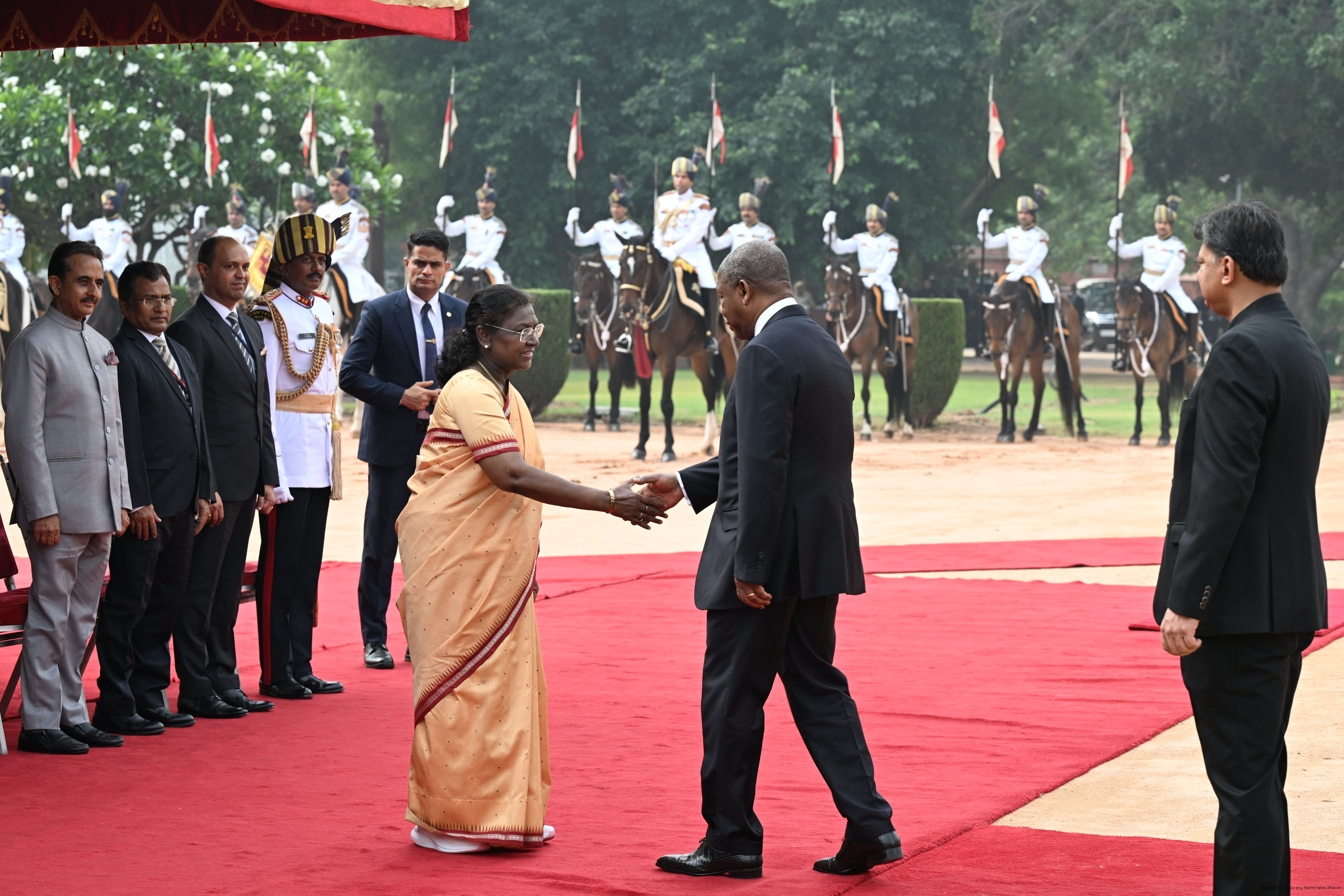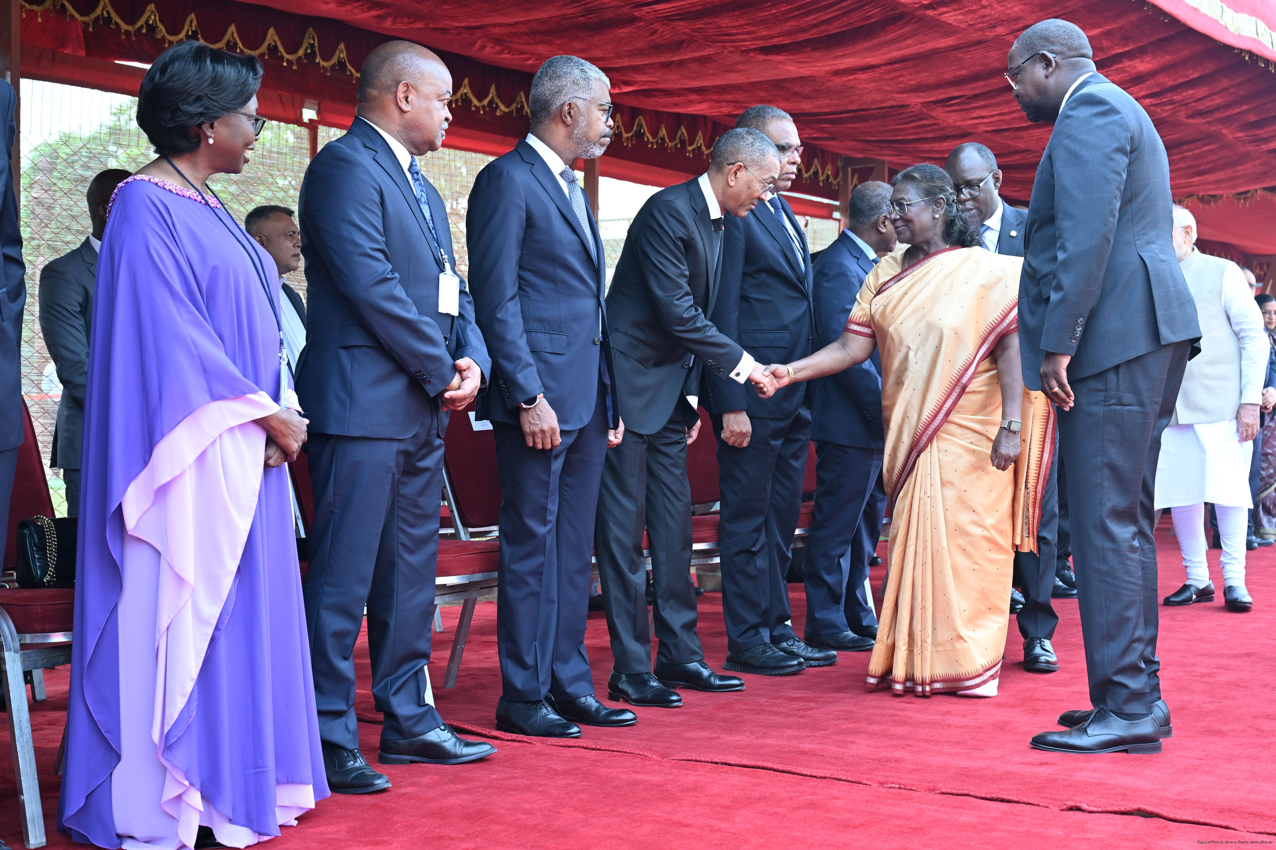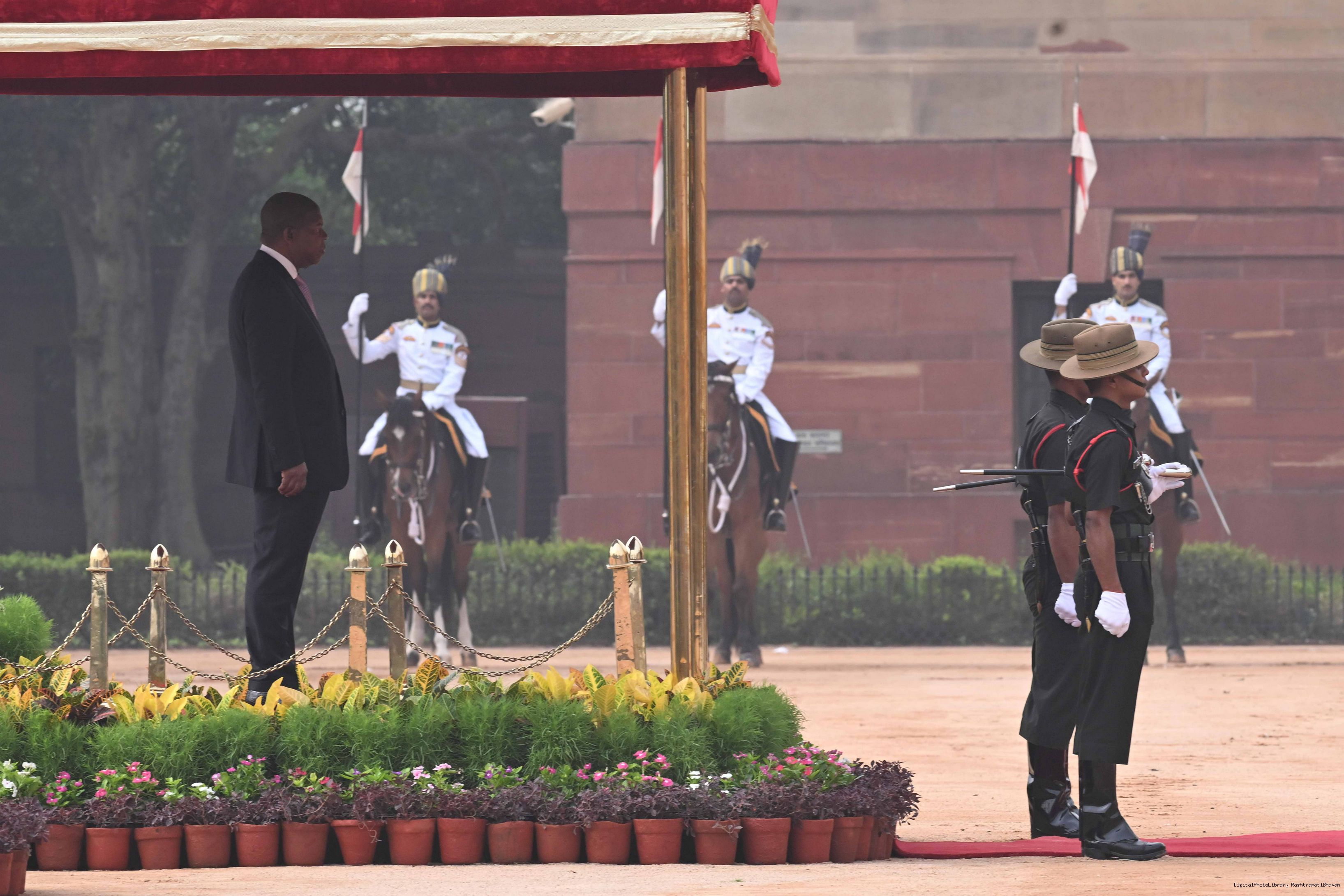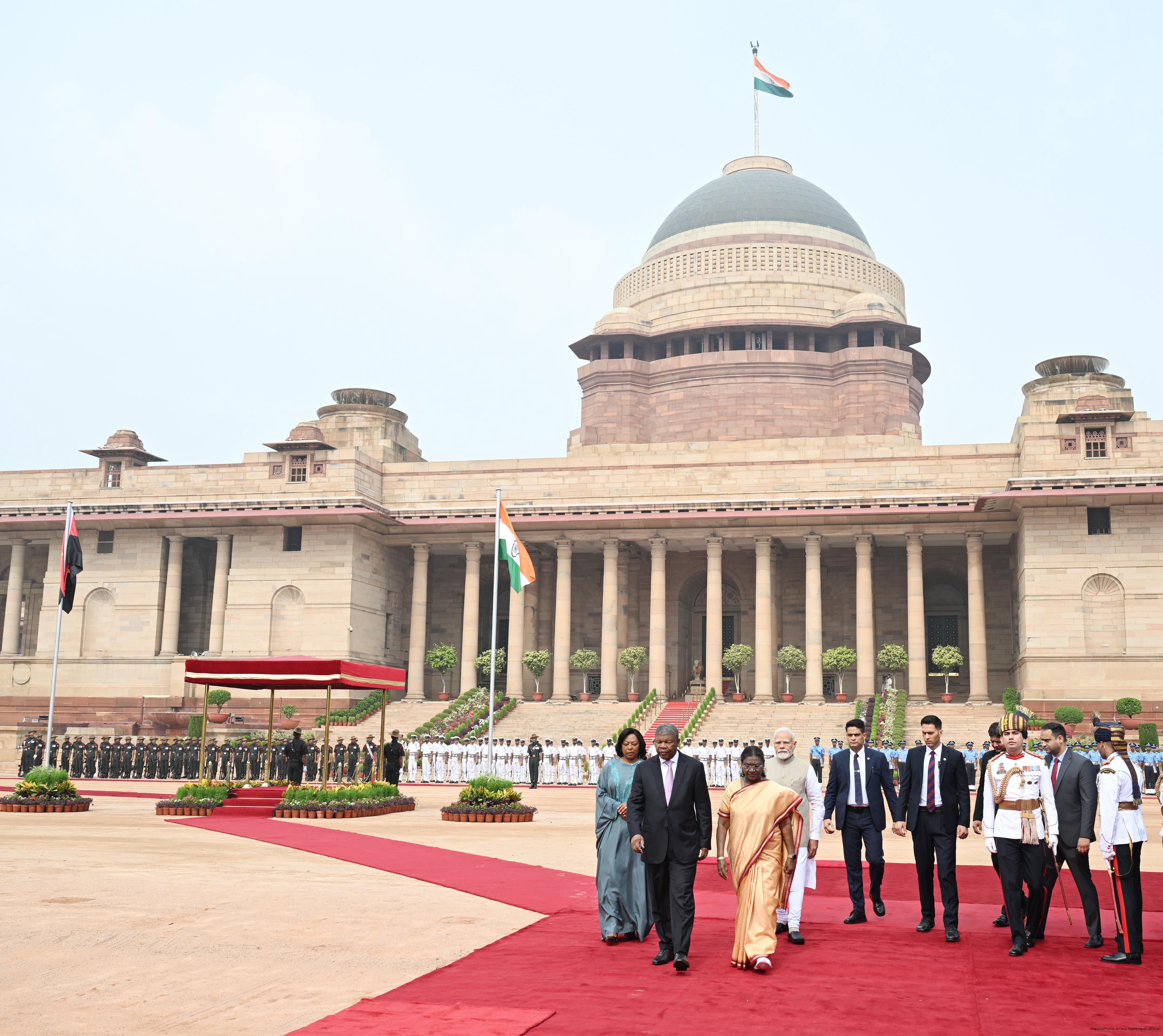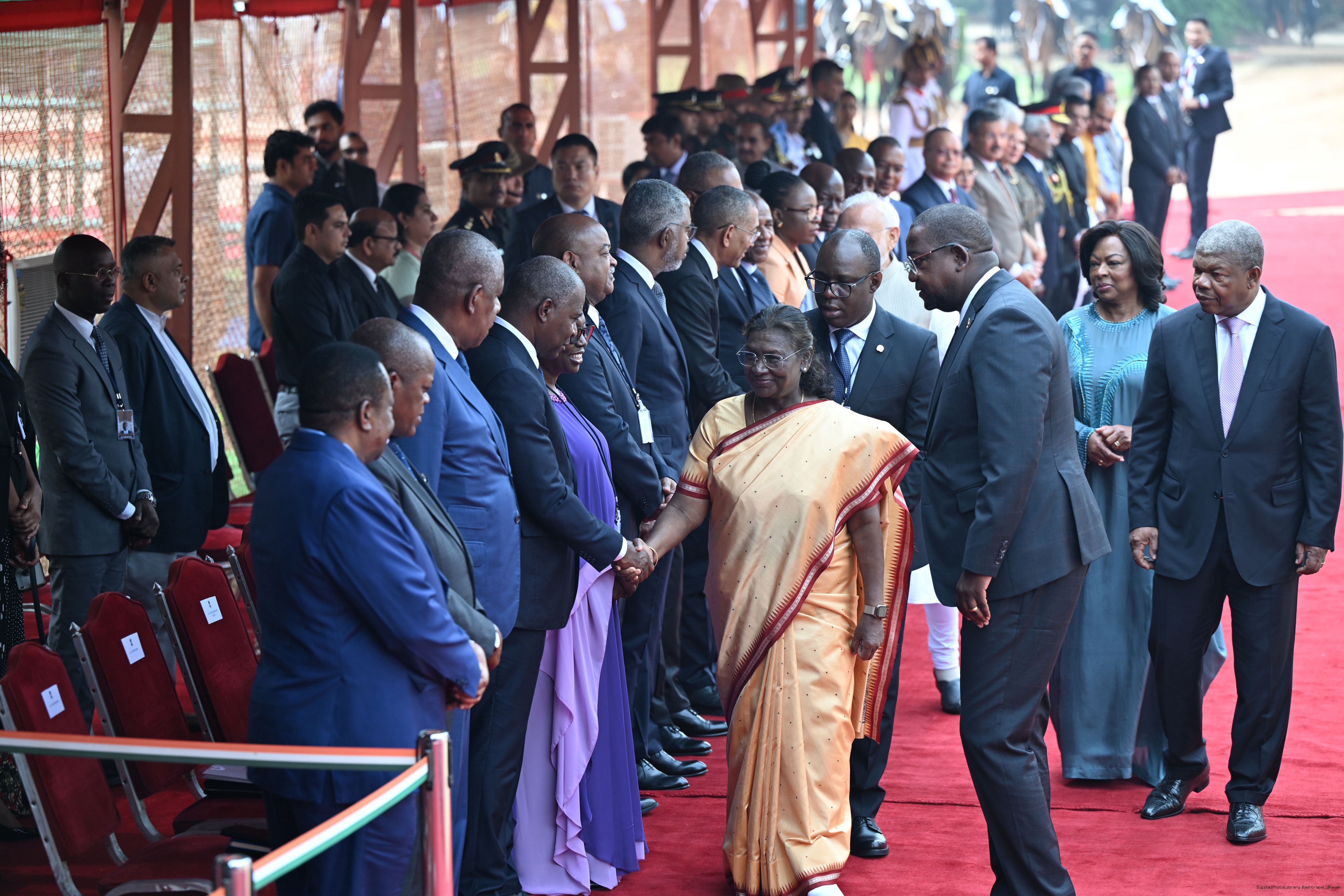 | Caption: | The President of India, Smt. Droupadi Murmu accorded a ceremonial welcome to H.E. Mr. Joeo Manuel Goncalves Lourenco, President of the Republic of Angola at Rashtrapati Bhavan on May 3, 2025. |