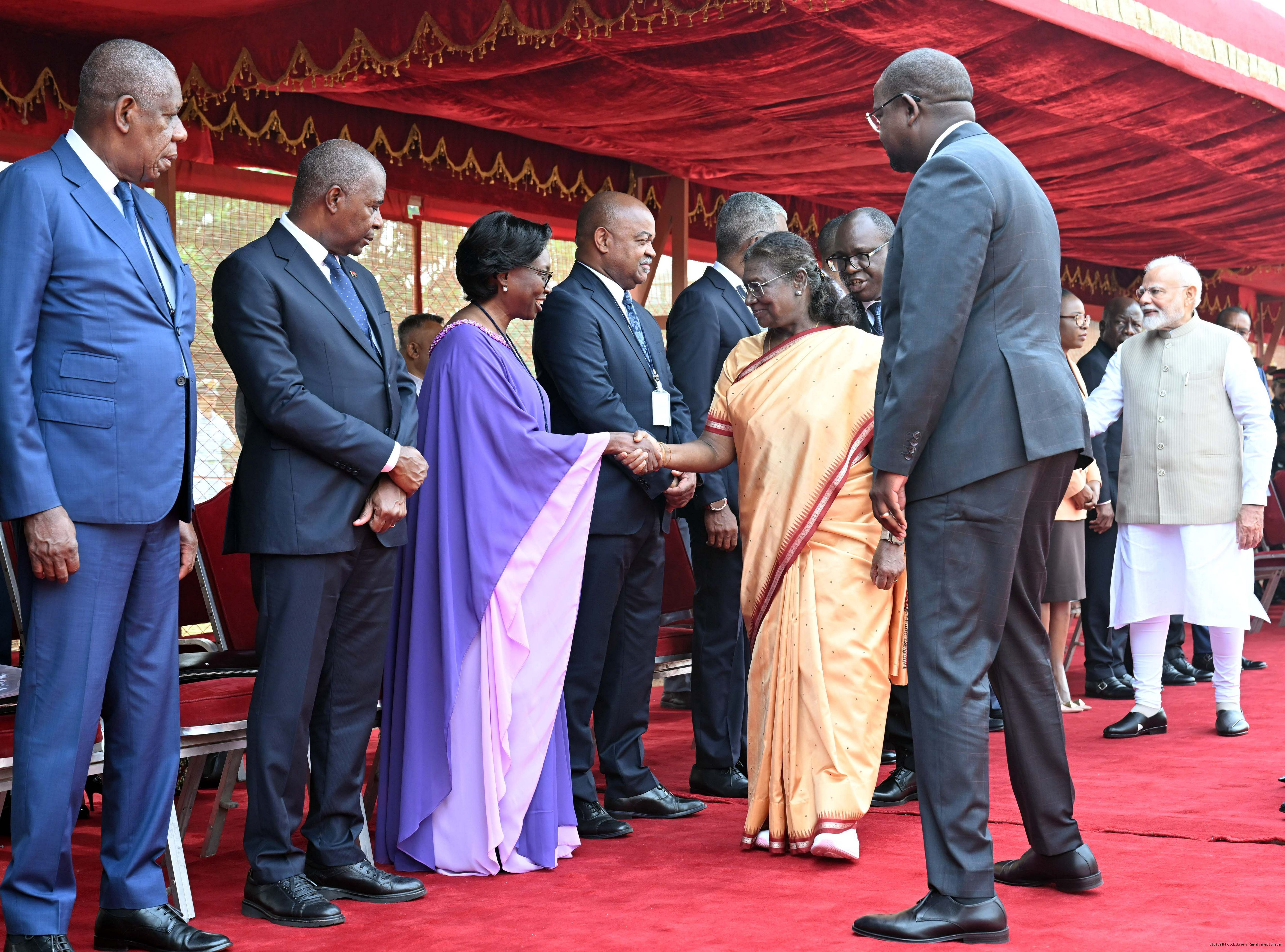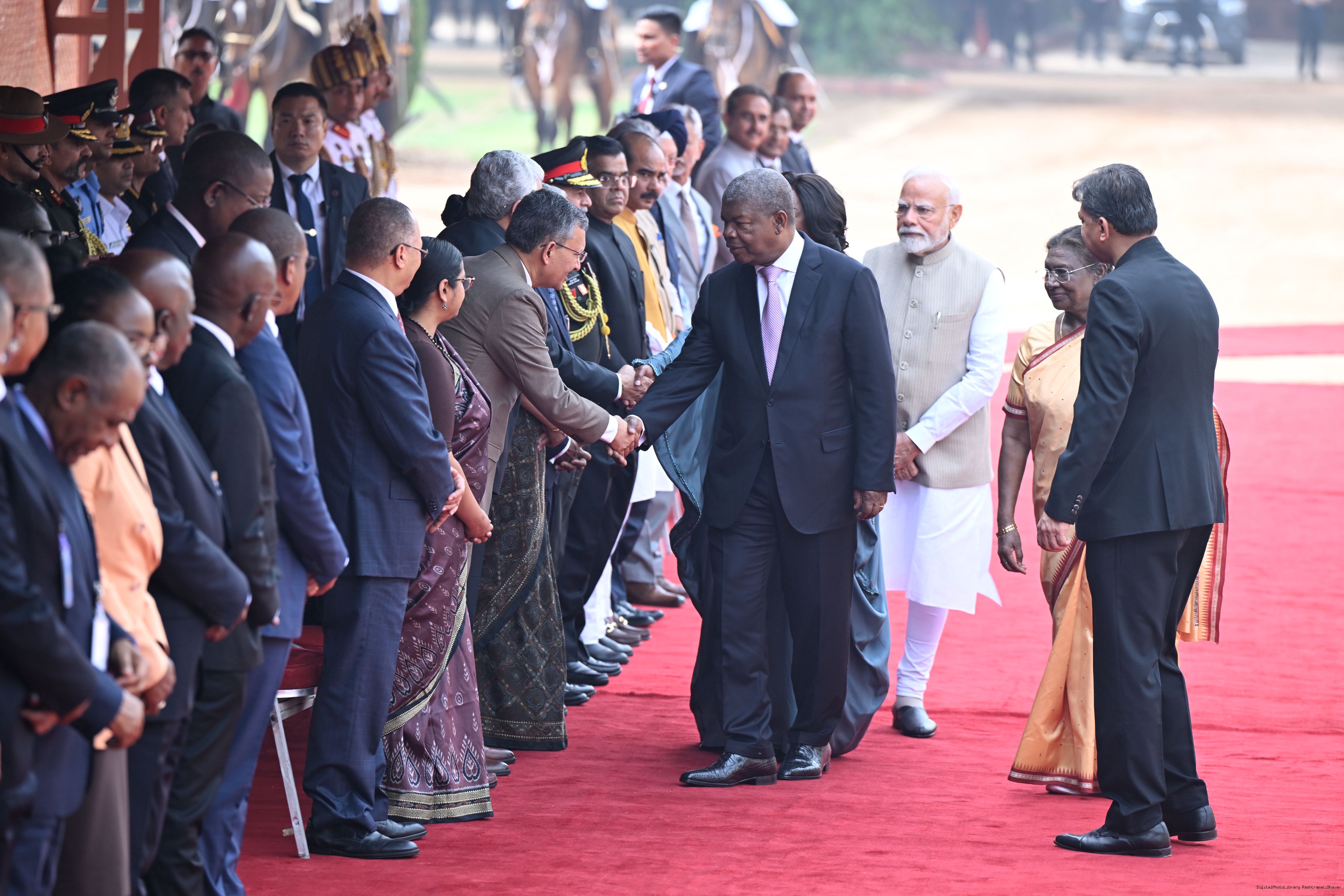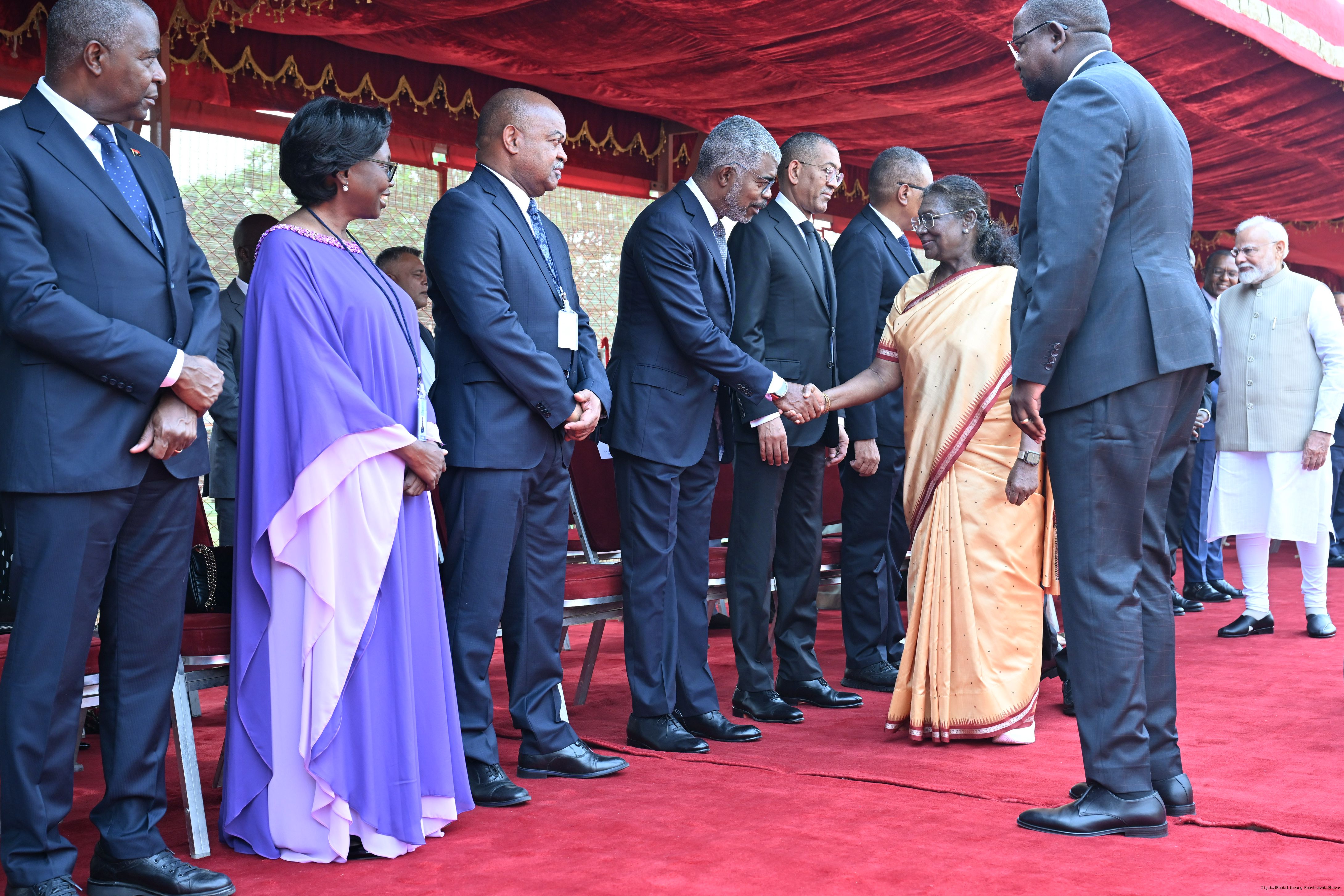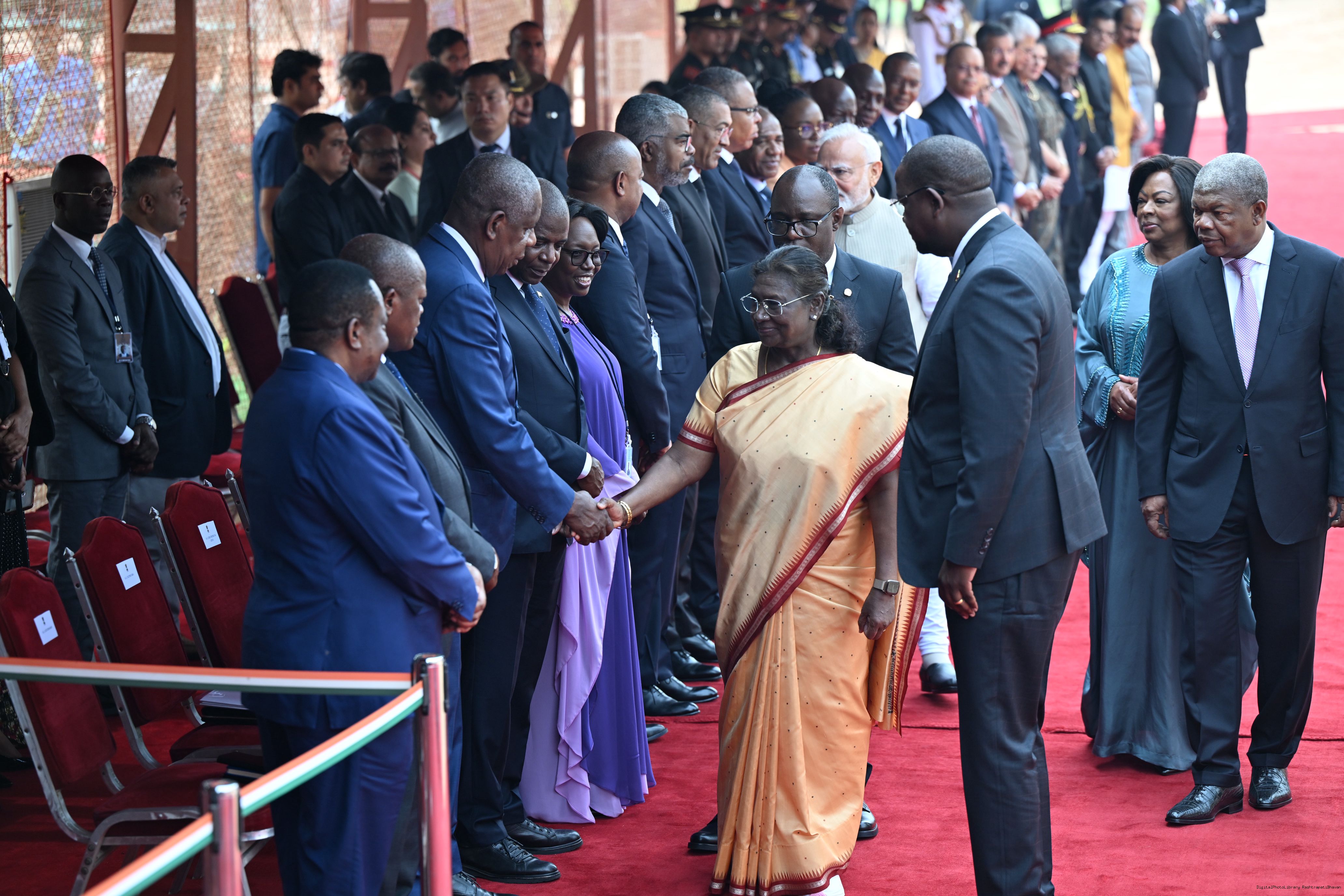 | Caption: | The President of India, Smt. Droupadi Murmu accorded a ceremonial welcome to H.E. Mr. Joeo Manuel Goncalves Lourenco, President of the Republic of Angola at Rashtrapati Bhavan on May 3, 2025. |
