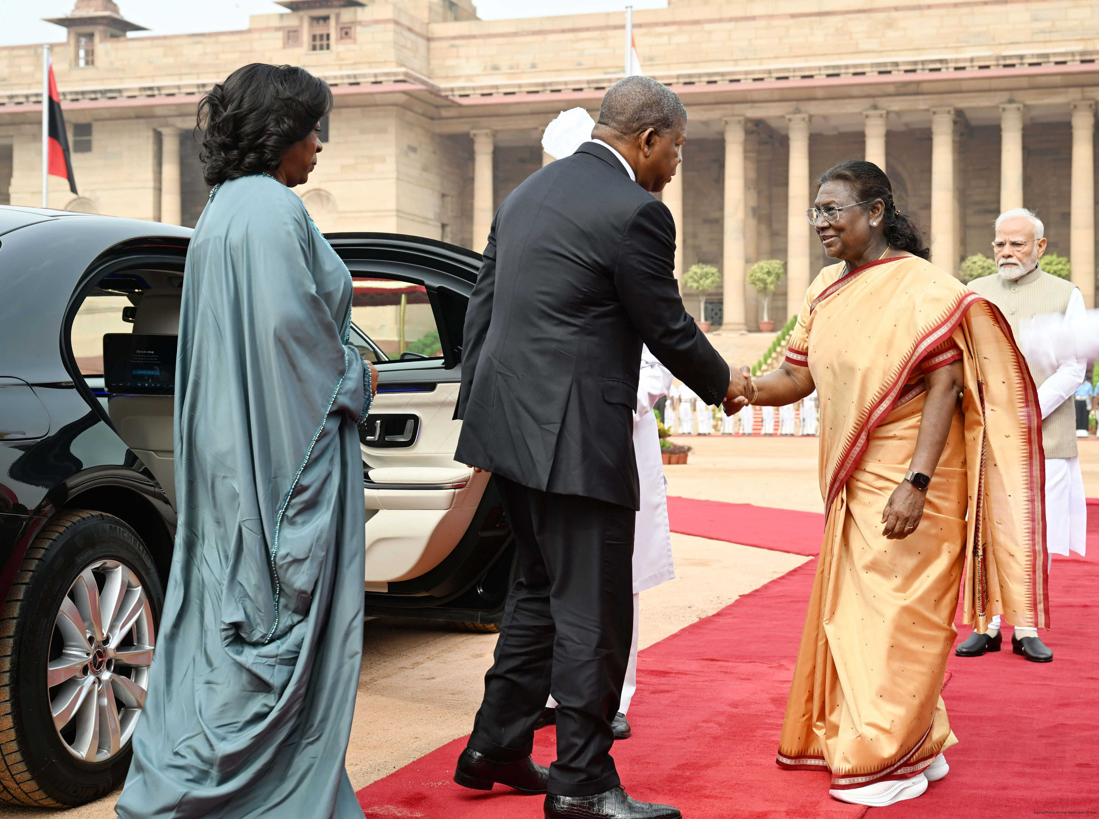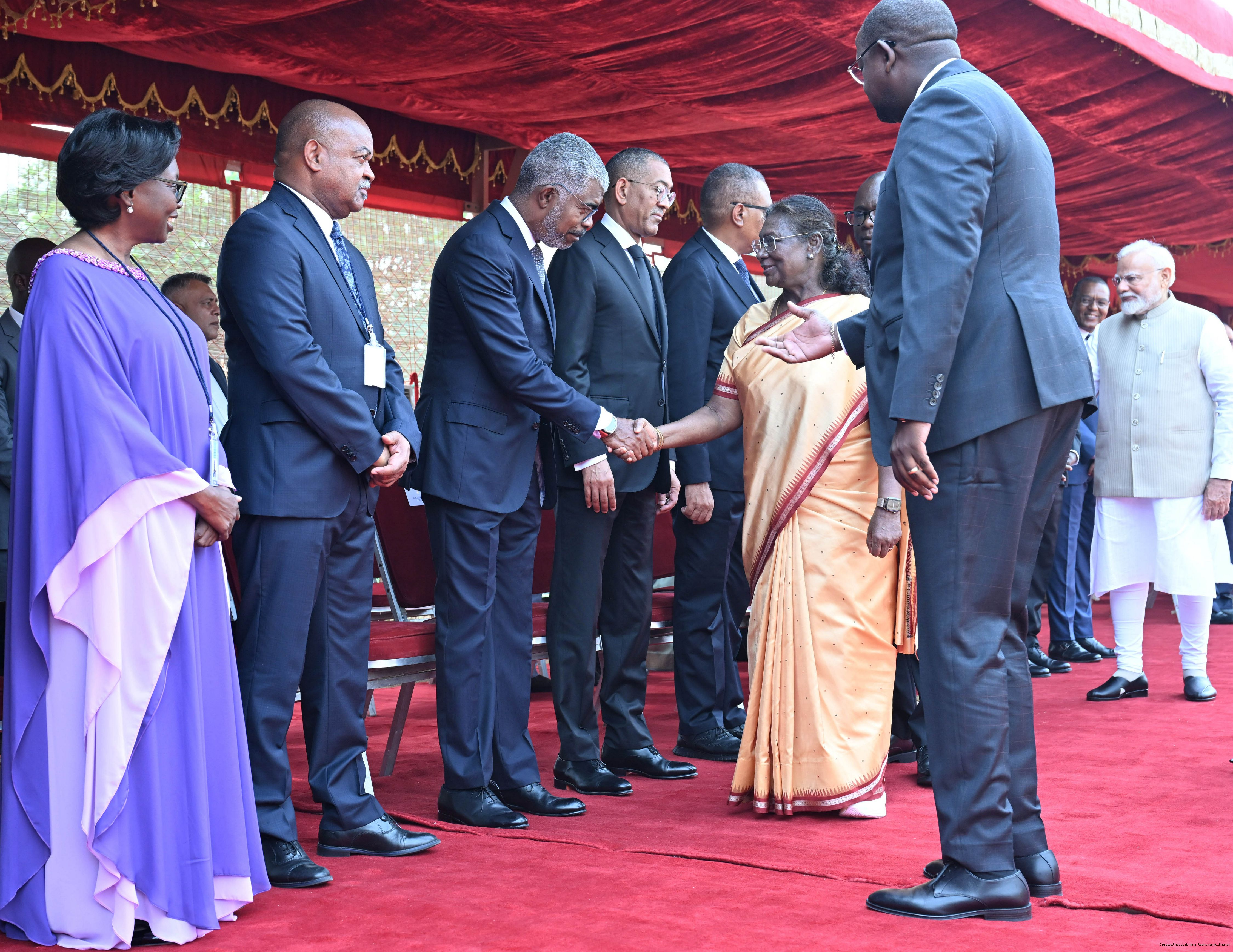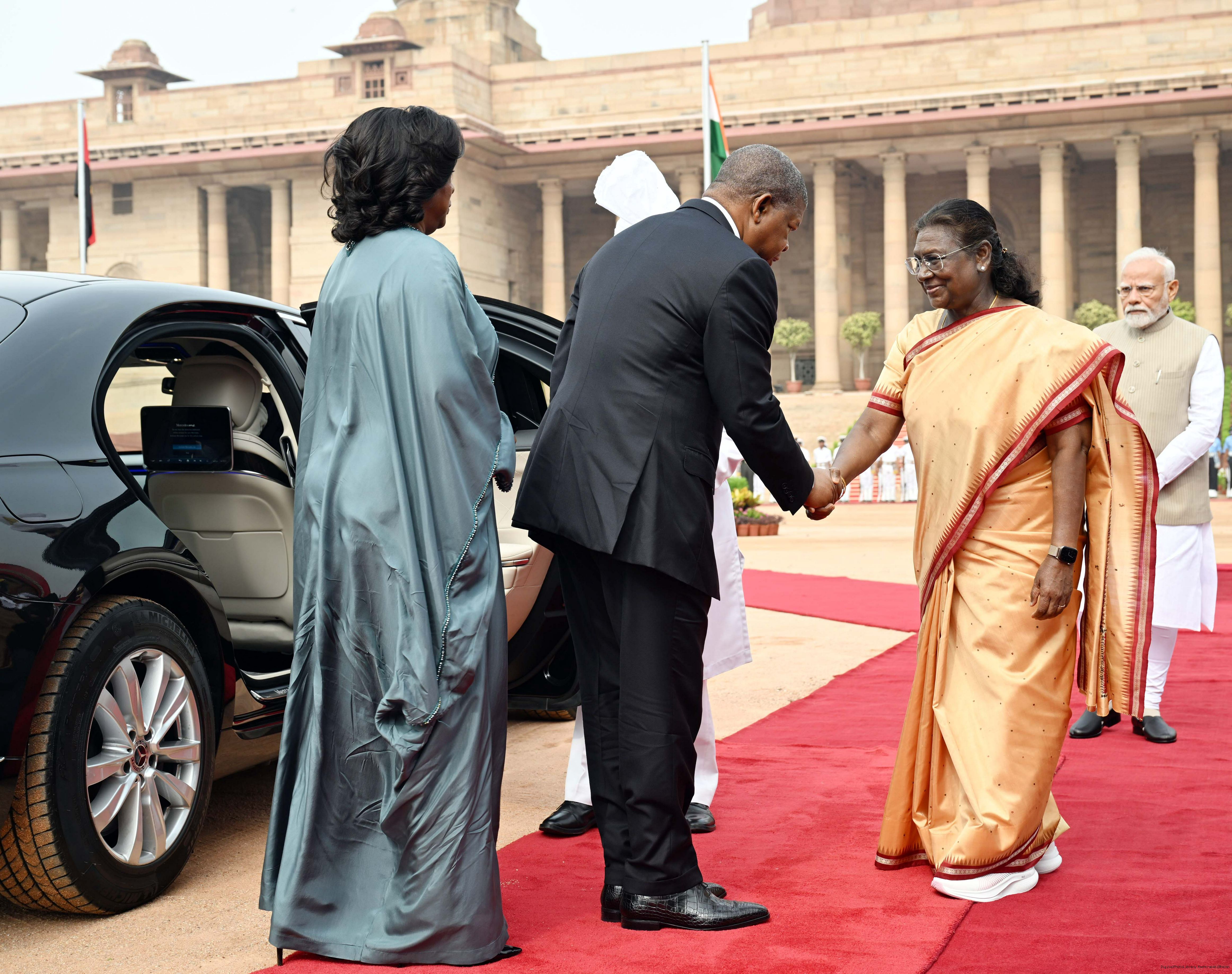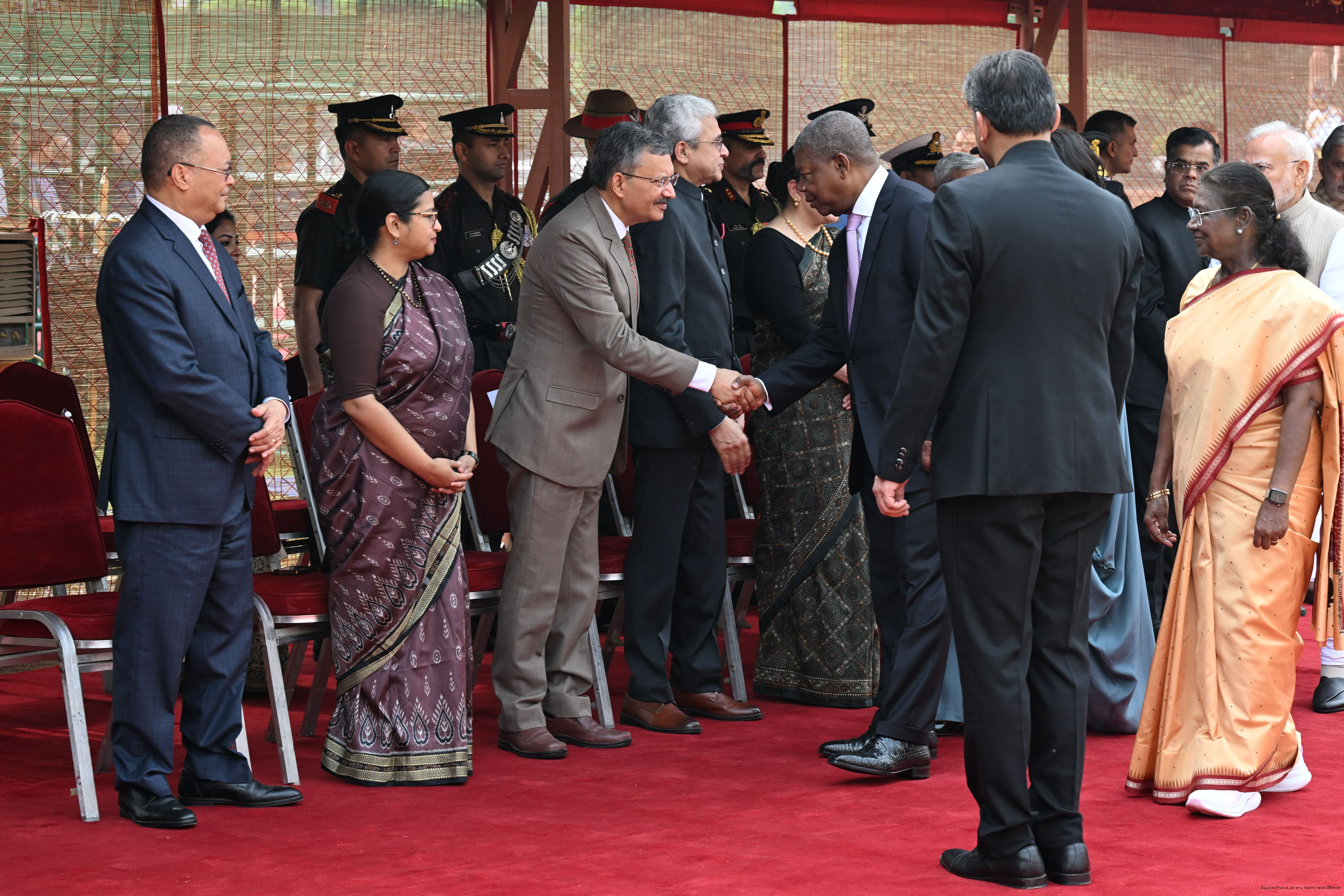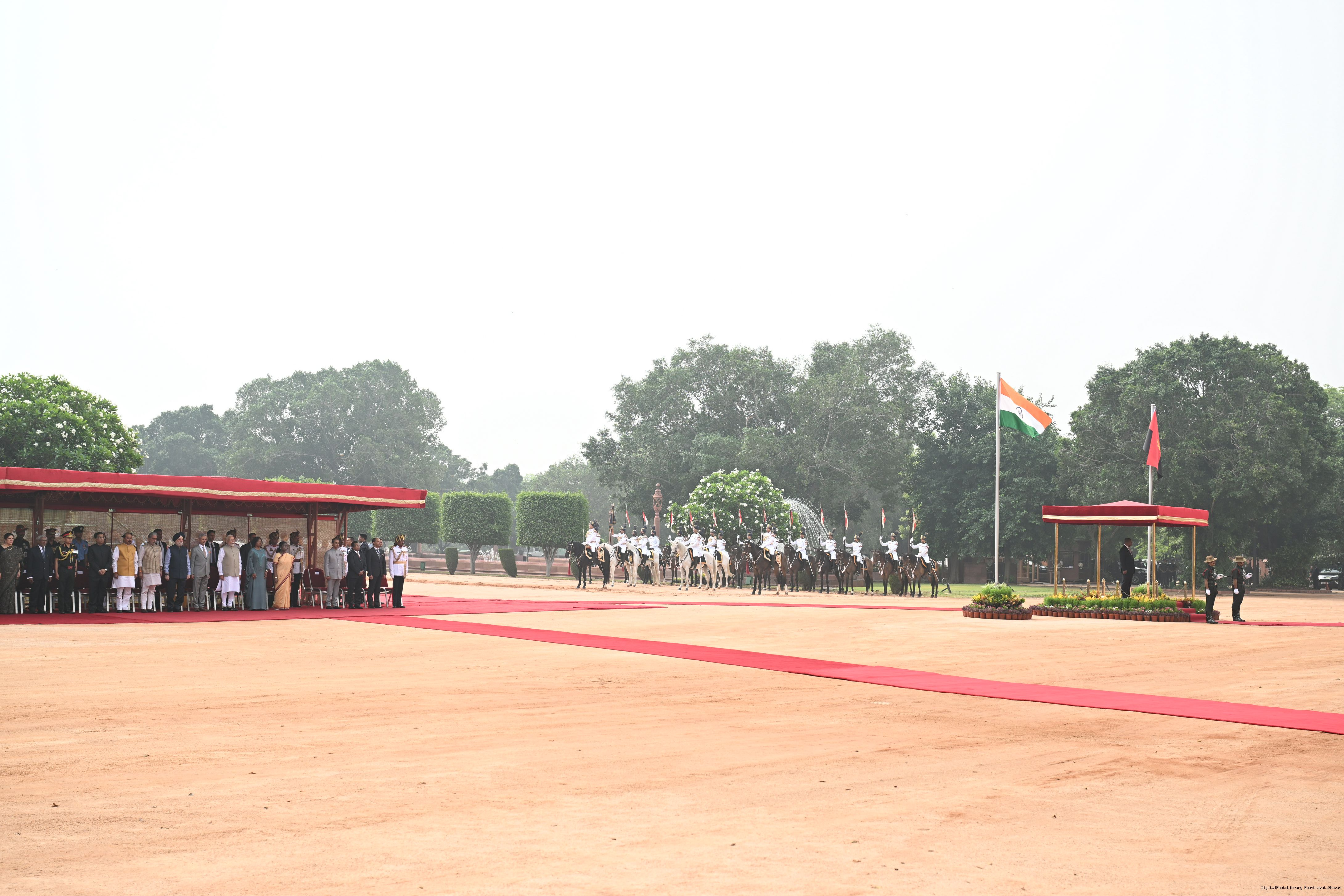 | Caption: | The President of India, Smt. Droupadi Murmu accorded a ceremonial welcome to H.E. Mr. Joeo Manuel Goncalves Lourenco, President of the Republic of Angola at Rashtrapati Bhavan on May 3, 2025. |