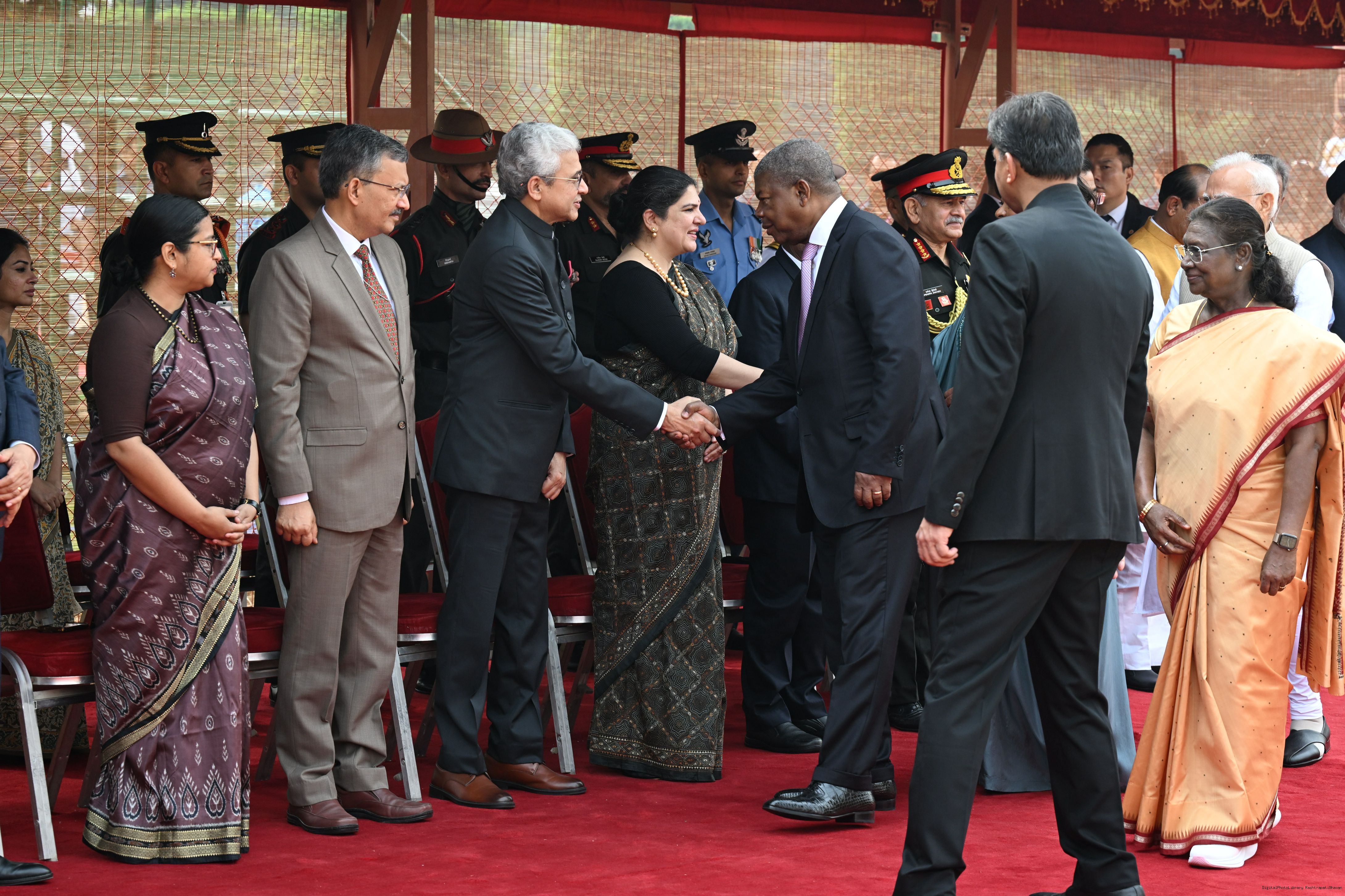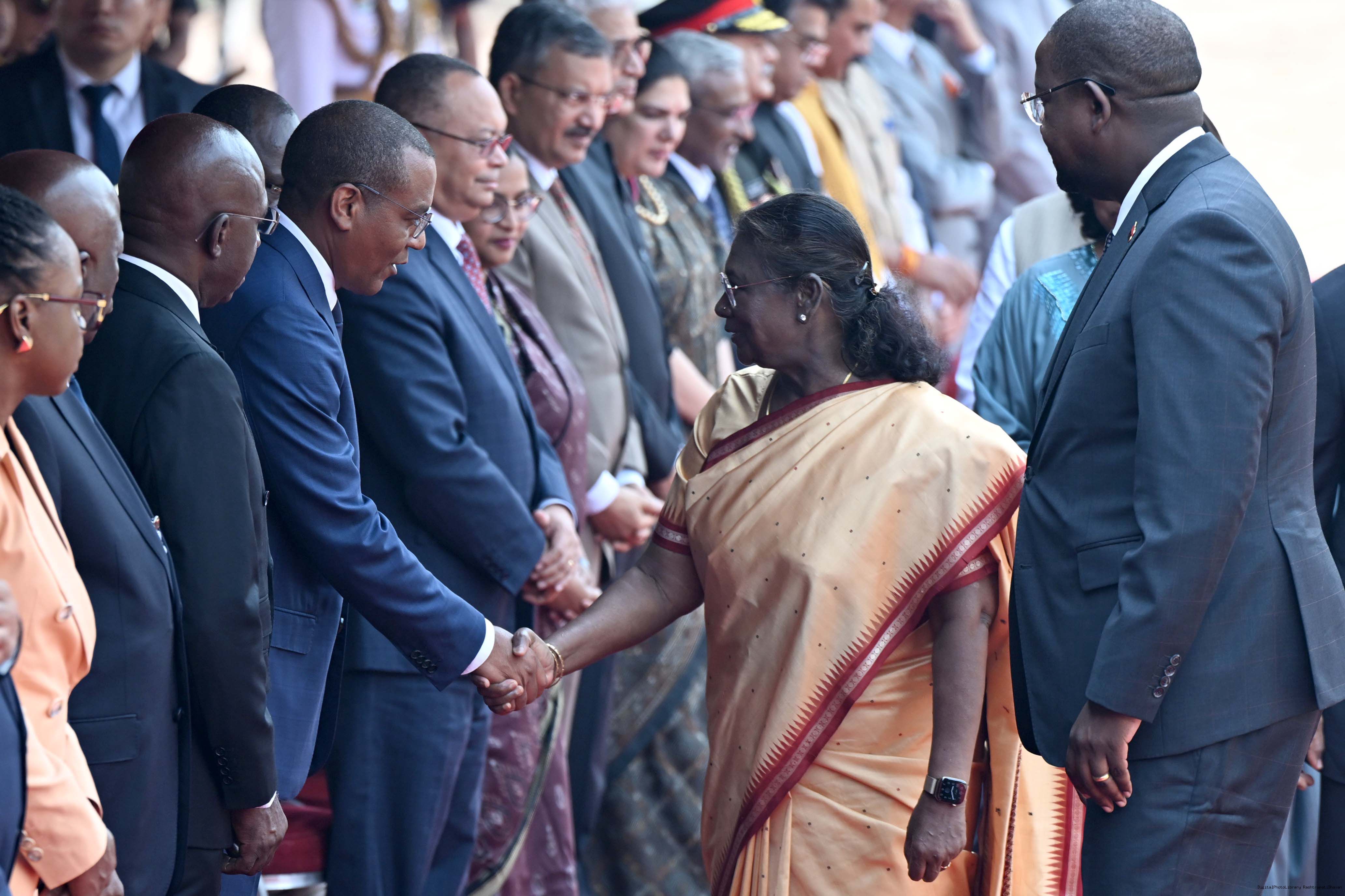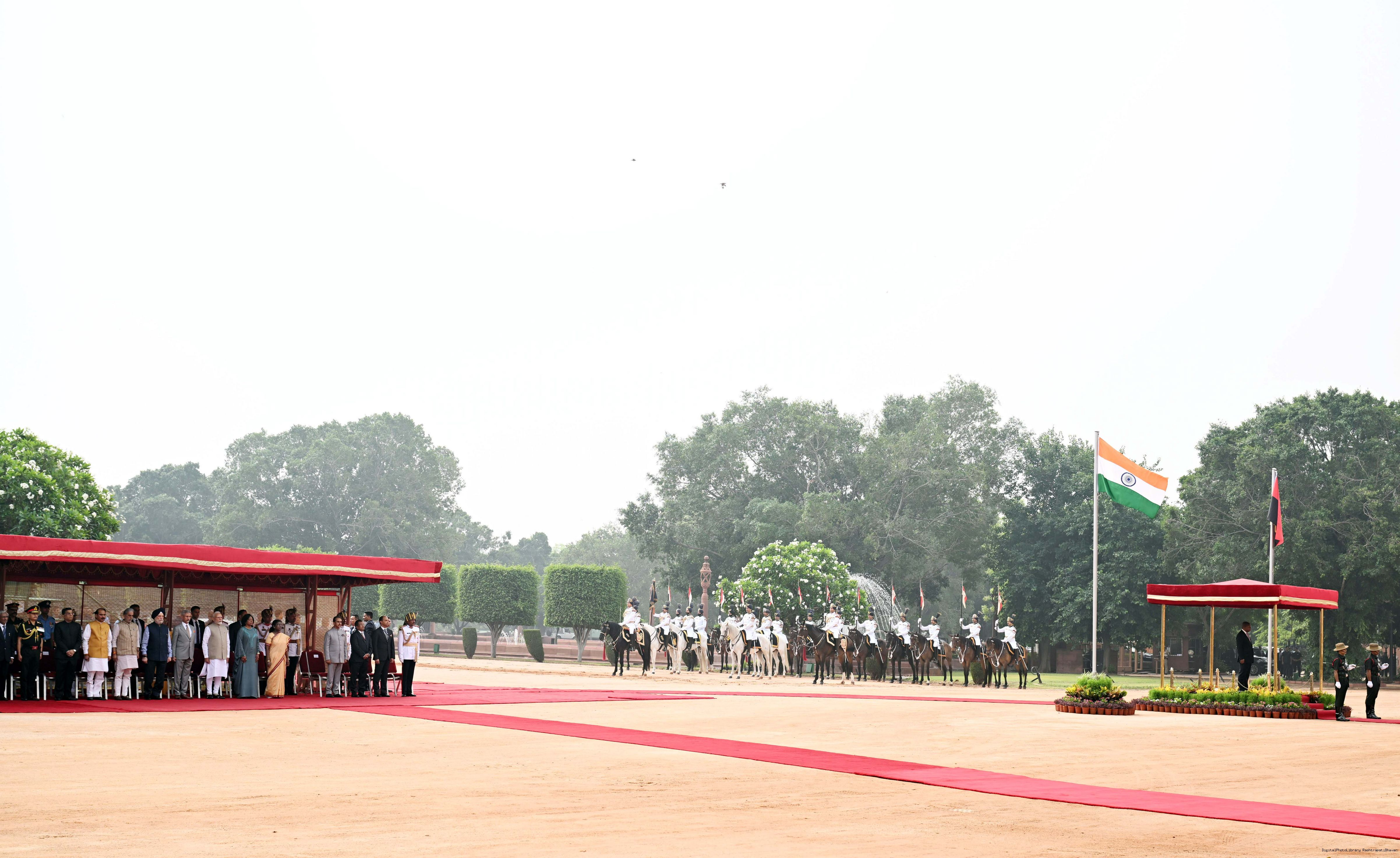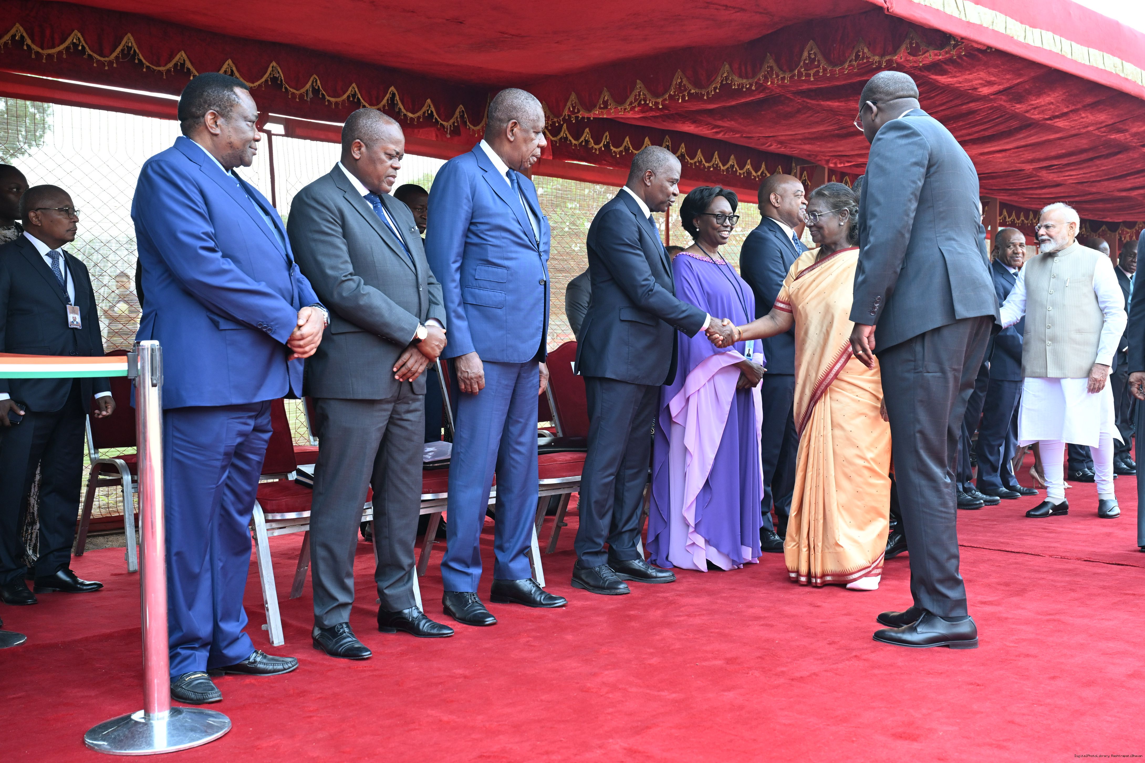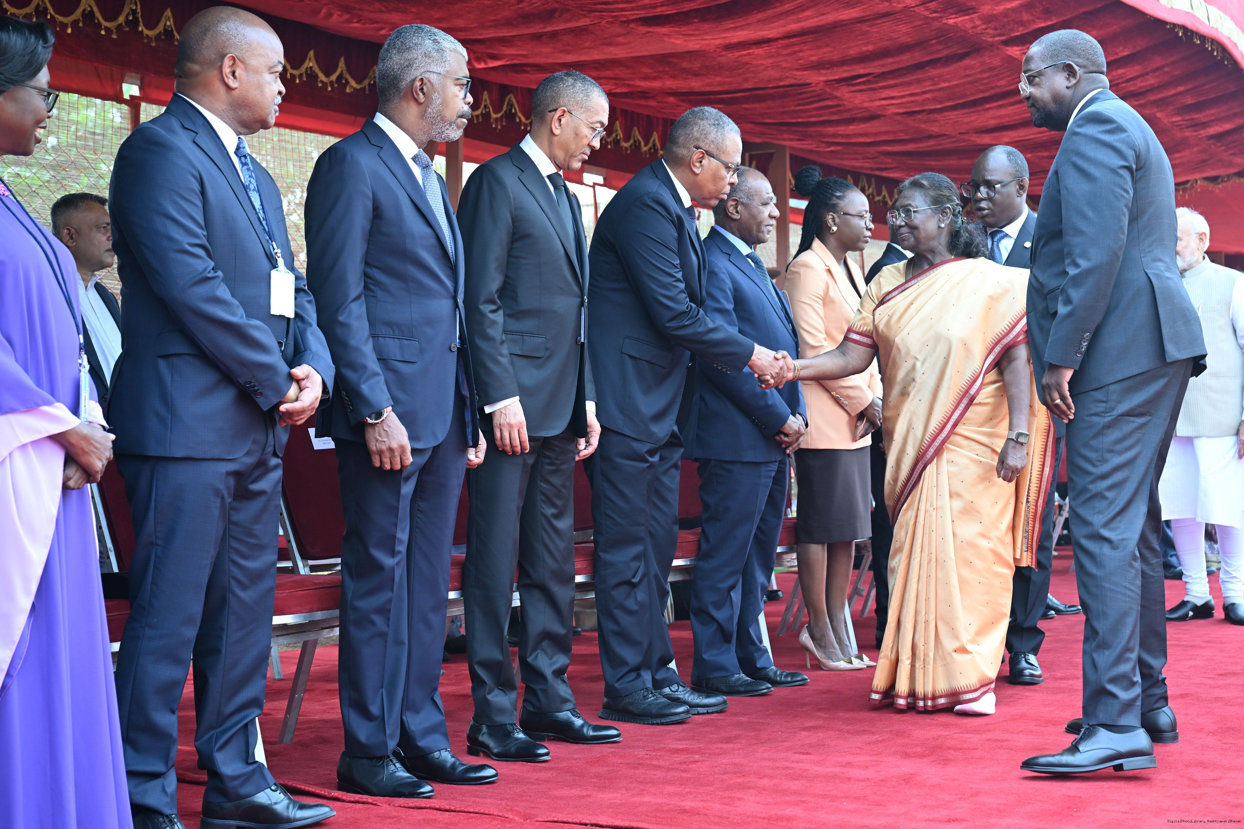 | Caption: | The President of India, Smt. Droupadi Murmu accorded a ceremonial welcome to H.E. Mr. Joeo Manuel Goncalves Lourenco, President of the Republic of Angola at Rashtrapati Bhavan on May 3, 2025. |