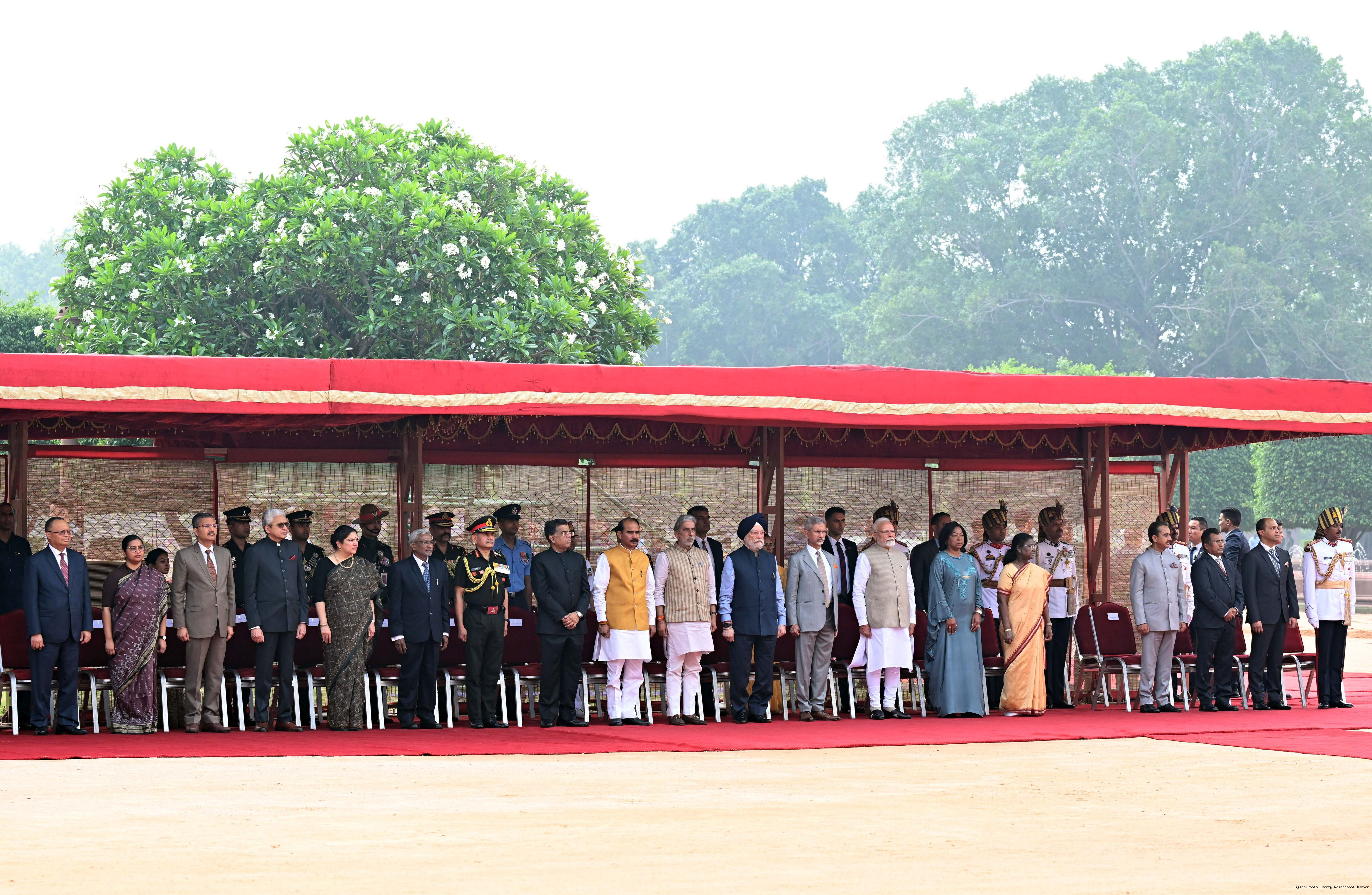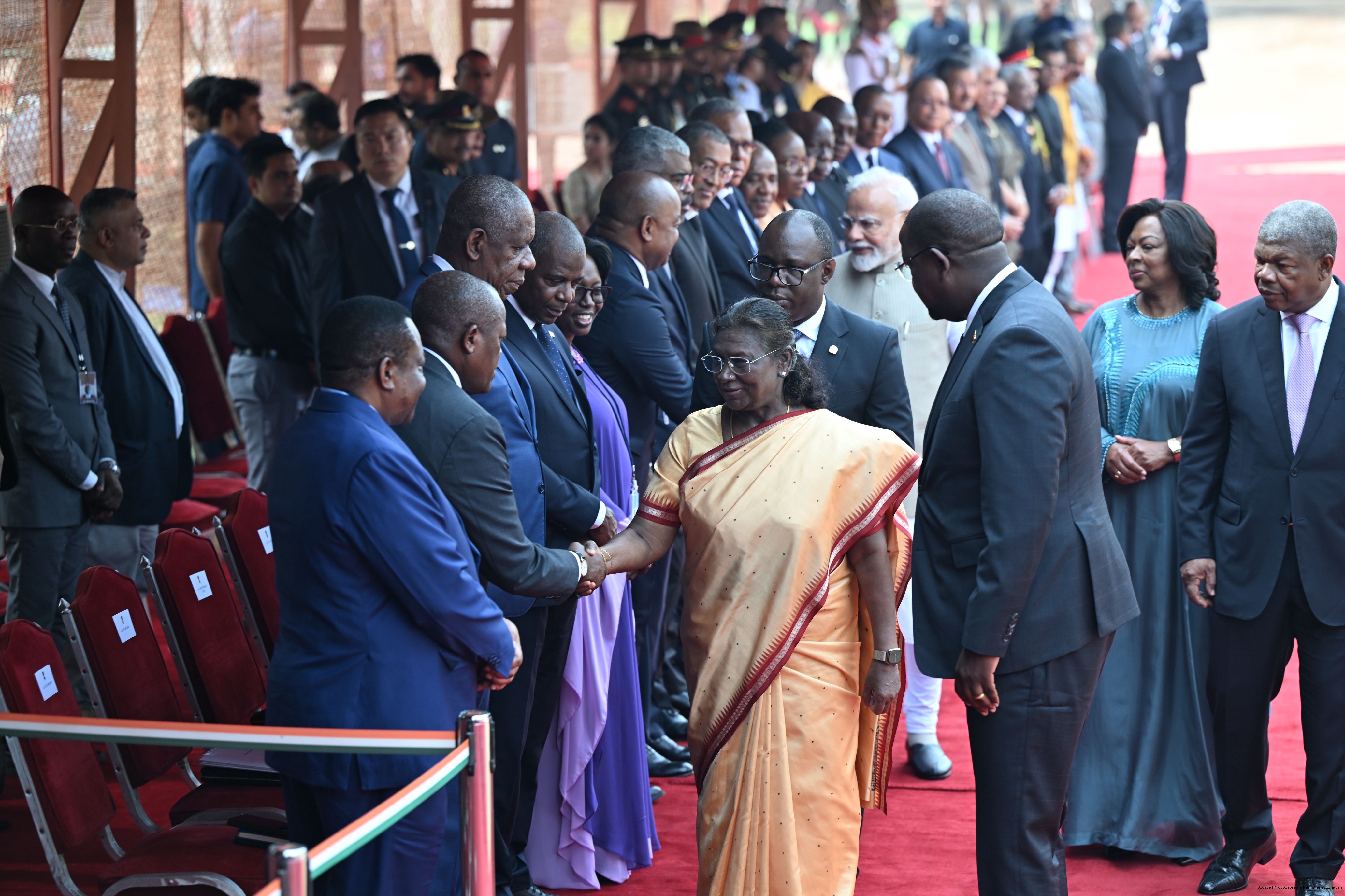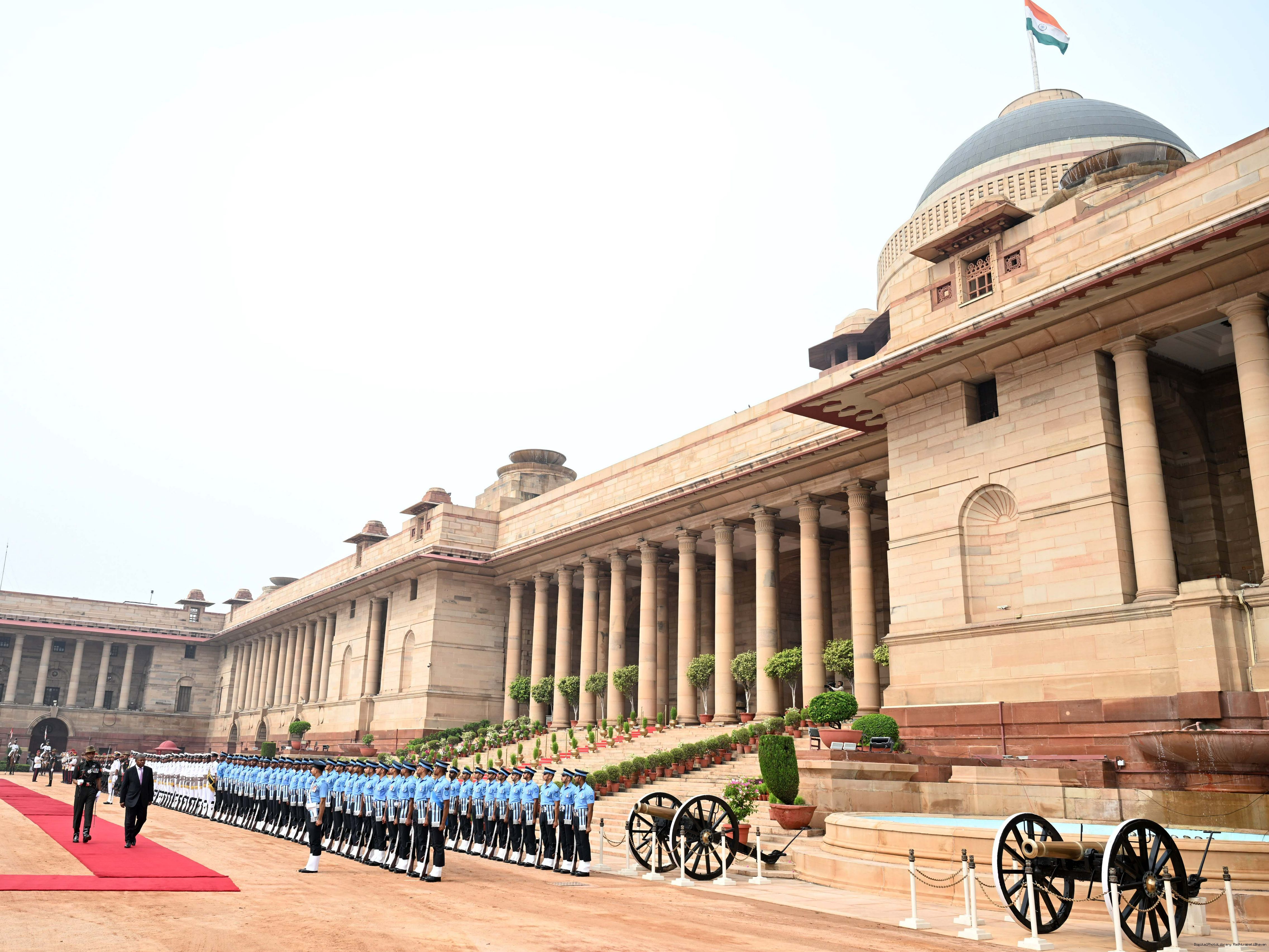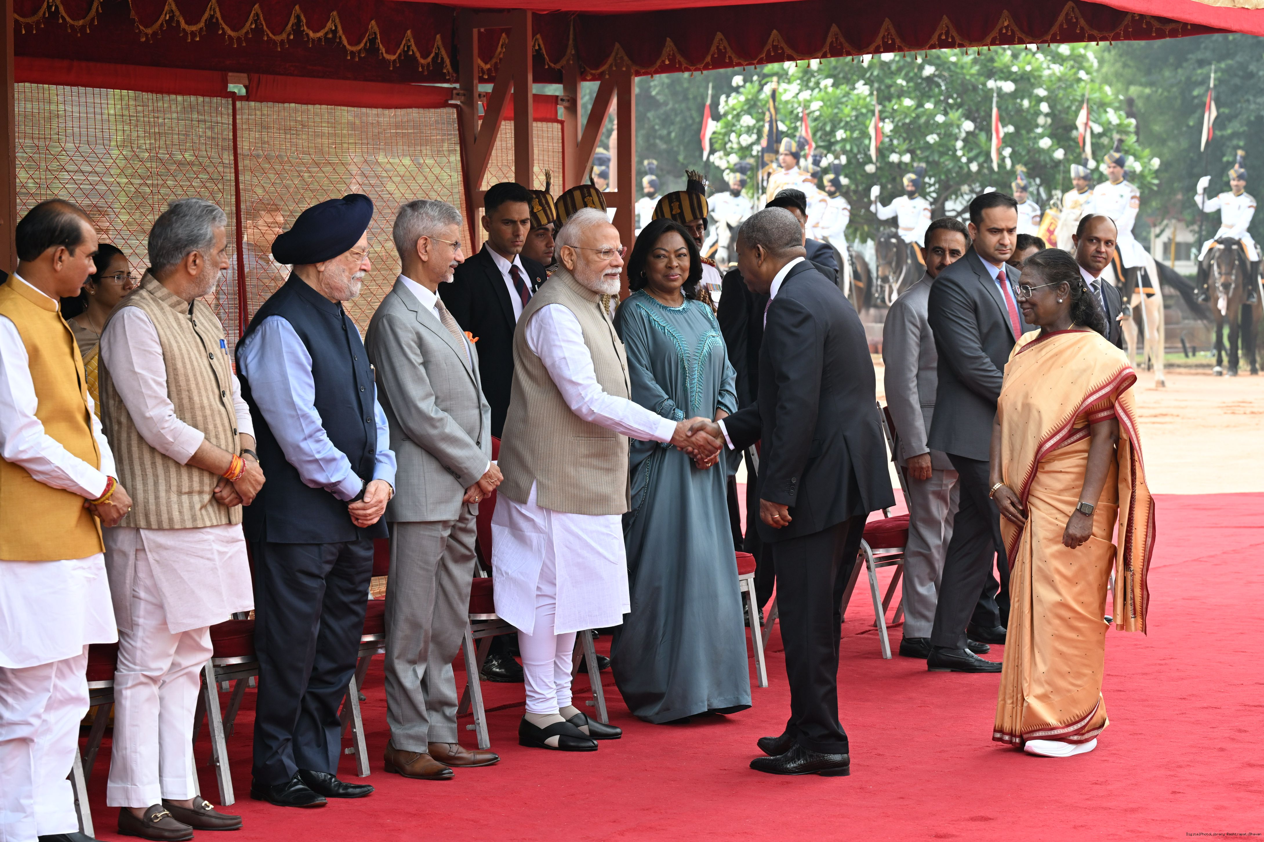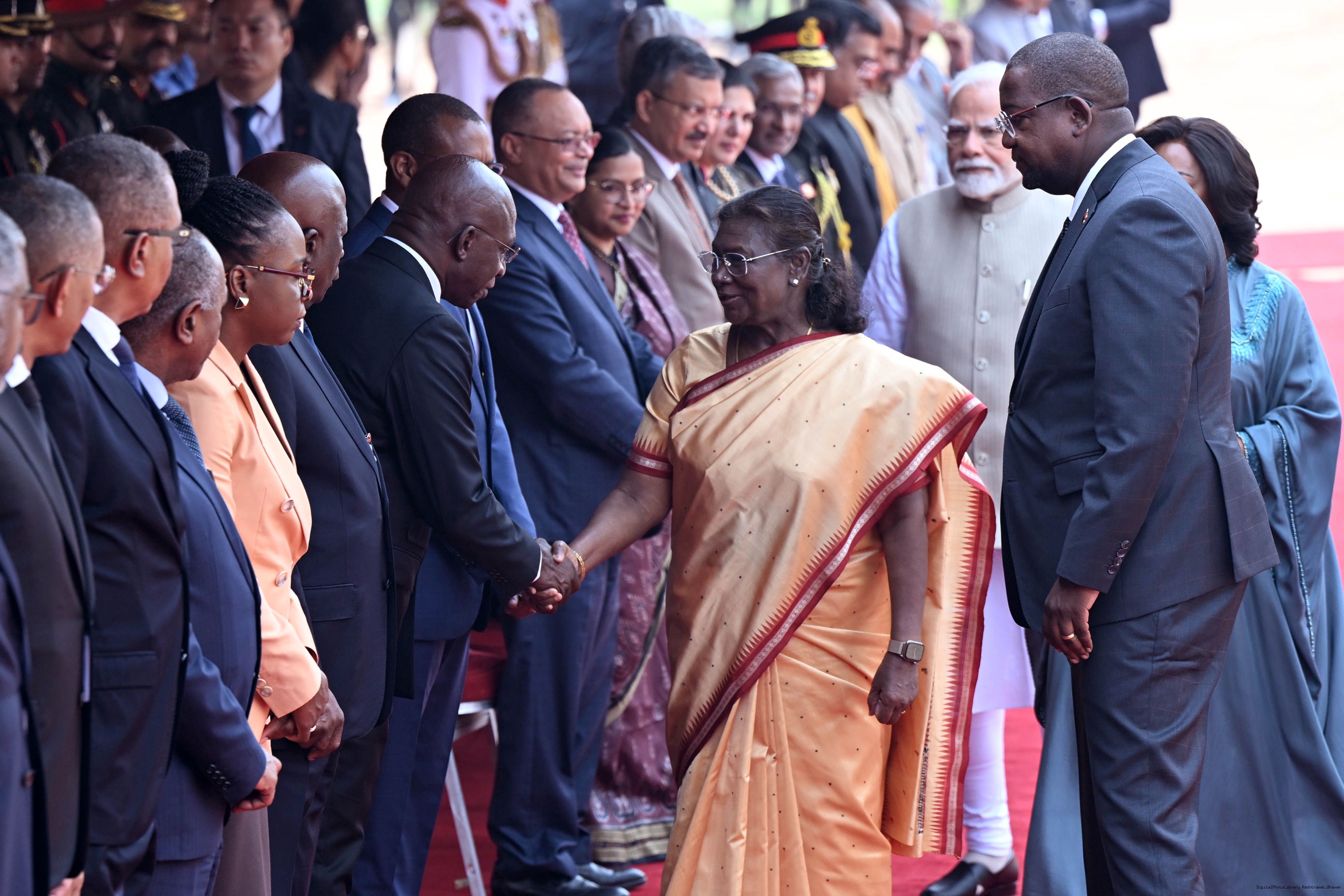 | Caption: | The President of India, Smt. Droupadi Murmu accorded a ceremonial welcome to H.E. Mr. Joeo Manuel Goncalves Lourenco, President of the Republic of Angola at Rashtrapati Bhavan on May 3, 2025. |