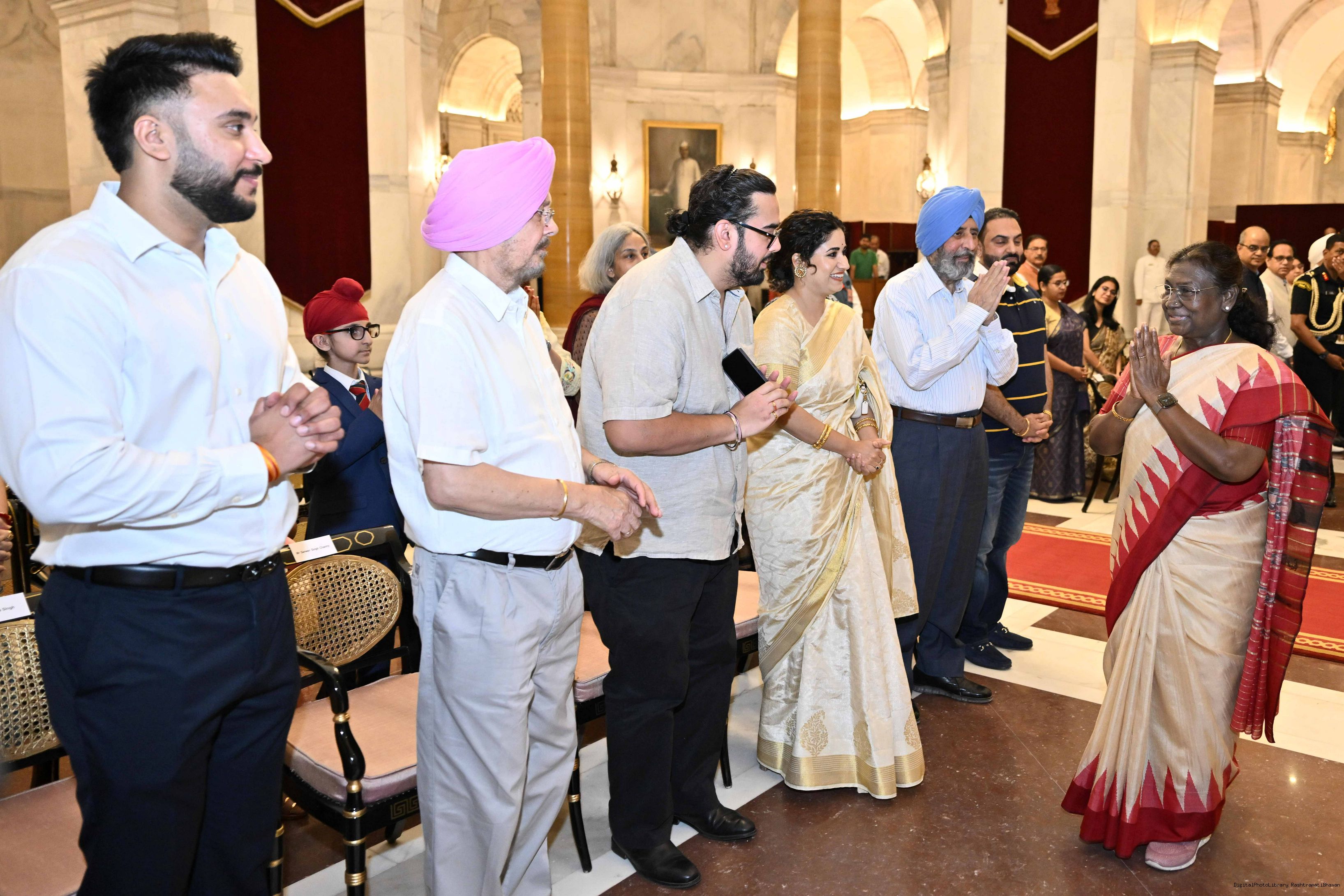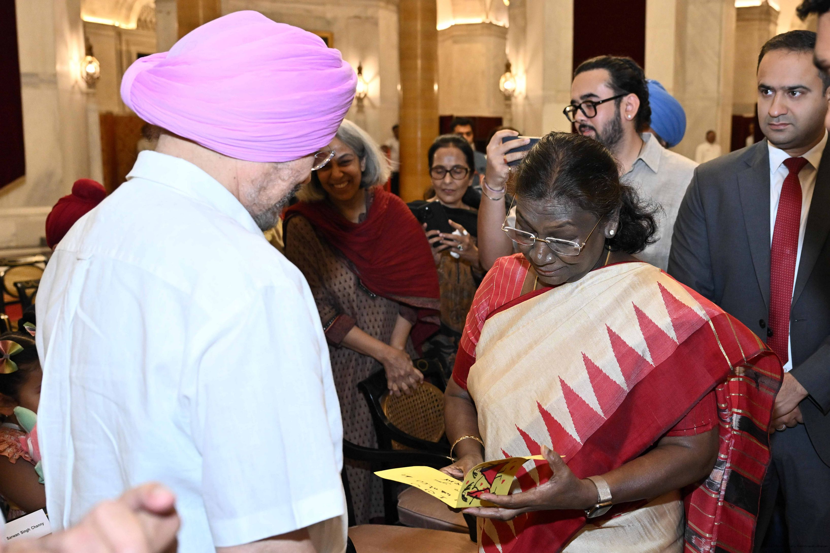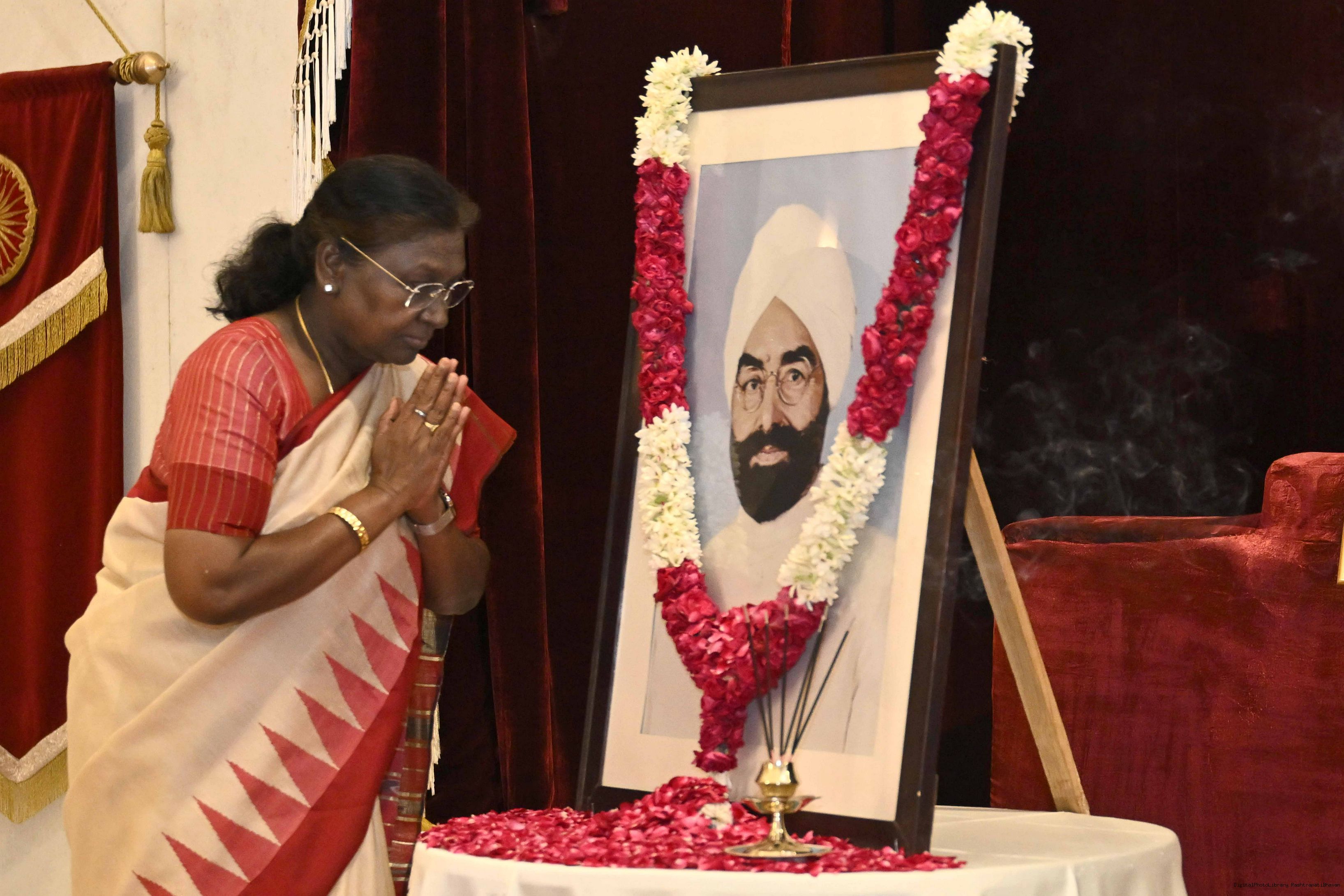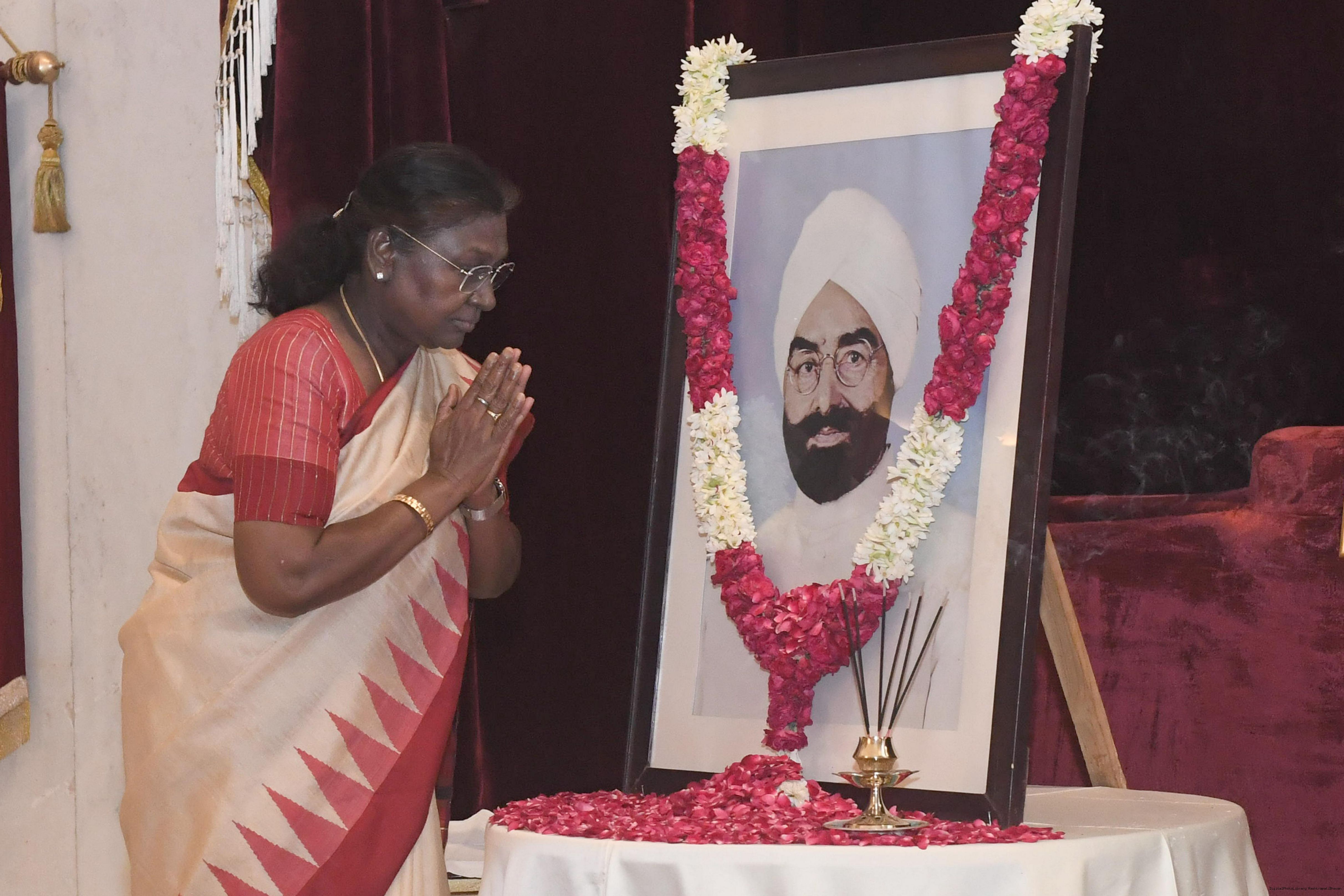 | Caption: | The President of India, Smt. Droupadi Murmu paid floral tributes to Giani Zail Singh, former President of India on his birth anniversary at Rashtrapati Bhavan on May 5, 2025. |