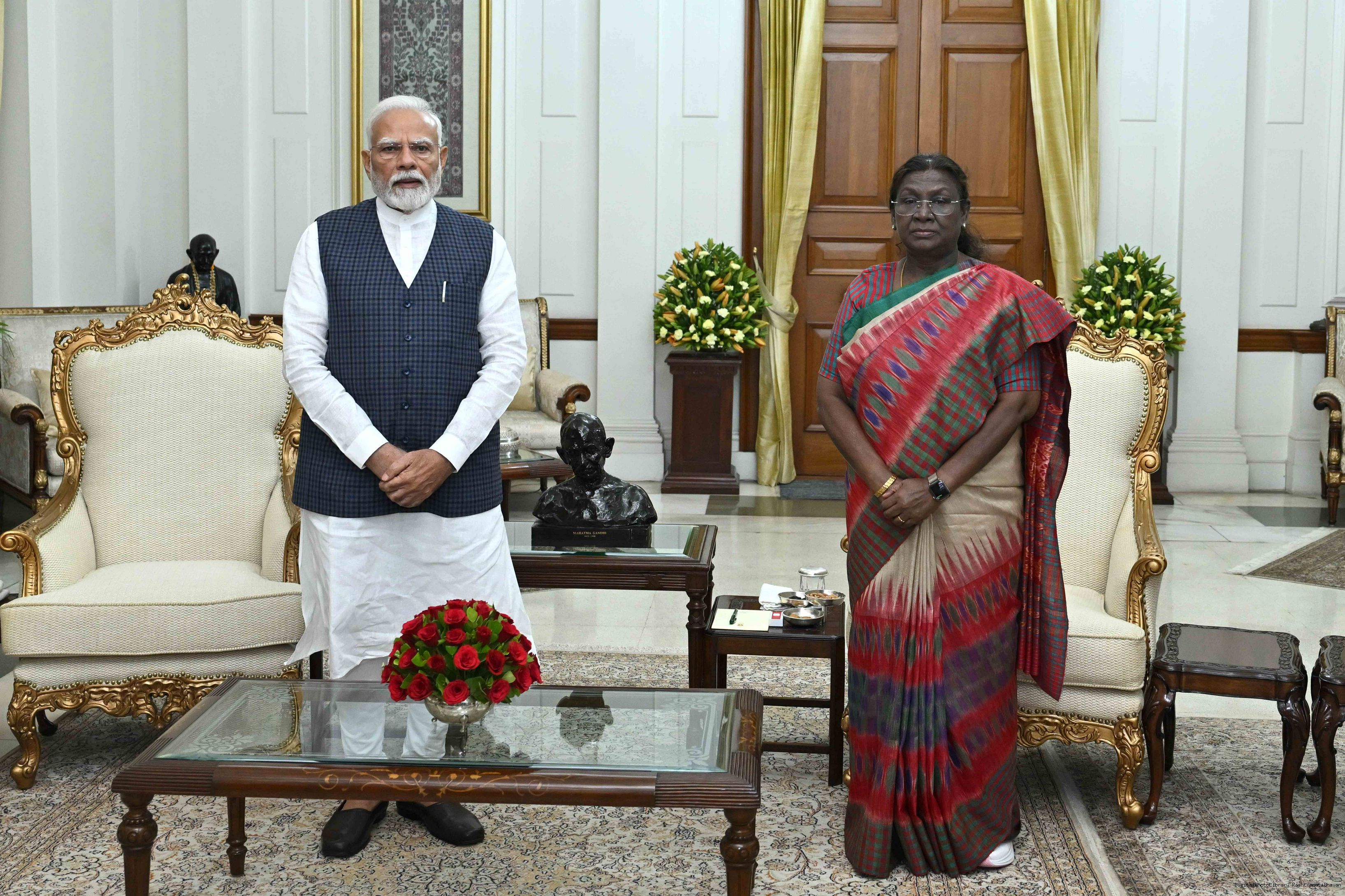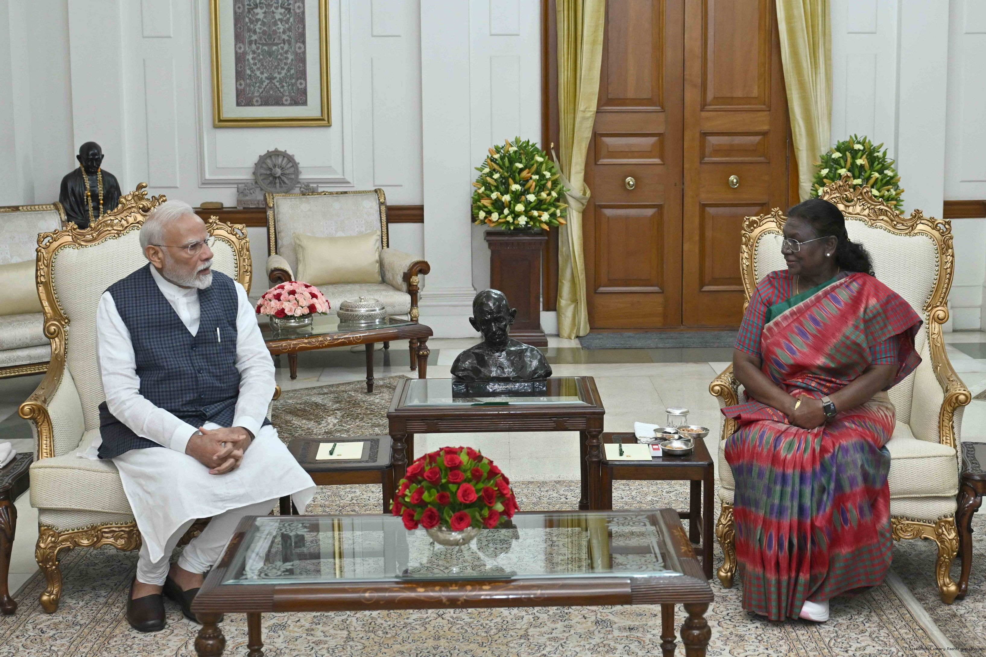 The Prime Minister of India, Shri Narendra Modi called on the President of India, Smt. Droupadi Murmu at Rashtrapati Bhavan on May 7, 2025.