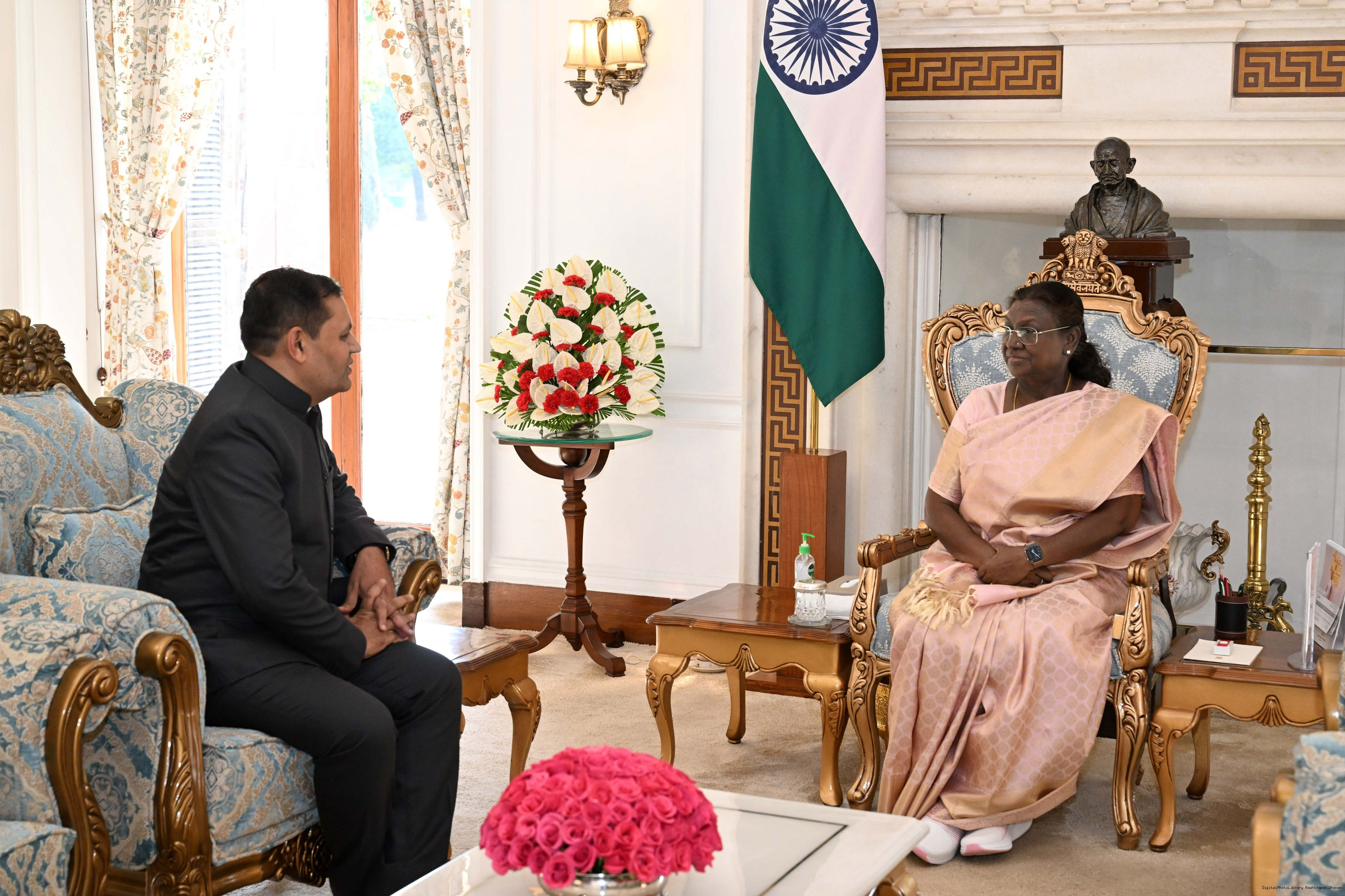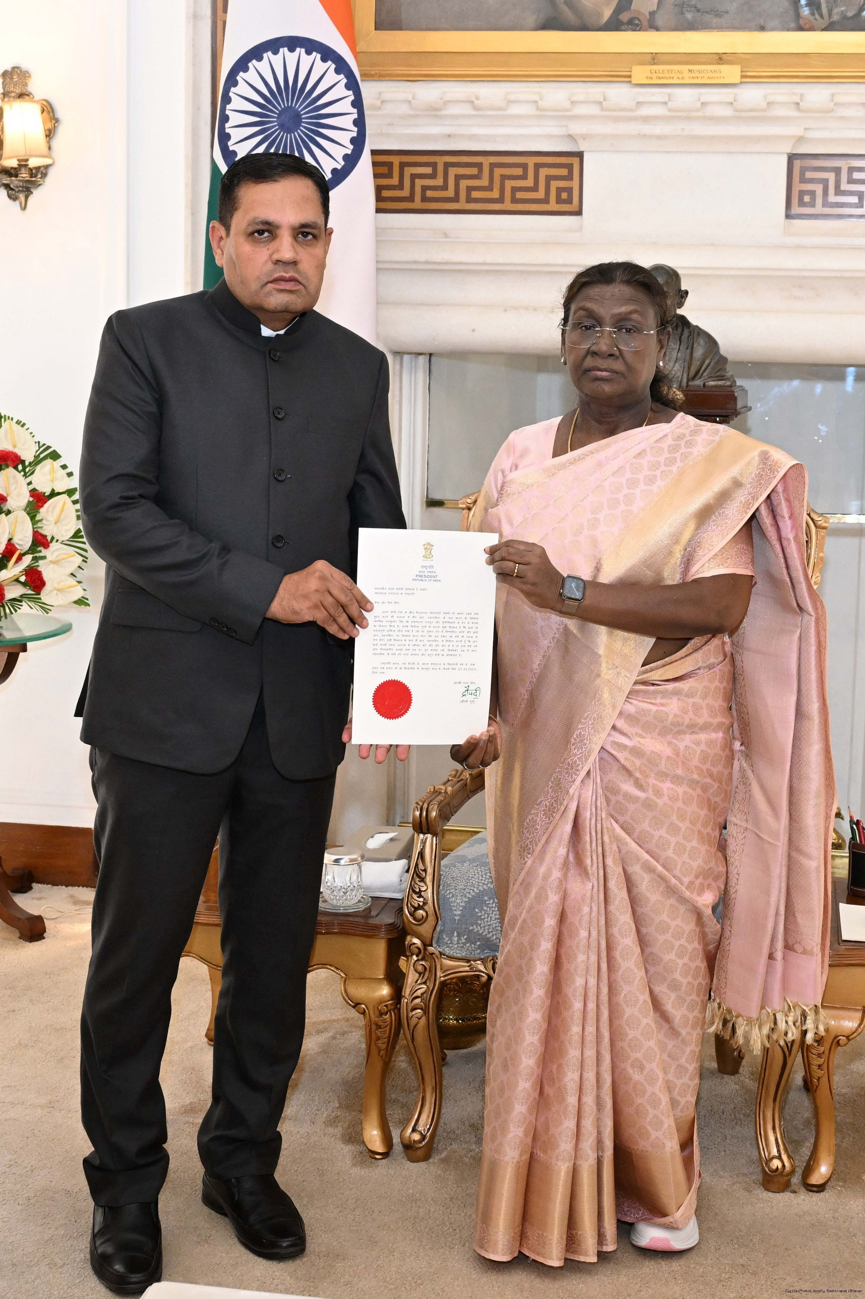 | Caption: | The Ambassador-designate of India to the Republic of Guatemala, Shri Raj Kumar Singh meeting with the President of India, Smt. Droupadi Murmu at Rashtrapati Bhavan on May 7, 2025. |
