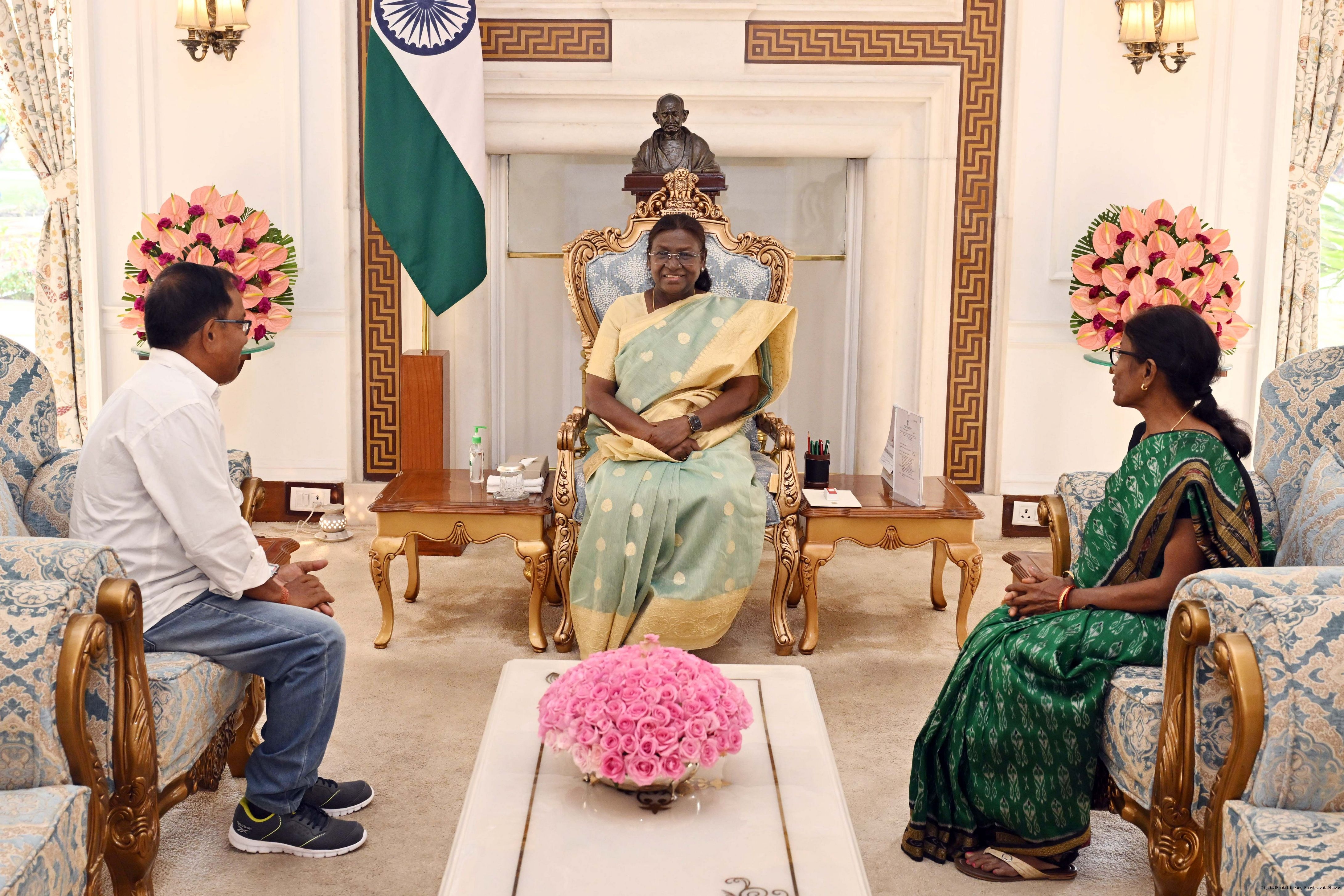 | Caption: | Shri Rabinarayan Ray, Ex Assistant Secretary, Odisha Sahitya Akademi, Bhubaneswar along with other meeting with the President of India, Smt. Droupadi Murmu at Rashtrapati Bhavan on May 16, 2025. |