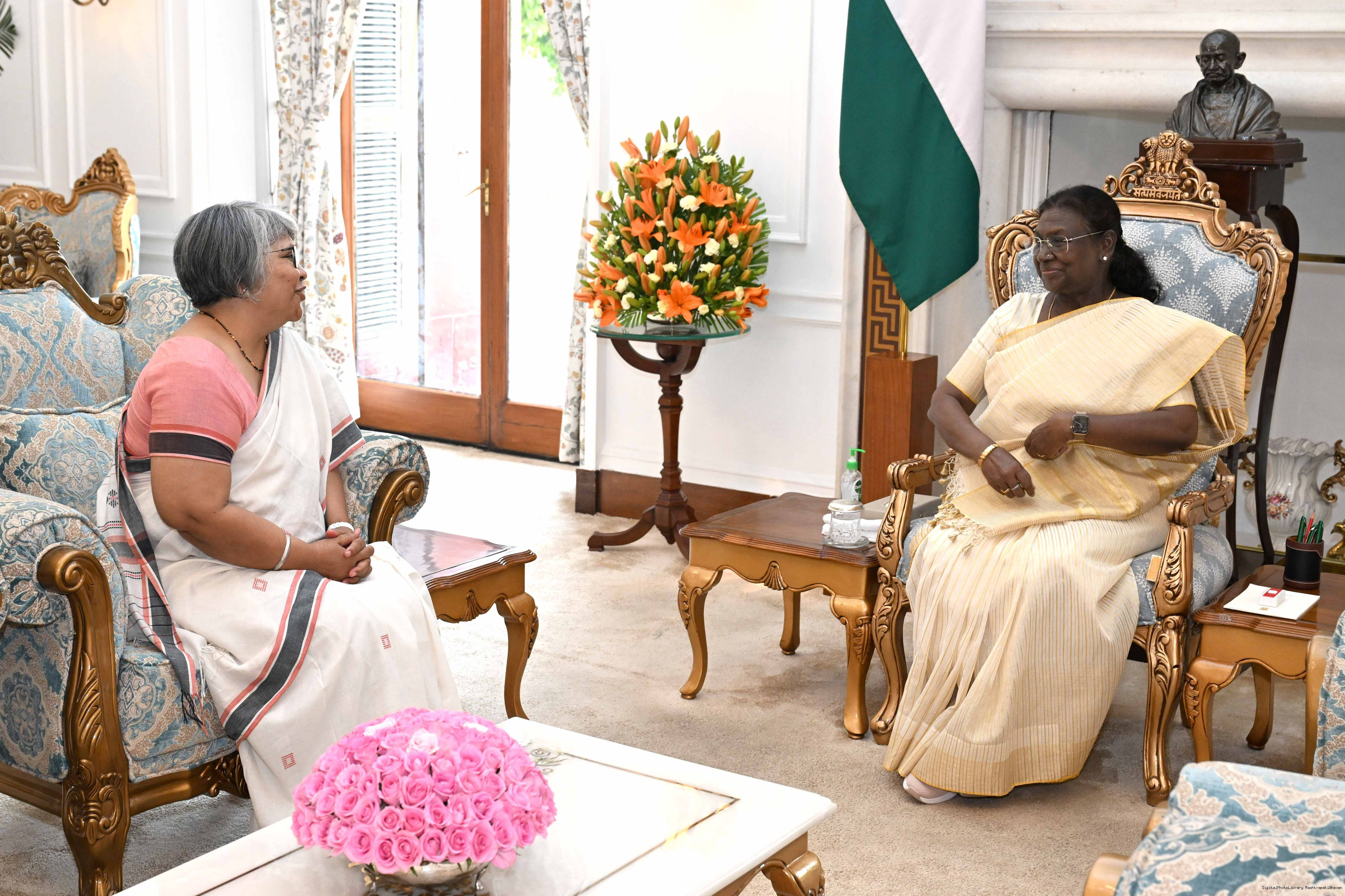 | Caption: | Smt. Sujata Chaturvedi, Member, Union Public Service Commission (UPSC) meeting with the President of India, Smt. Droupadi Murmu at Rashtrapati Bhavan on May 21, 2025. |