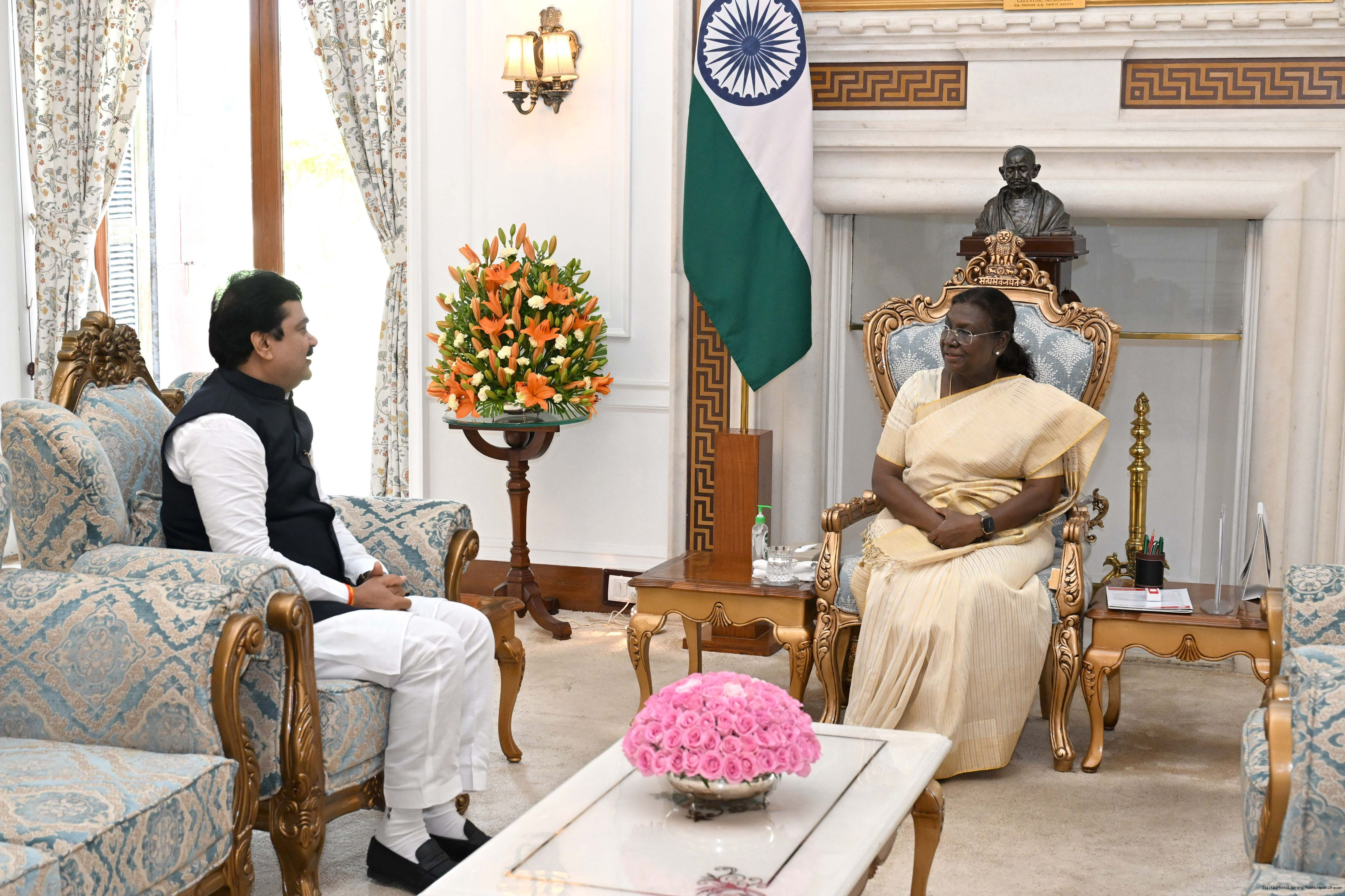 | Caption: | Prof Ram Shinde, Chariman, Maharashtra Legislative Council meeting with the President of India, Smt. Droupadi Murmu at Rashtrapati Bhavan on May 21, 2025. |